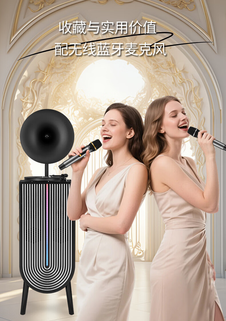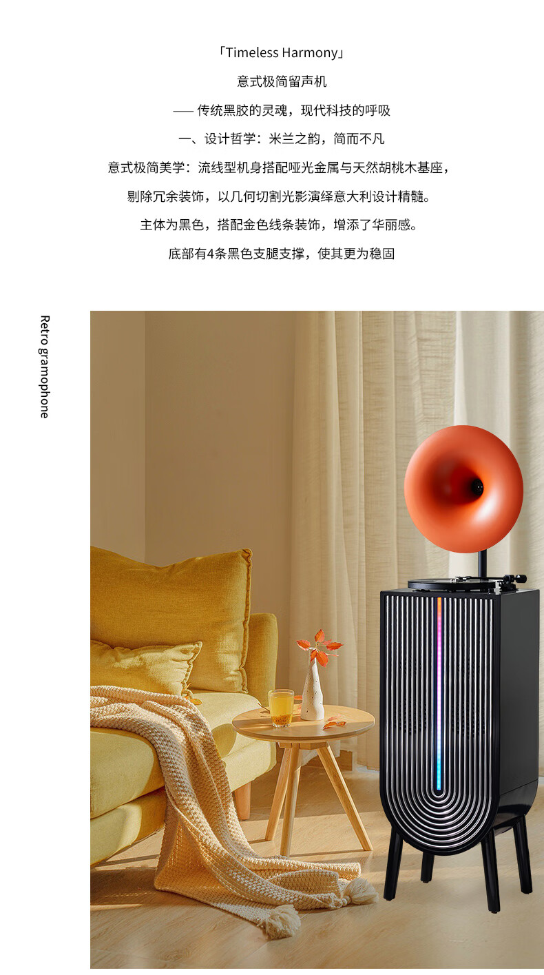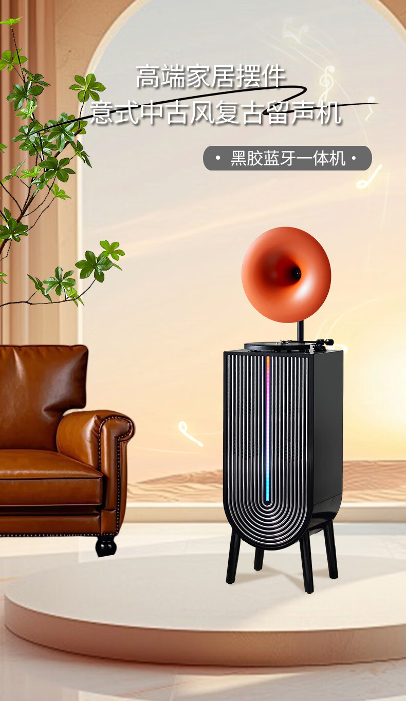 Otieno Modern Karaoke Vinyl Record Player Nordic Light Luxury Living Room Phonograph LP Record Player Bluetooth Audio Player Amplifier CD Player Professional Grade Gramophone CD Vending Machine Orange Speaker + U Disk + Vinyl Record Player + Microphone*2