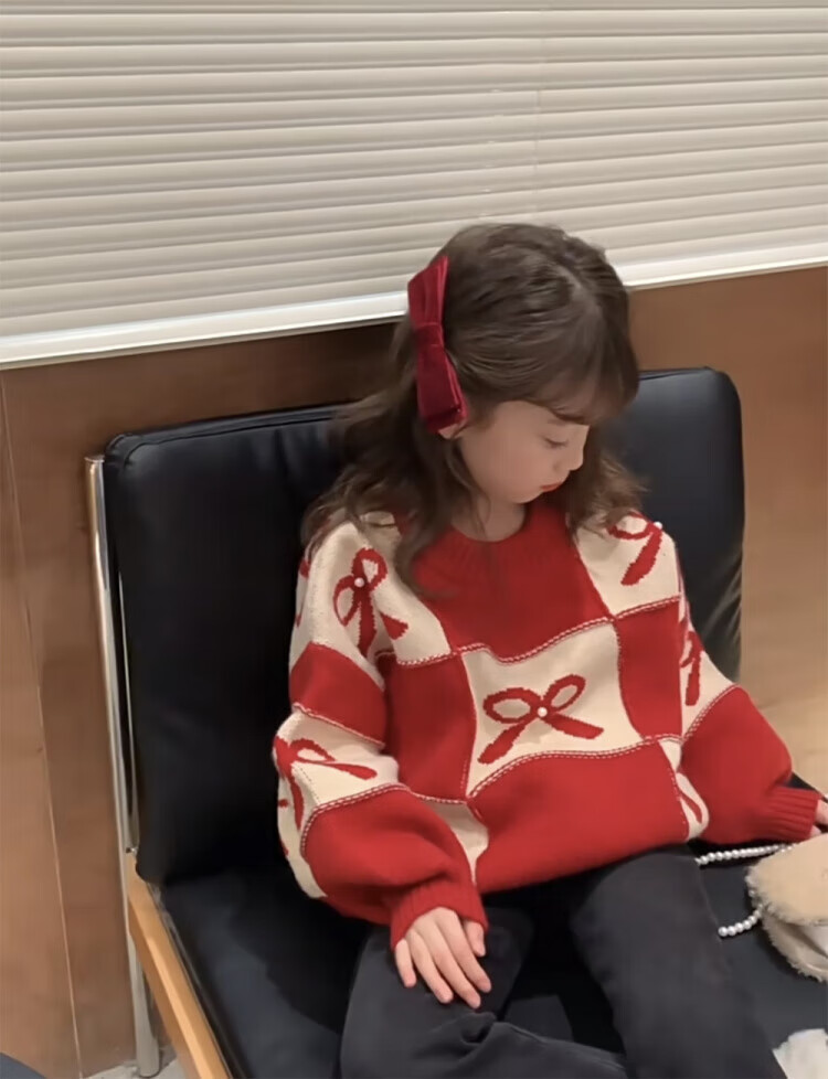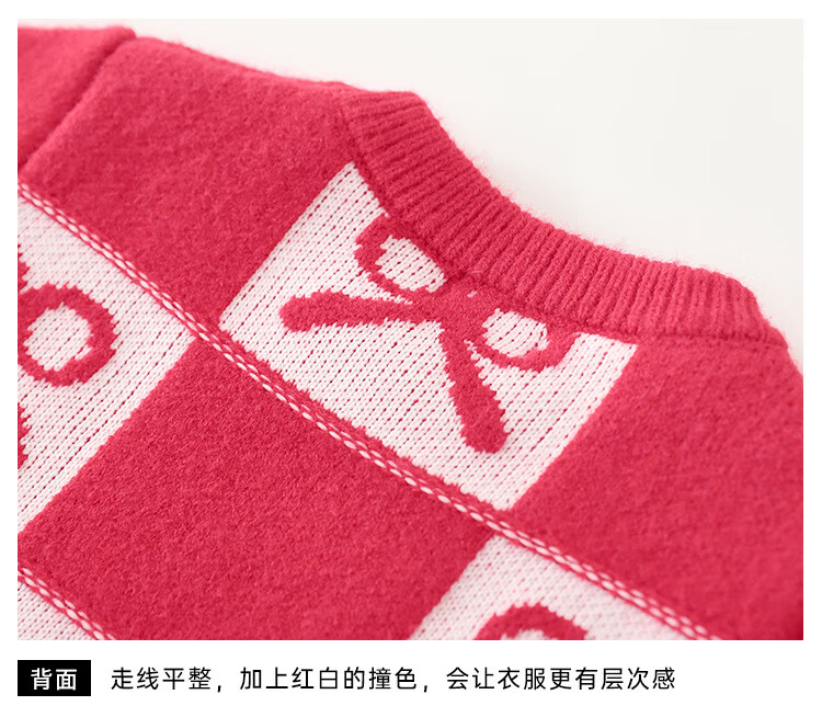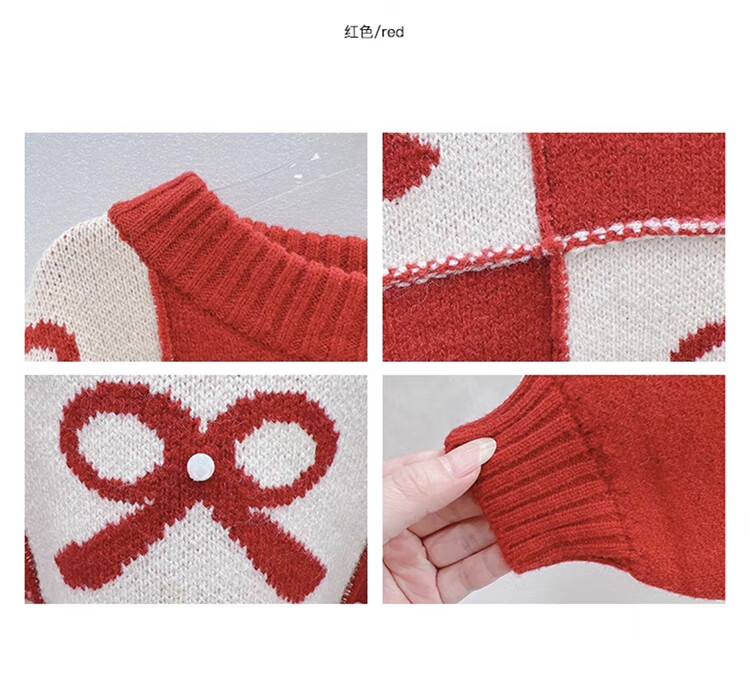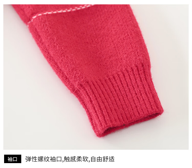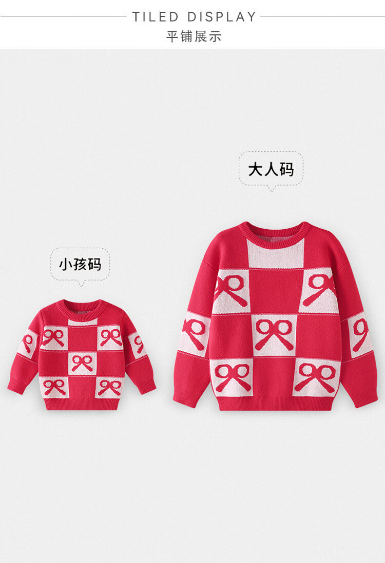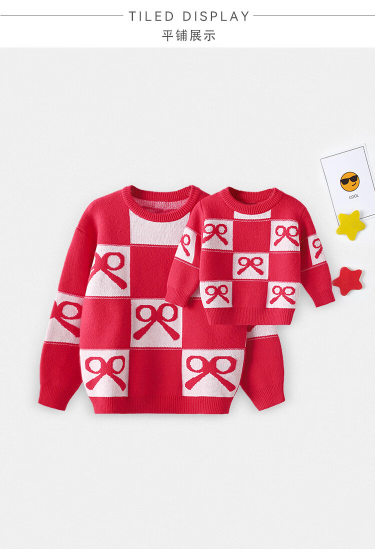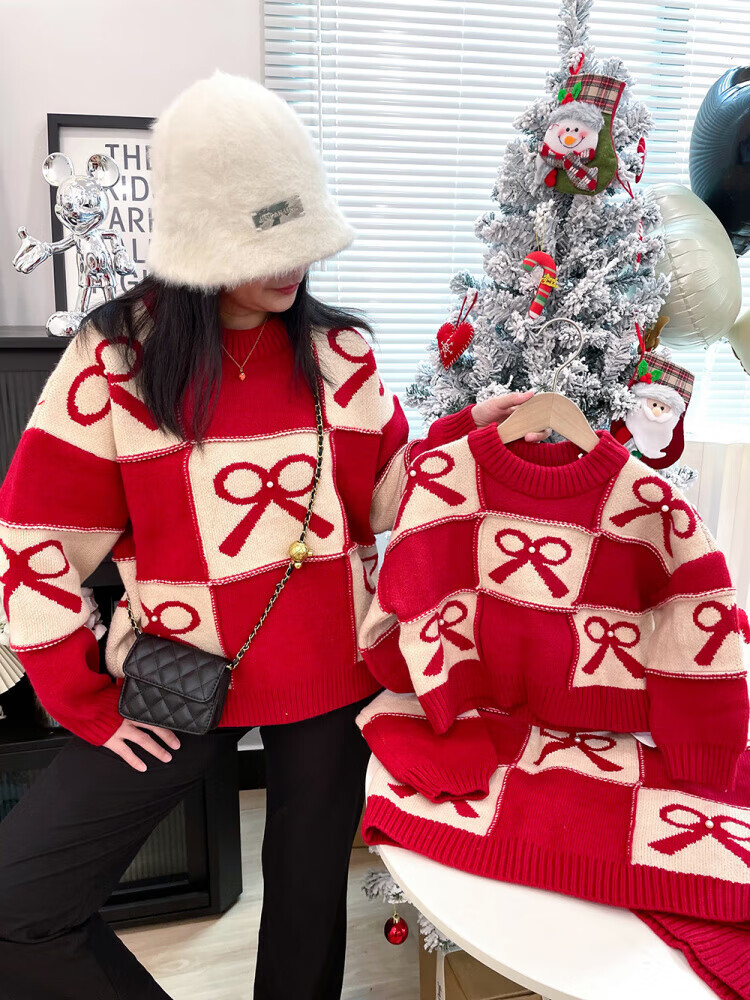 G.duck Chinese New Year parent-child outfits for a family of three, red Year of the Horse sweaters, autumn and winter Christmas mother-son and mother-daughter festive knitted New Year clothes, red 100