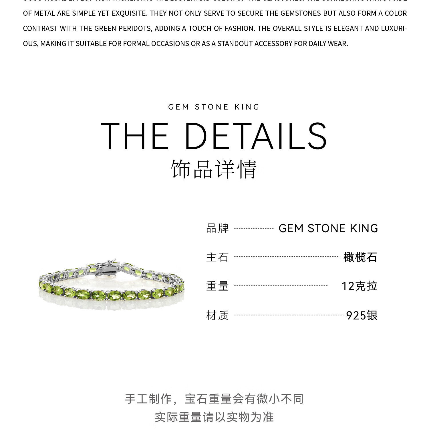 Half grain bracelet for women 925 silver 12 carat green peridot bracelet colorful treasure 925 silver as a birthday gift for girlfriend 520 gift