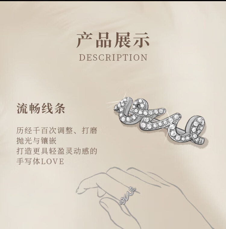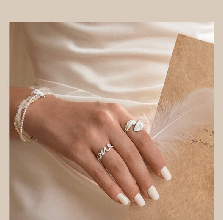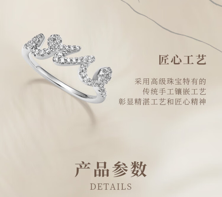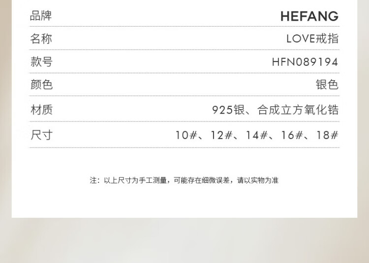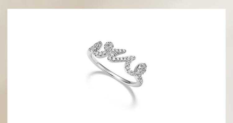 HEFANG He Fang Jewelry LOVE Ring Bracelet Silver Women's Light Luxury High-end Birthday Gift for Girlfriend Silver 10#