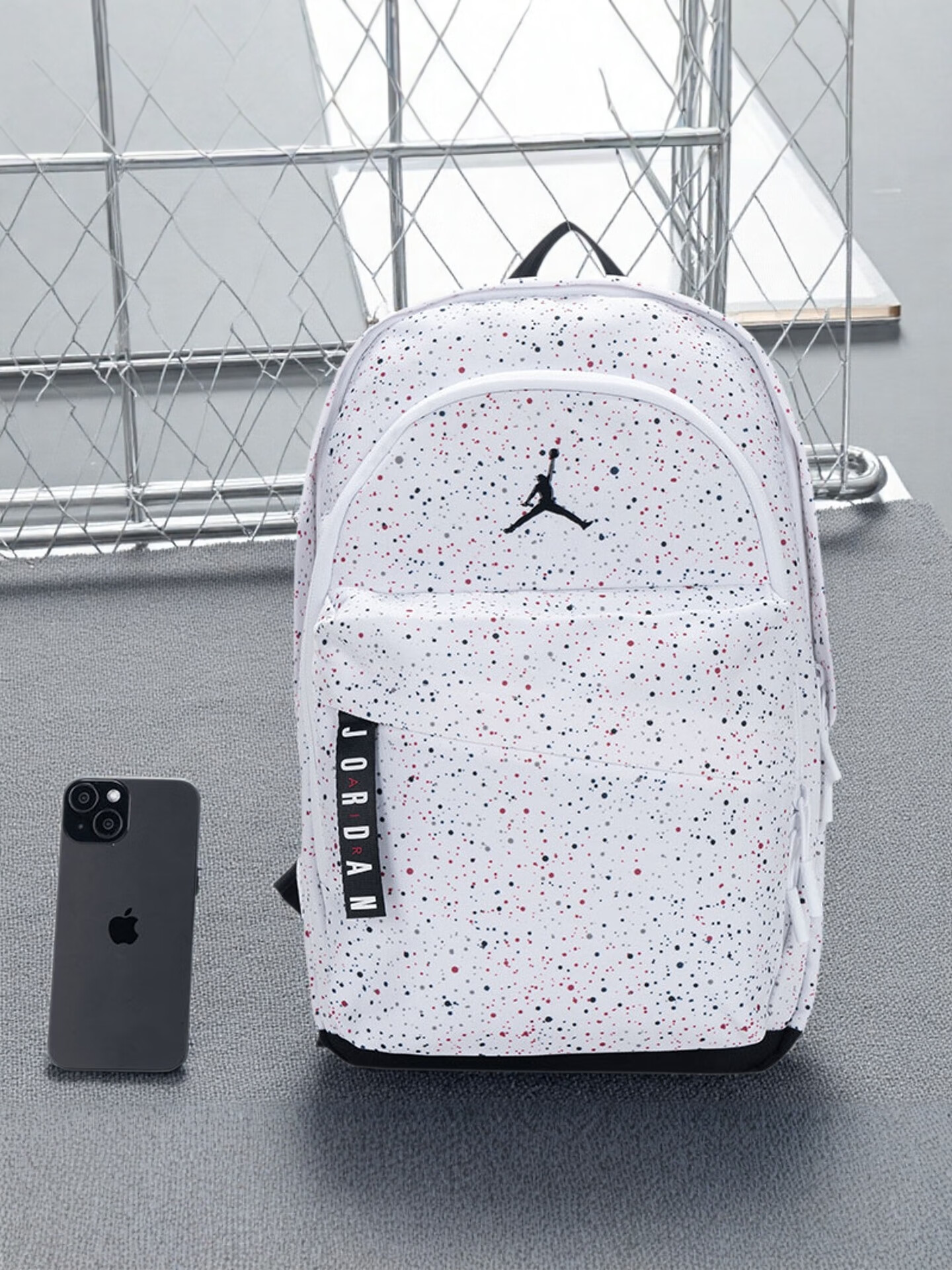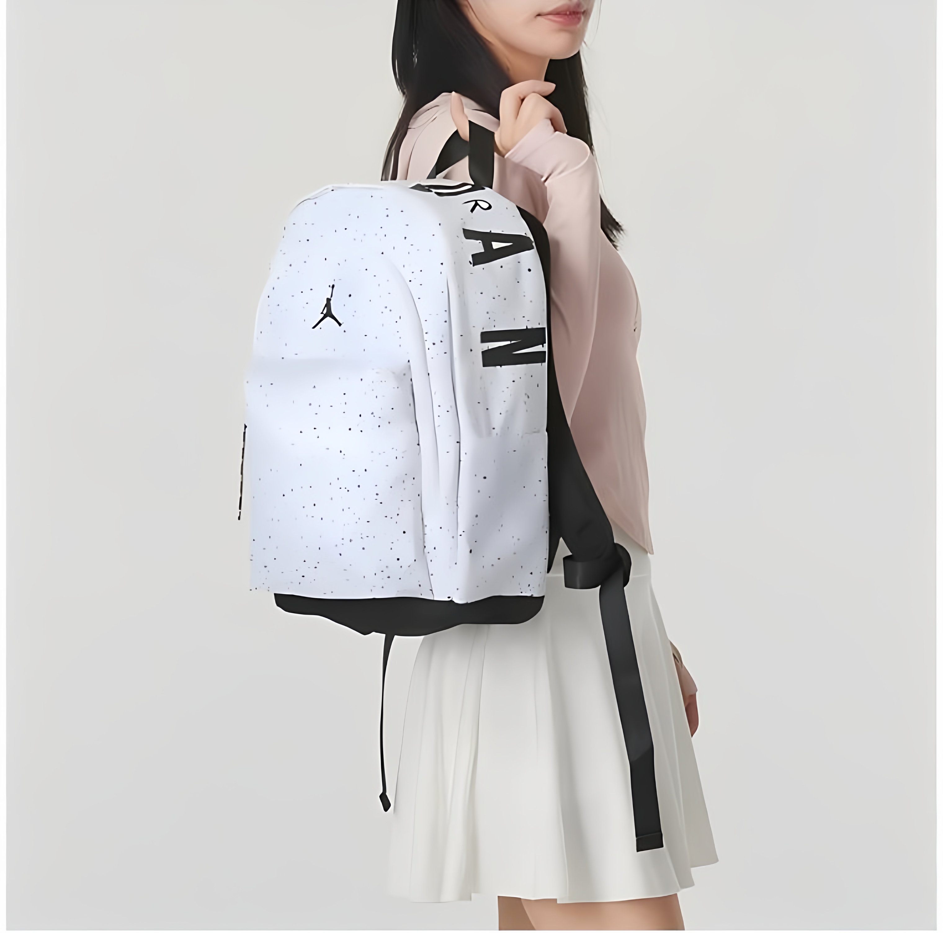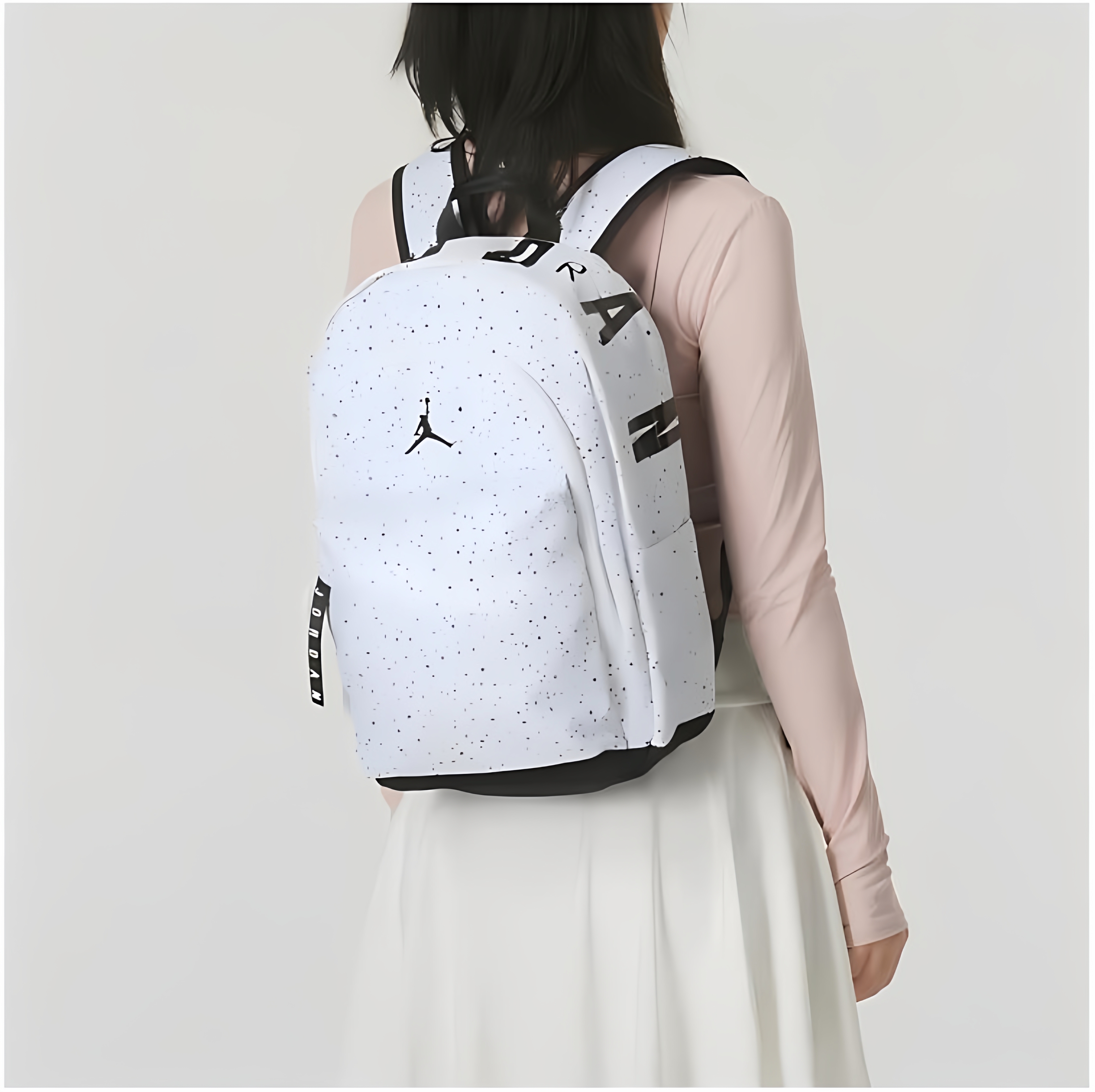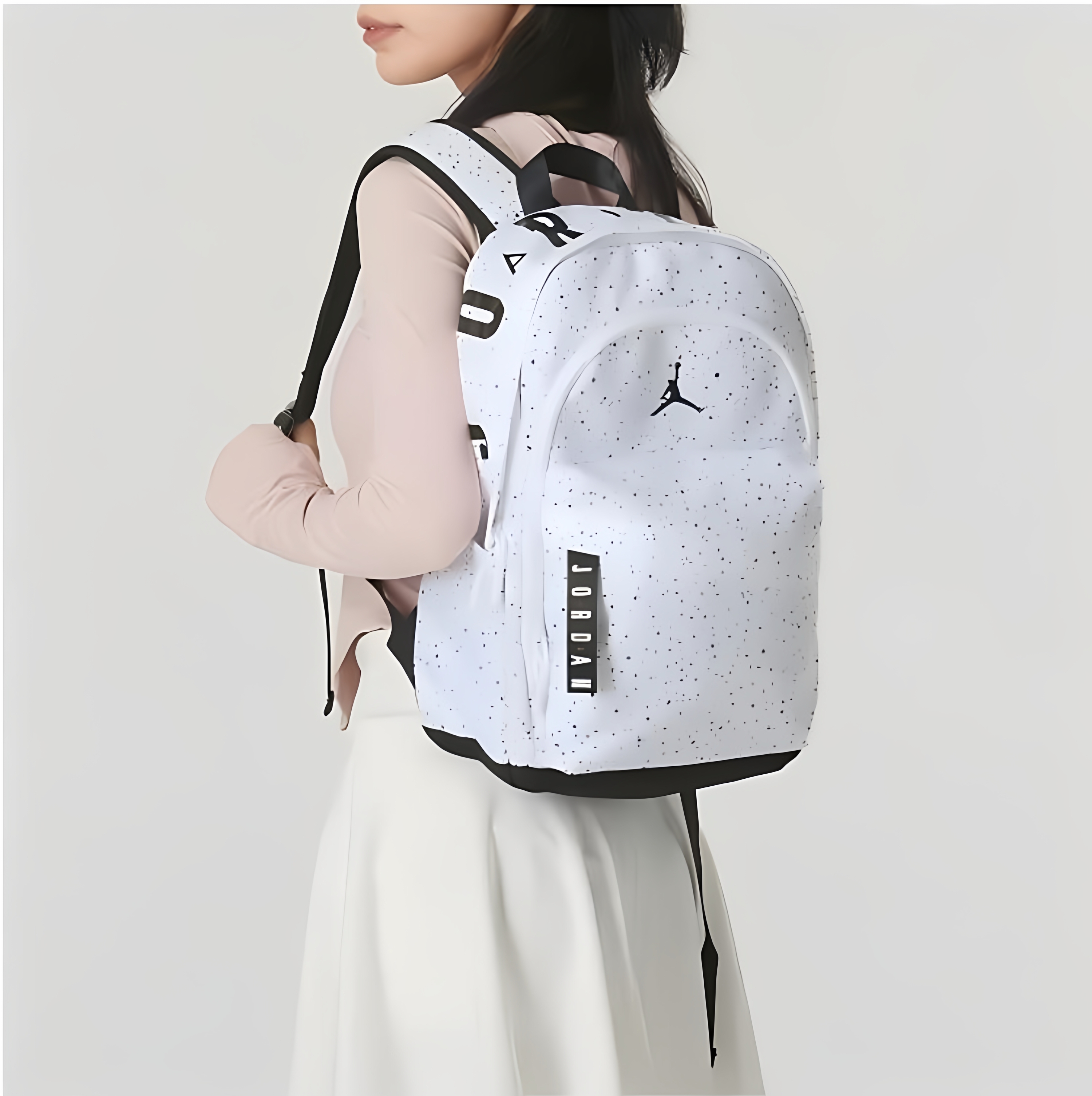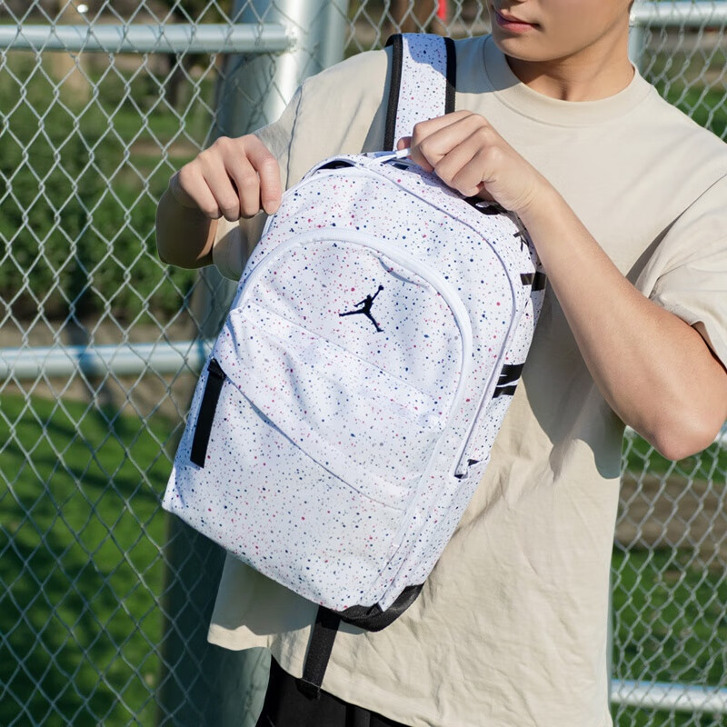 NBA CARES Air Jordan student schoolbags, junior high school and high school backpacks for men and women, sports and leisure large-capacity computer travel bags, white starry sky, length 29cm, width 14cm, height 45cm 5 years old - 99 years old