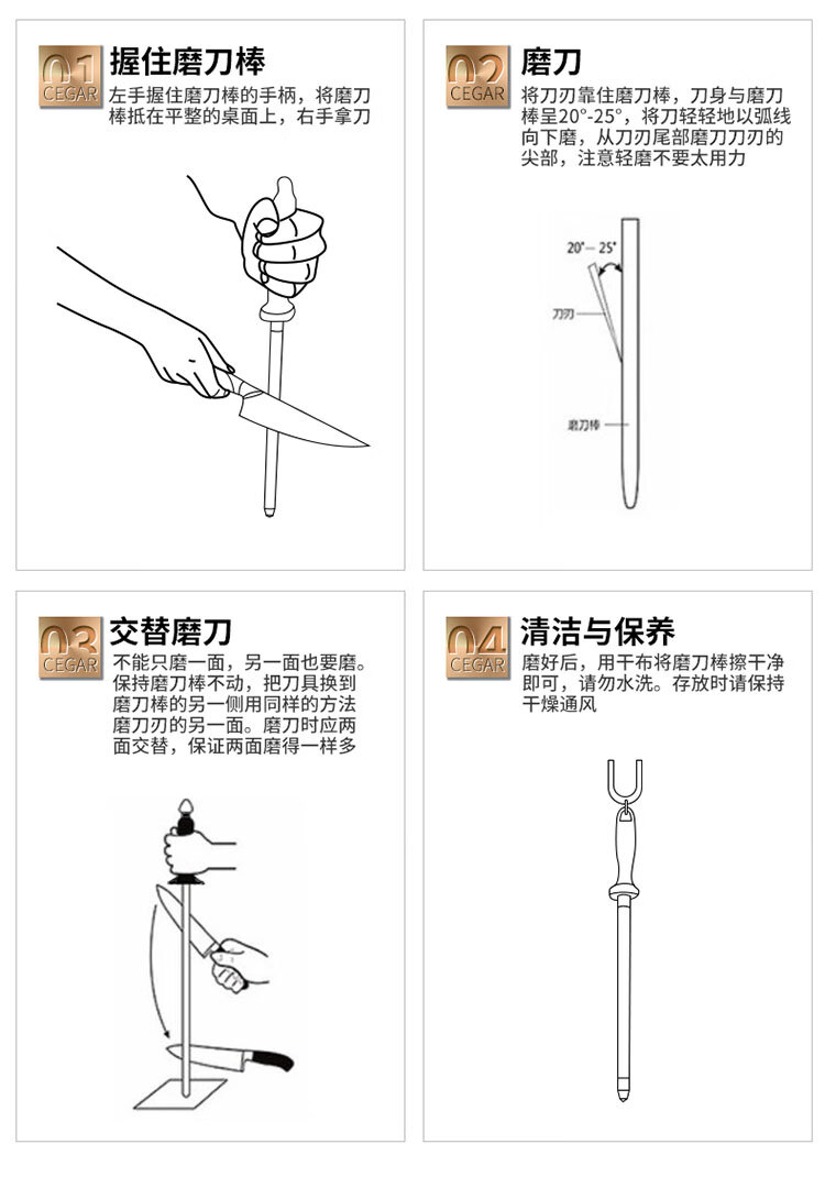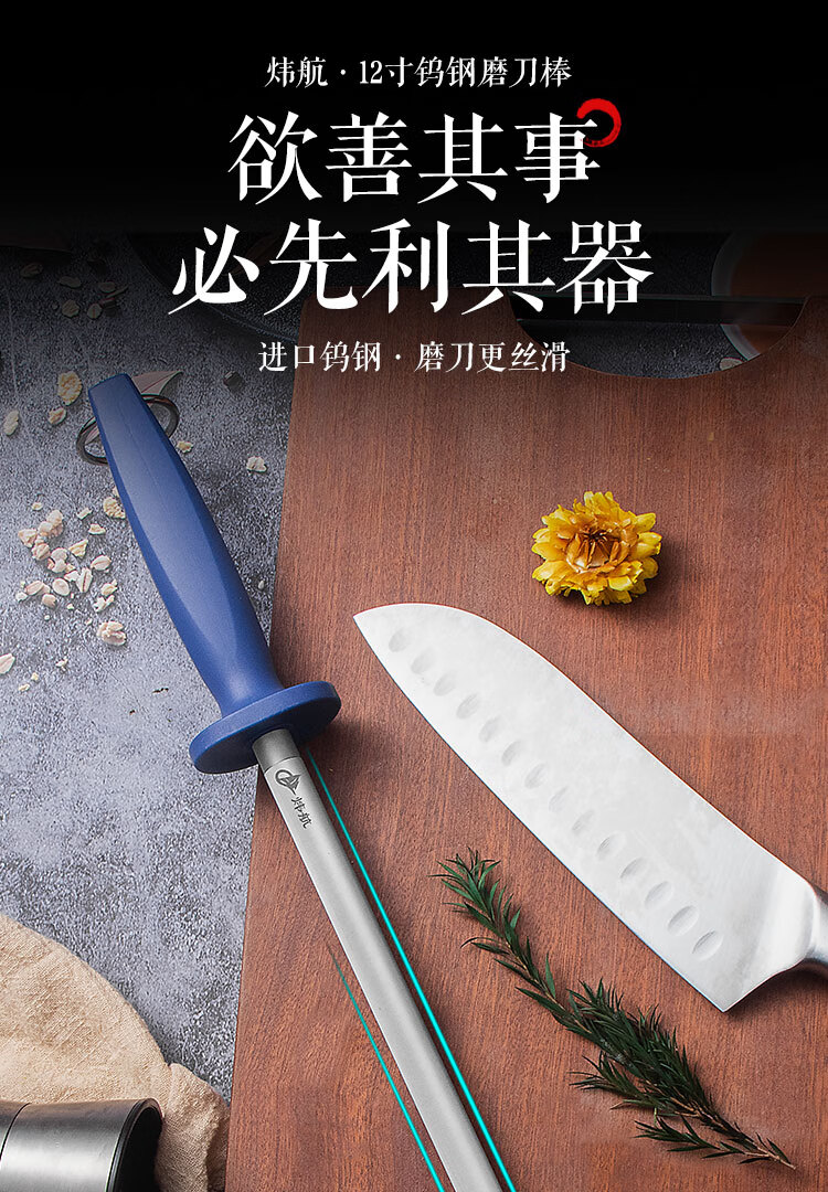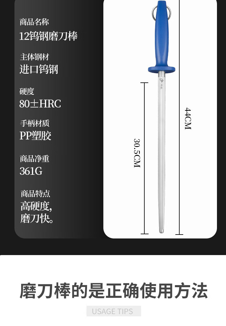 TUPI imported high-end sharpening stick butcher's special high-precision sharpening stone commercial kitchen knife repair sharpening stick sharpener 12-inch cylindrical sharpening stick