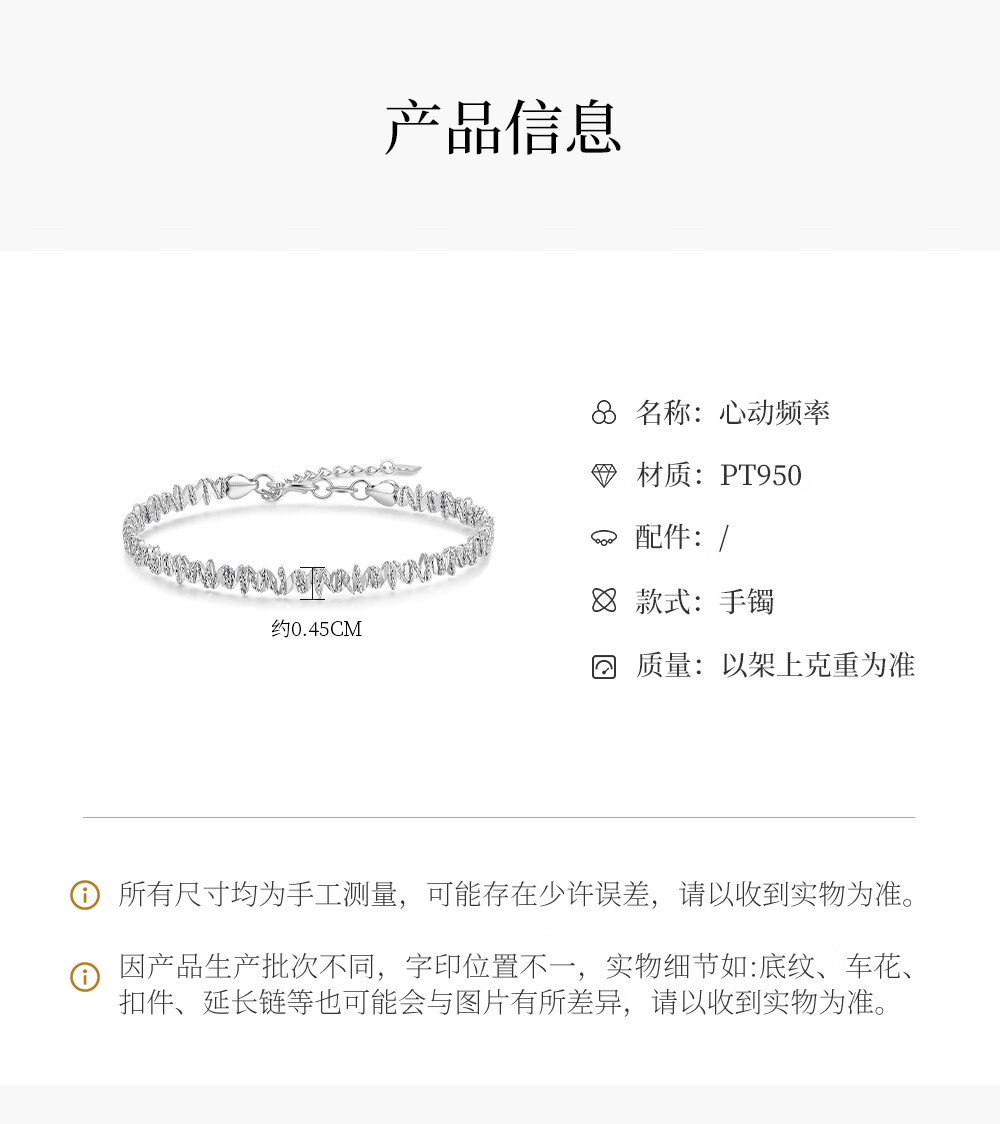 Ming brand jewelry platinum bracelet Pt950 platinum heart rate bracelet BFI0027 platinum bracelet about 9.07 grams