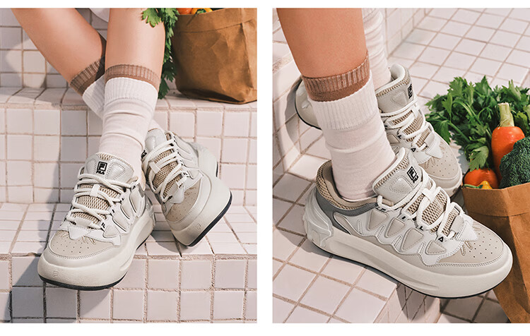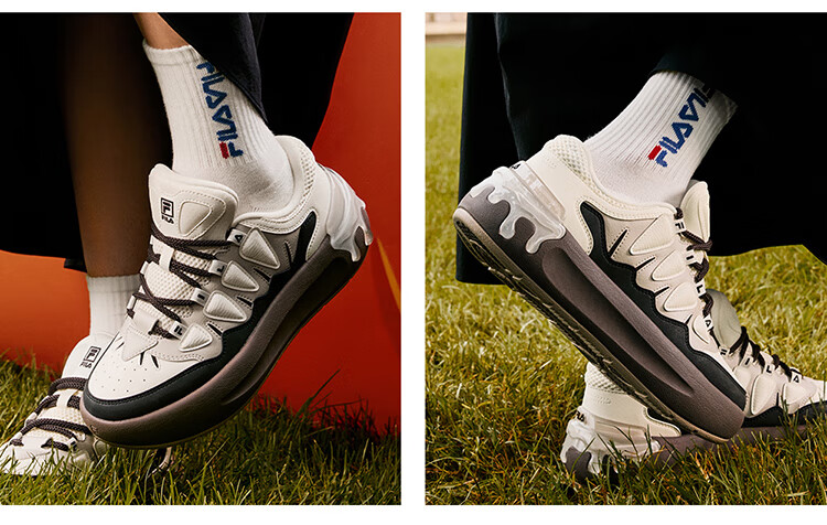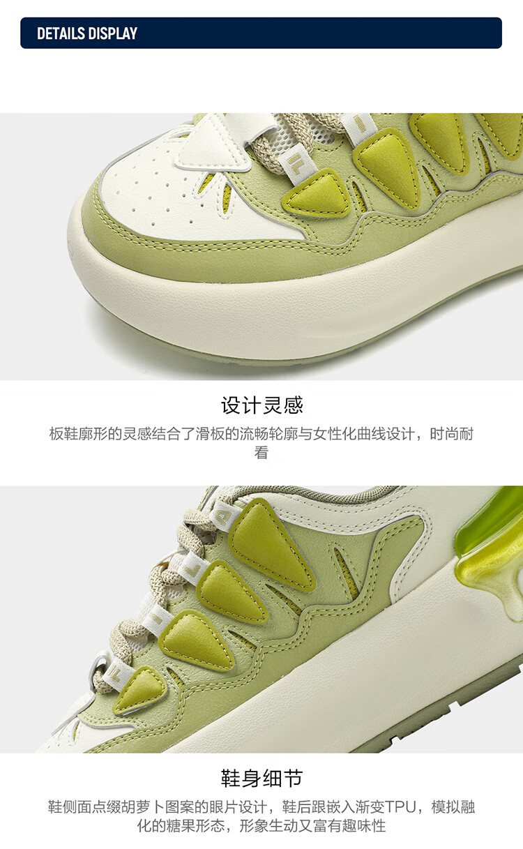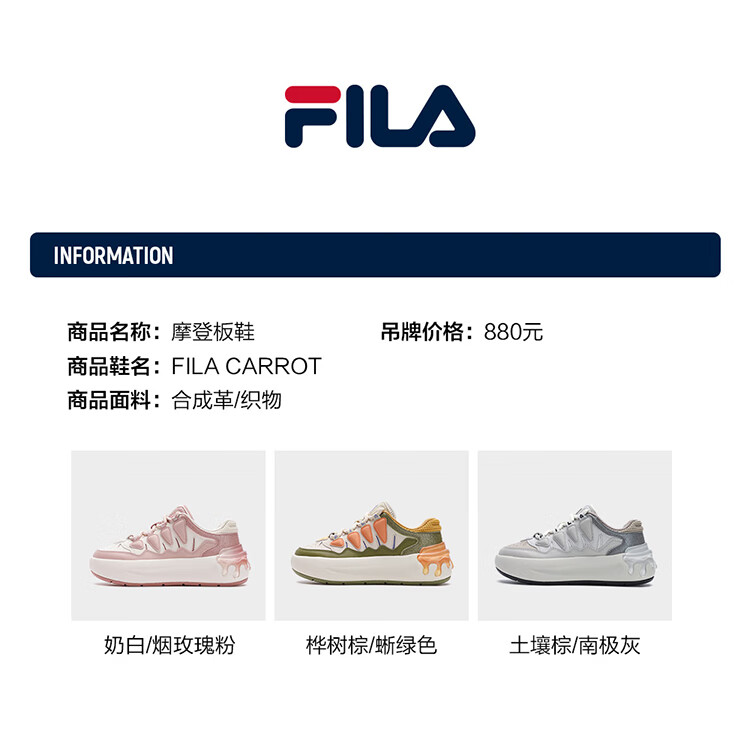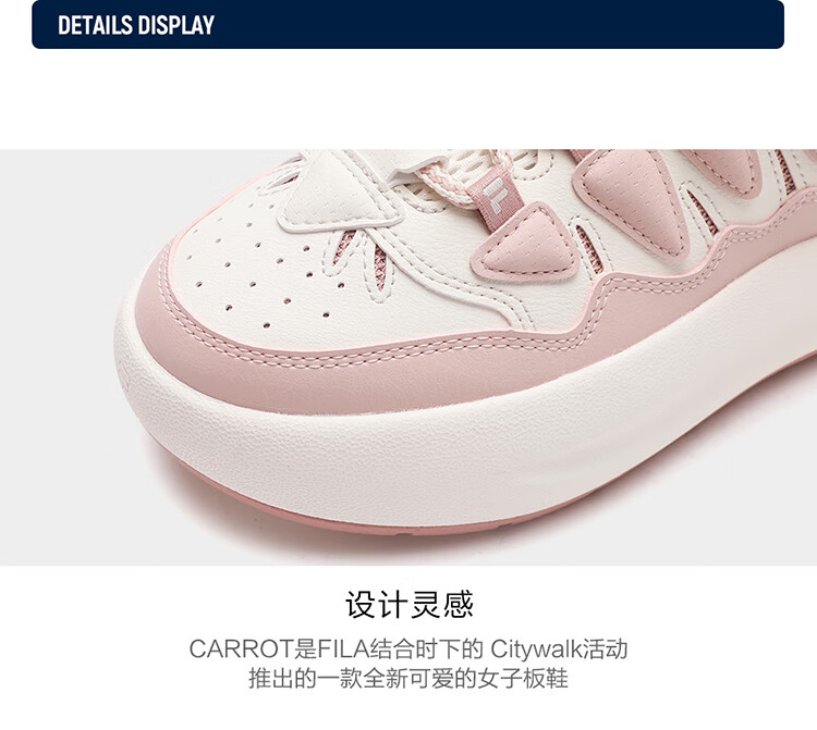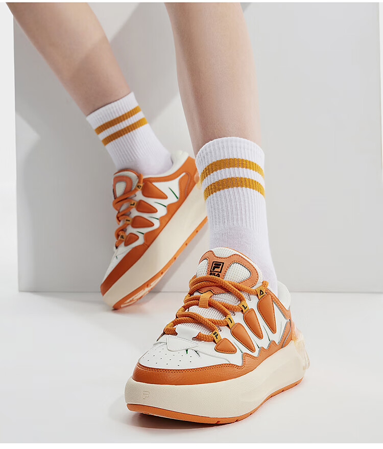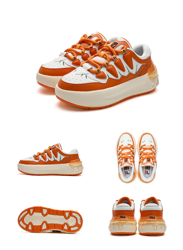 FILA official women's sneakers CARROT modern carrot shoes versatile fashion heightening white shoes sports casual shoes for women first snow white/black-PB 40