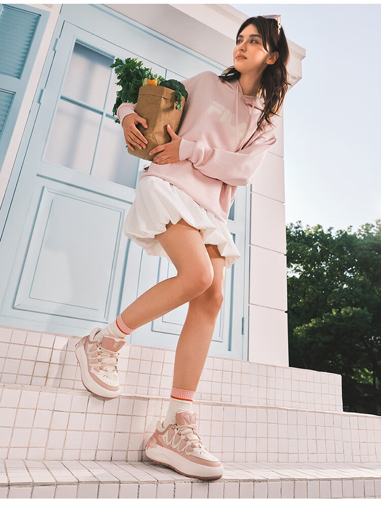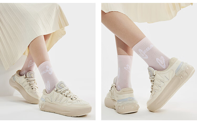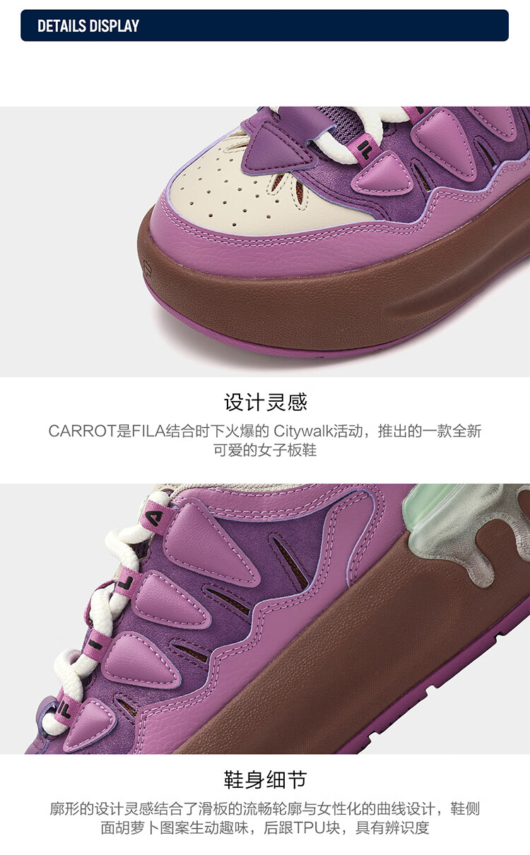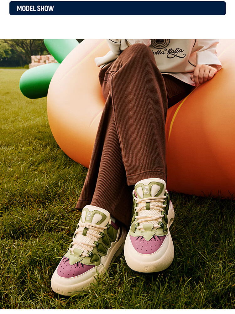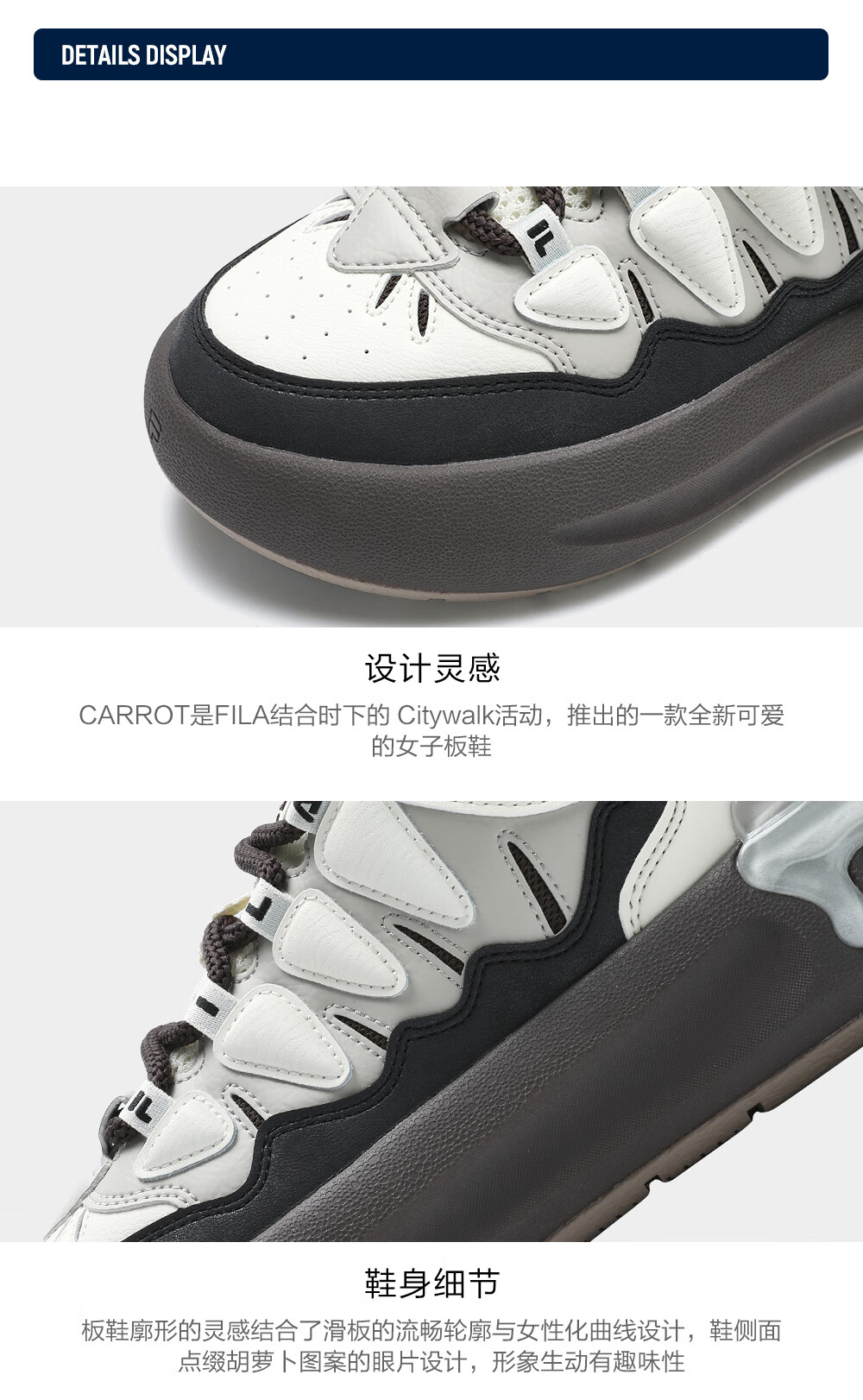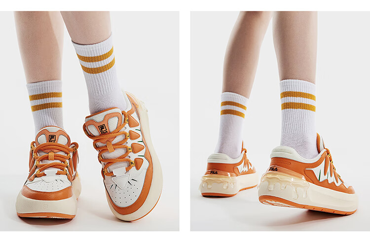 FILA official women's sneakers CARROT modern carrot shoes versatile fashion heightening white shoes sports casual shoes for women first snow white/black-PB 40