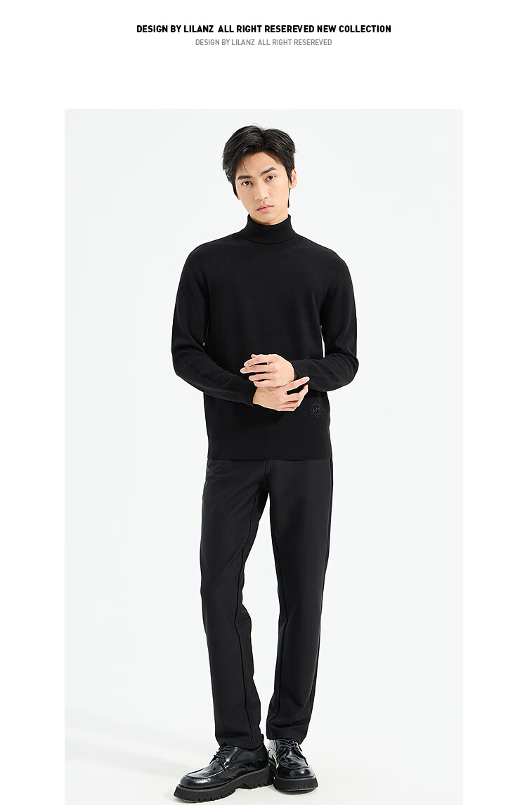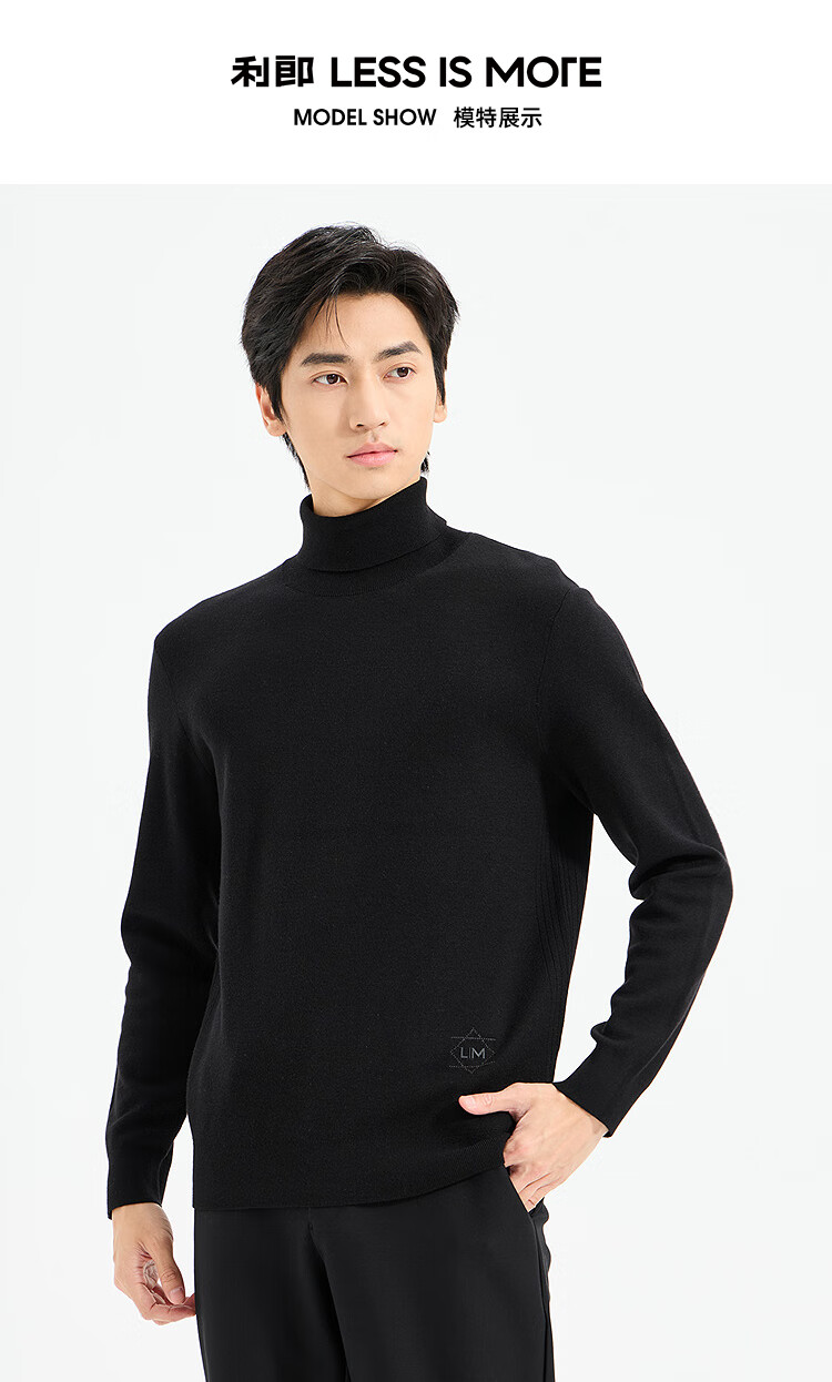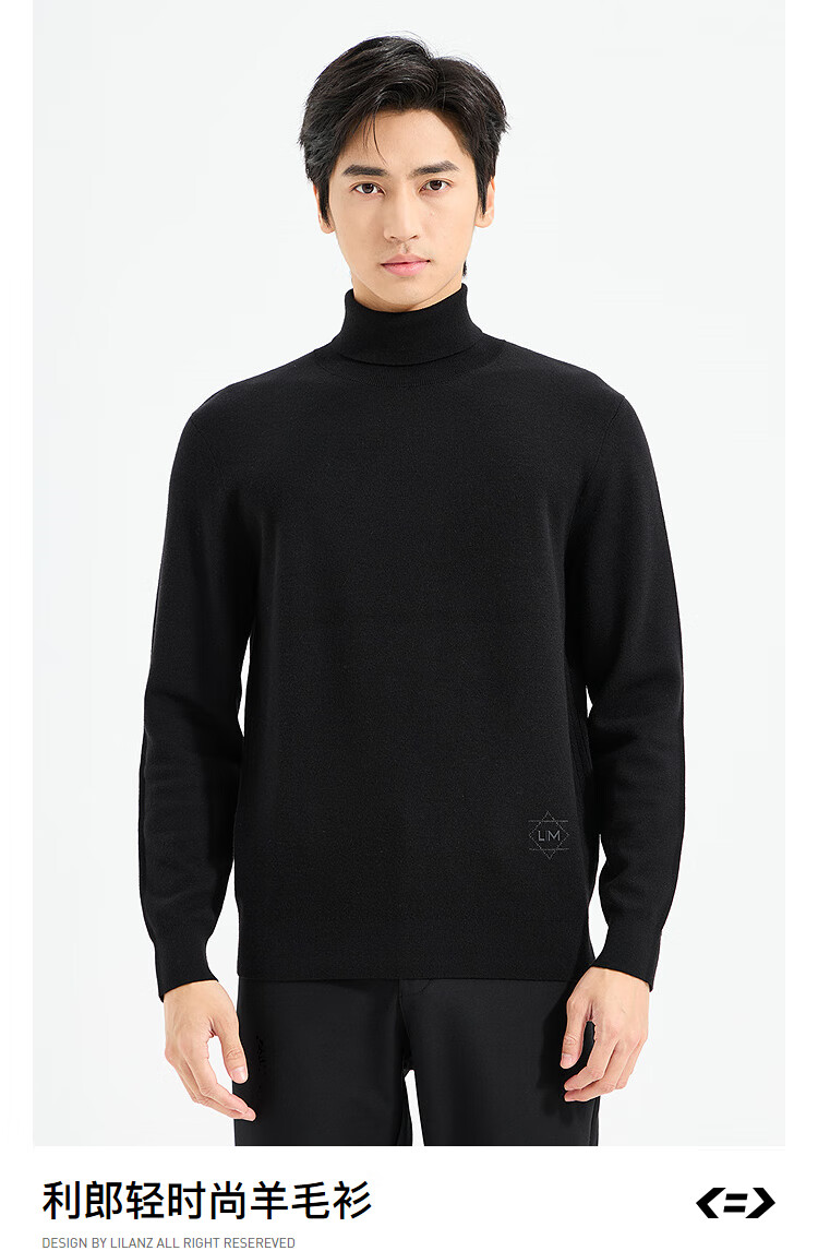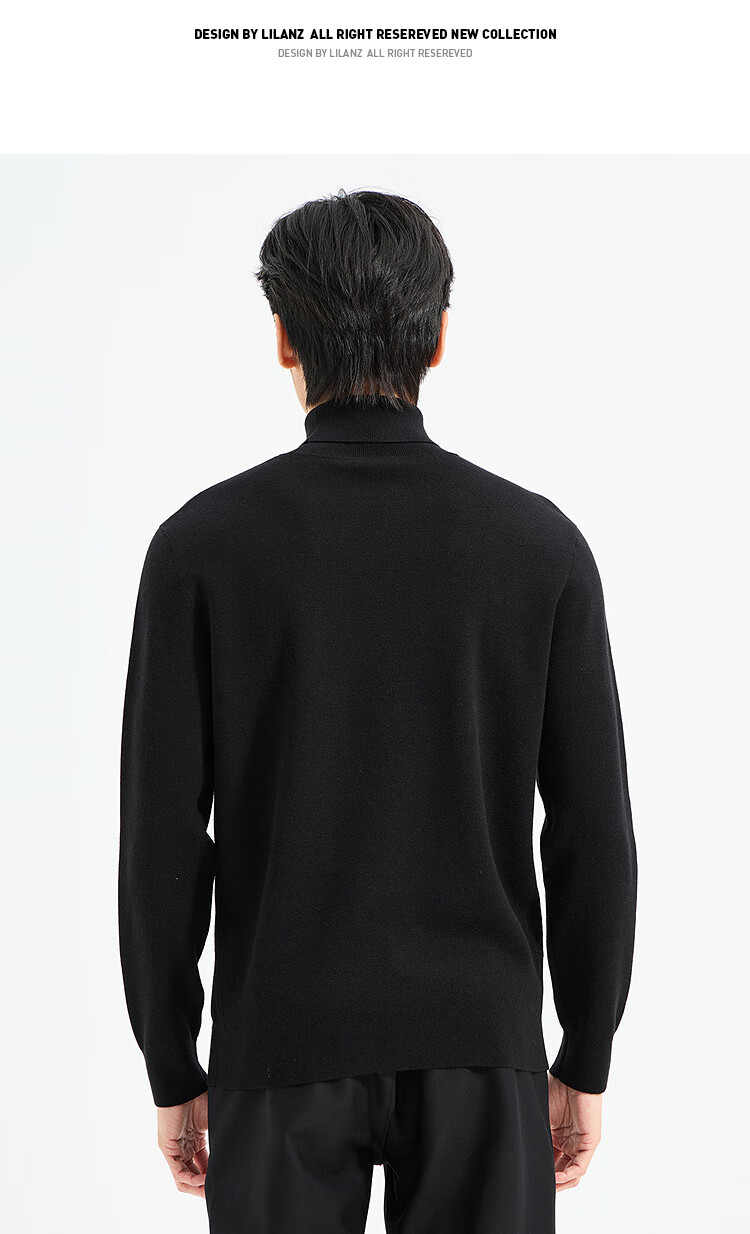 LiLang Light Fashion Men's Clothing Shopping Mall Same Style Wool Sweater Men's Machine Washable Turtleneck Cashmere Blended Warm Long-Sleeved Sweater Black (1Y) XL (175)