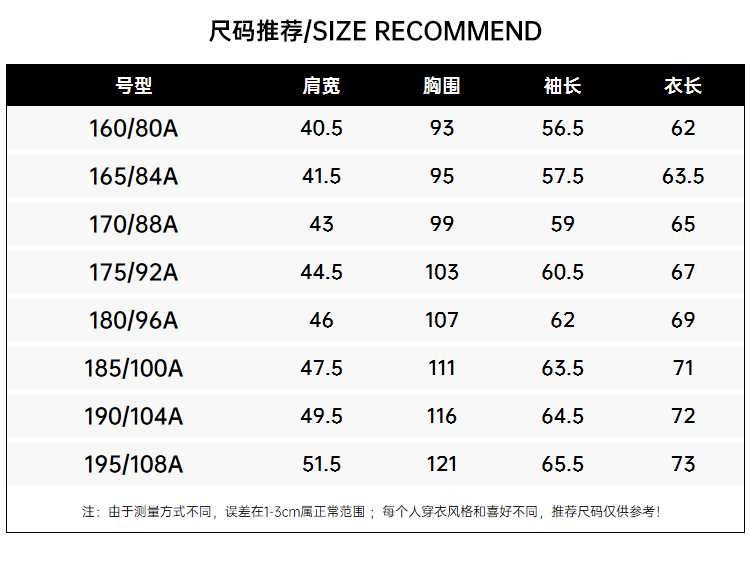 China (cm) 160-165/84-86 165-170 / 88-90 167-172 / 92-96 168-173 / 98-102 170-176 / 106-110