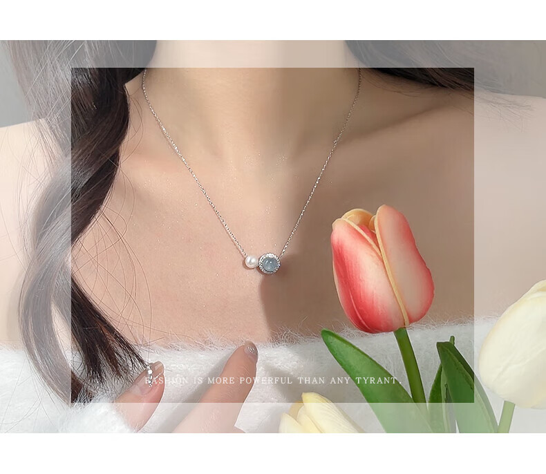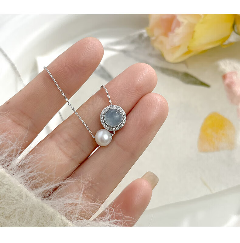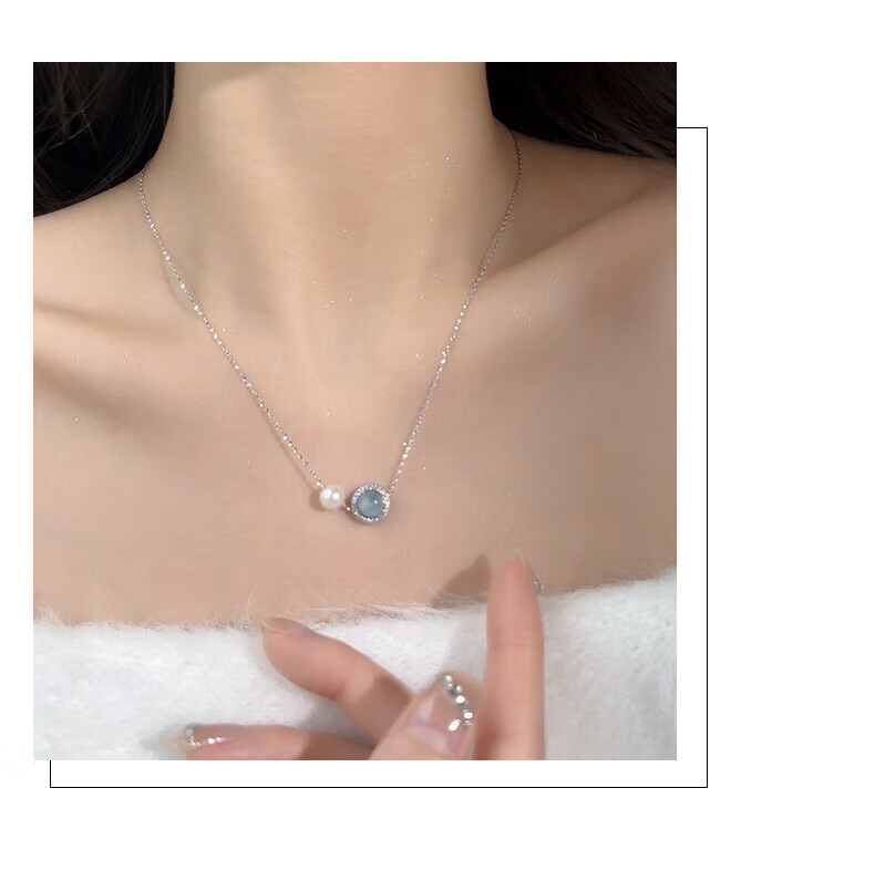 Lanlian Quality Aquamarine Necklace Freshwater Pearl Silver Jewelry Women's 2025 New Accessories Exquisite Pendant Summer Silver Necklace