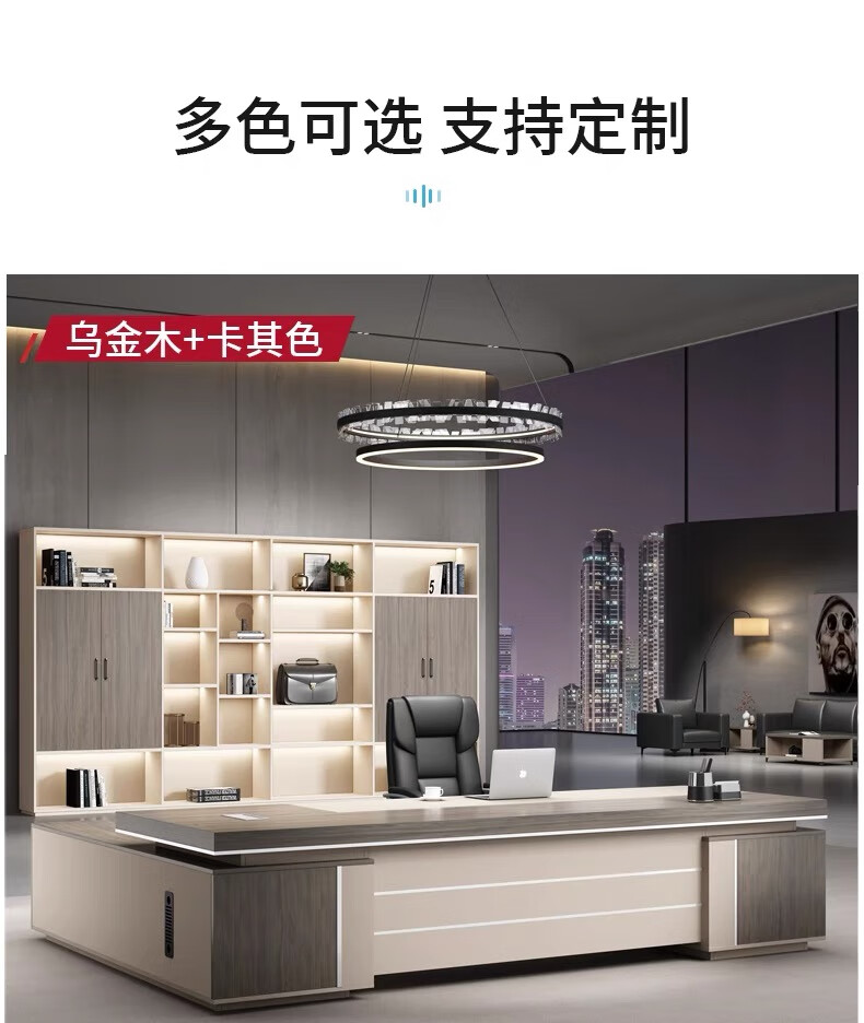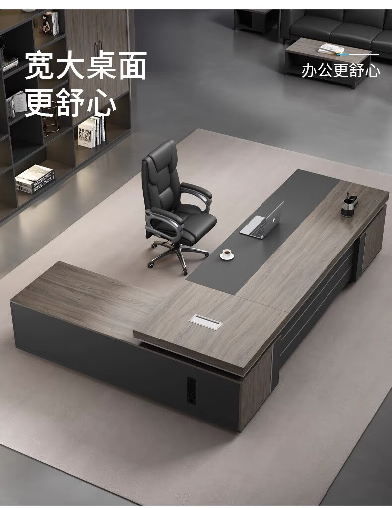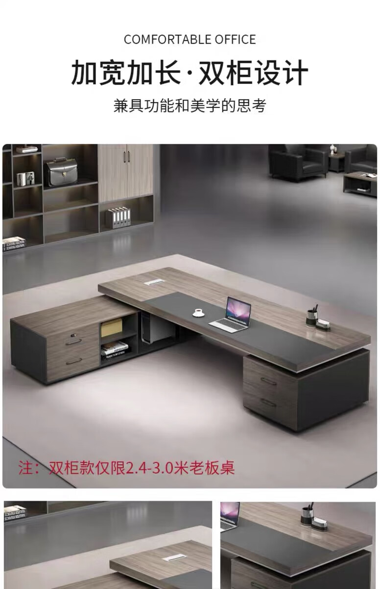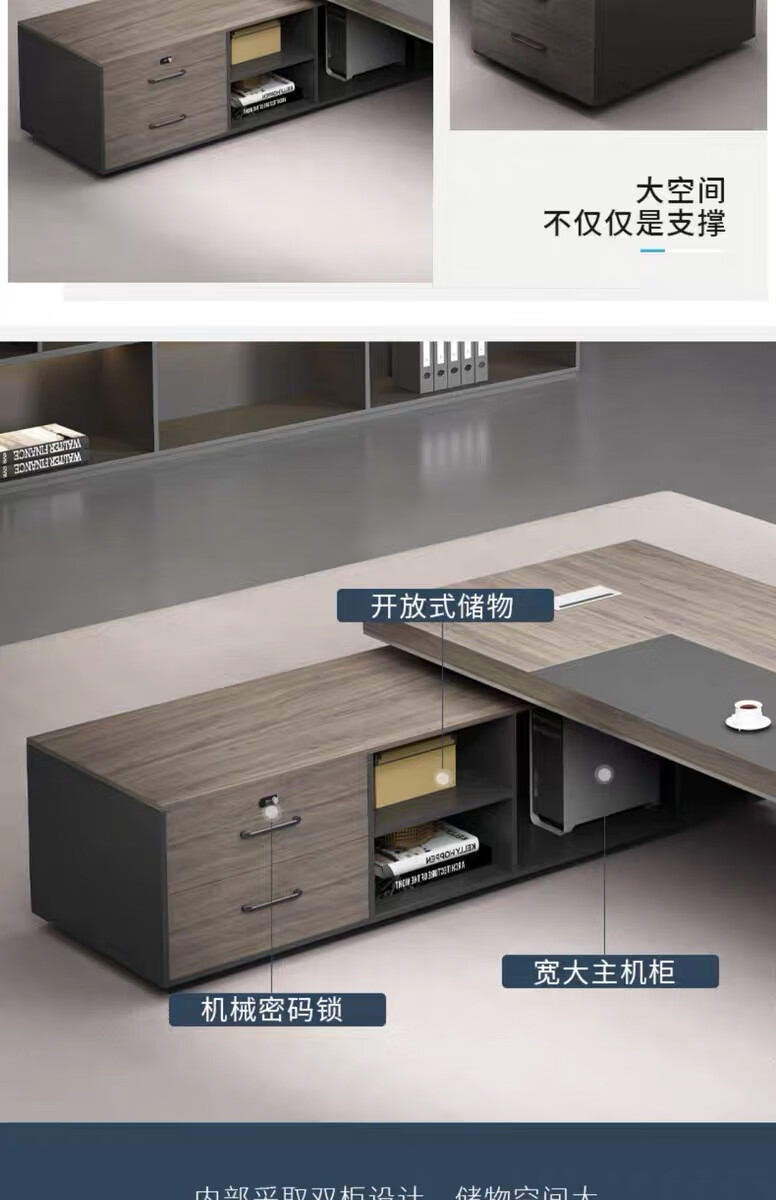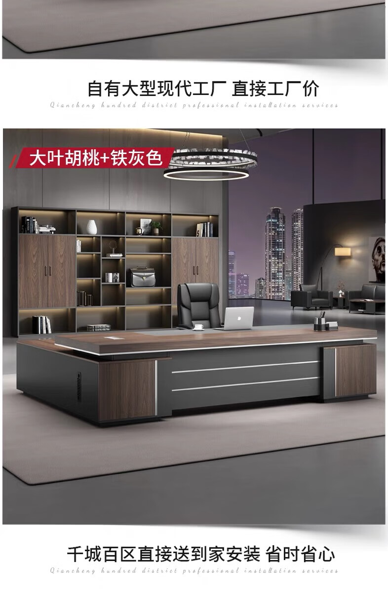 Mudini boss desk and chair combination office boss table simple modern president desk executive manager desk and chair 2.2m boss table single cabinet + boss chair + 6-door file cabinet