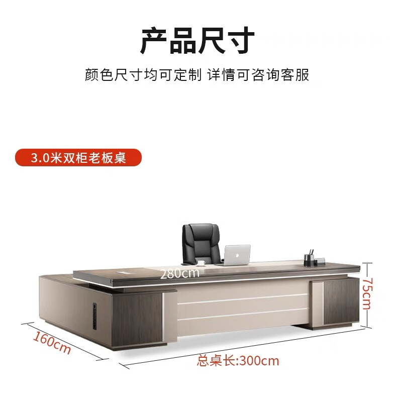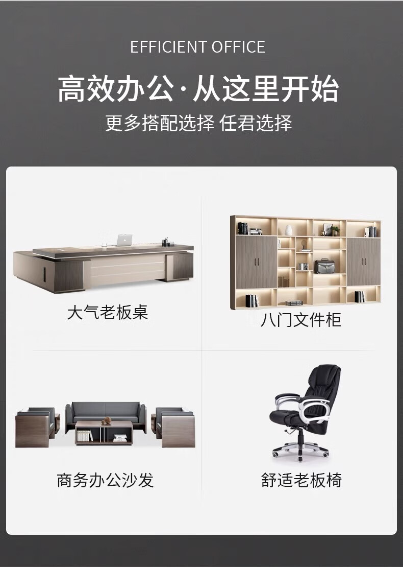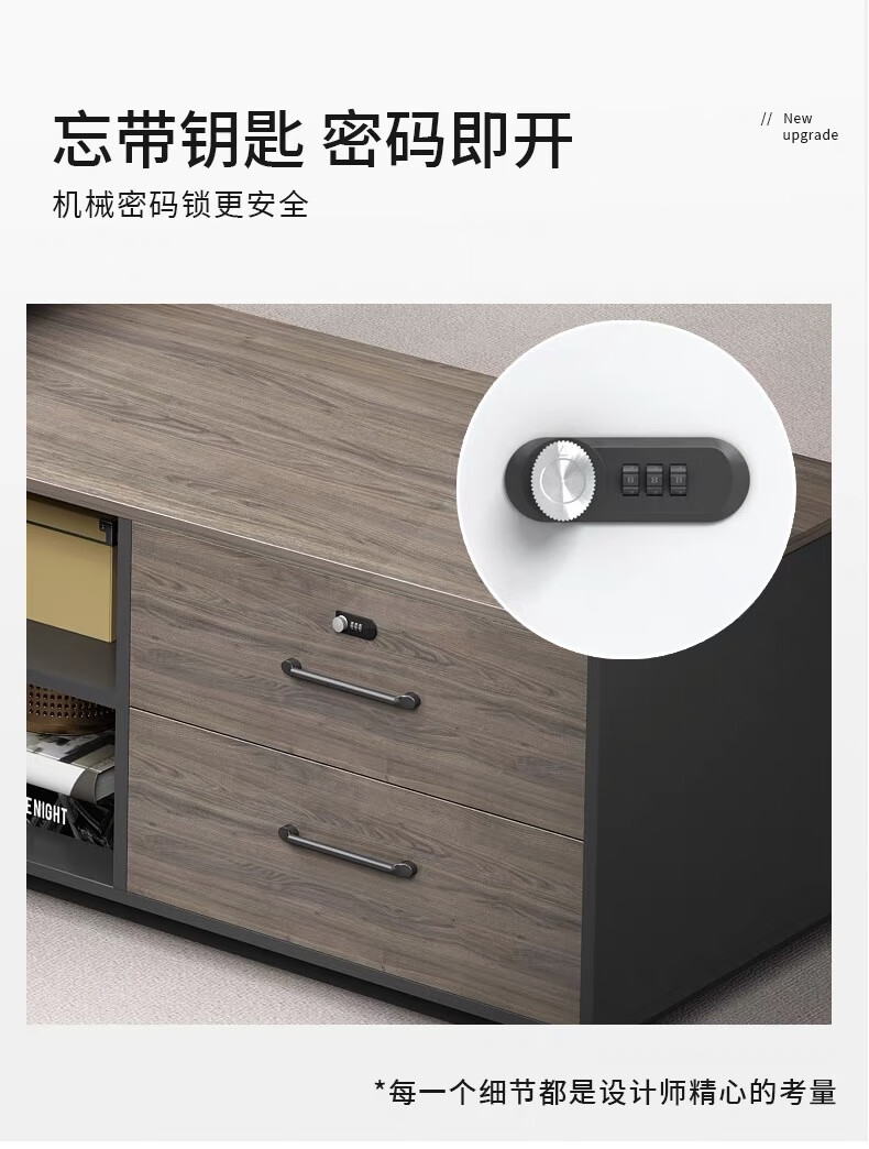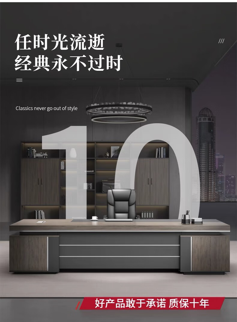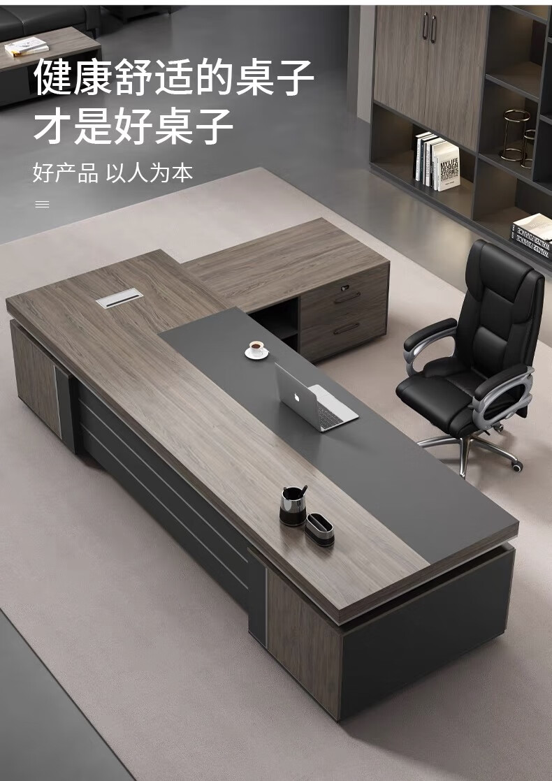 Mudini boss desk and chair combination office boss table simple modern president desk executive manager desk and chair 2.2m boss table single cabinet + boss chair + 6-door file cabinet