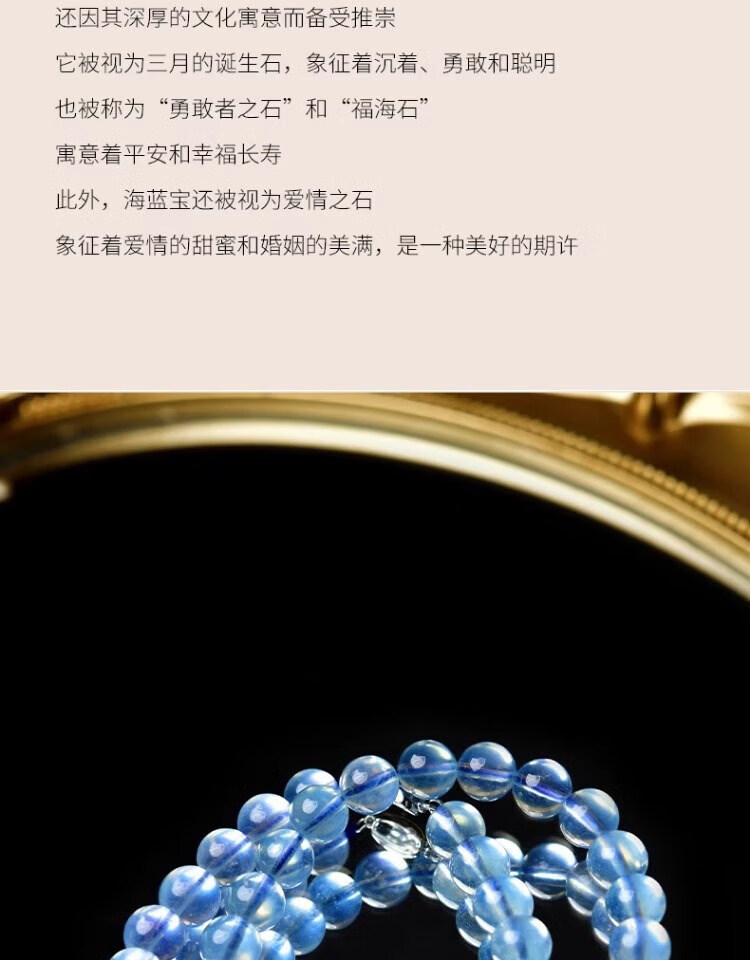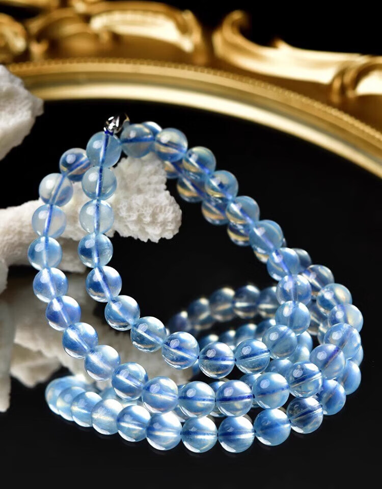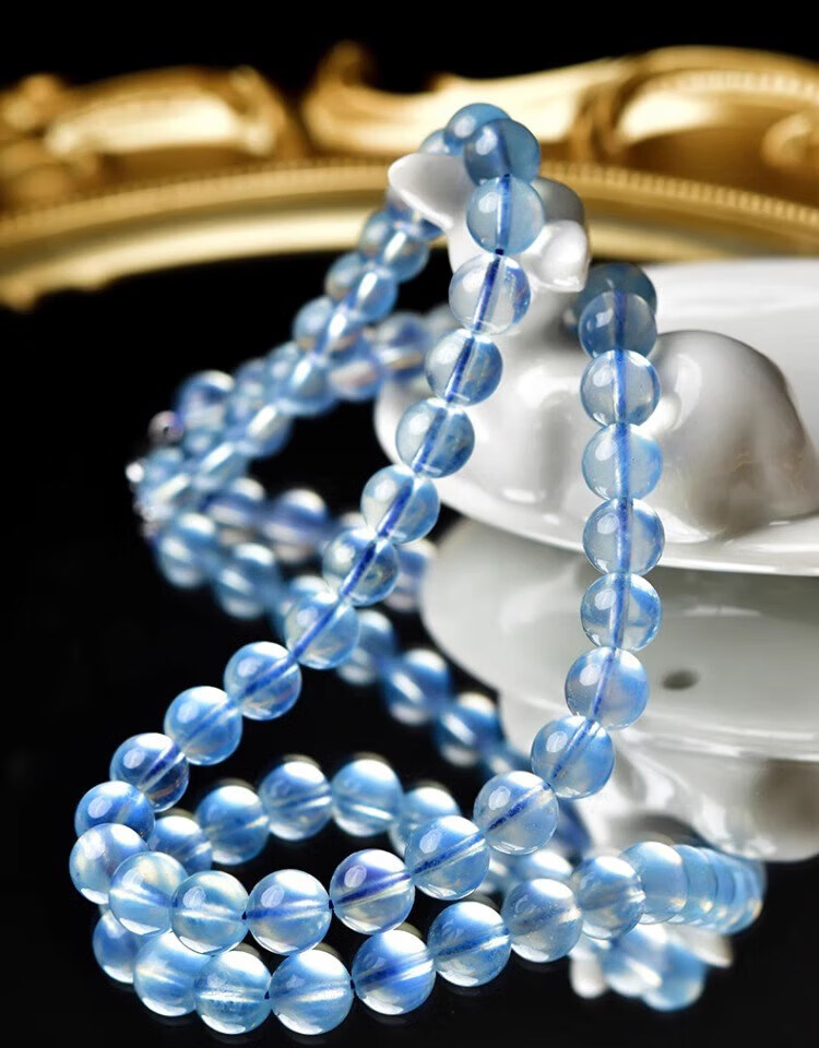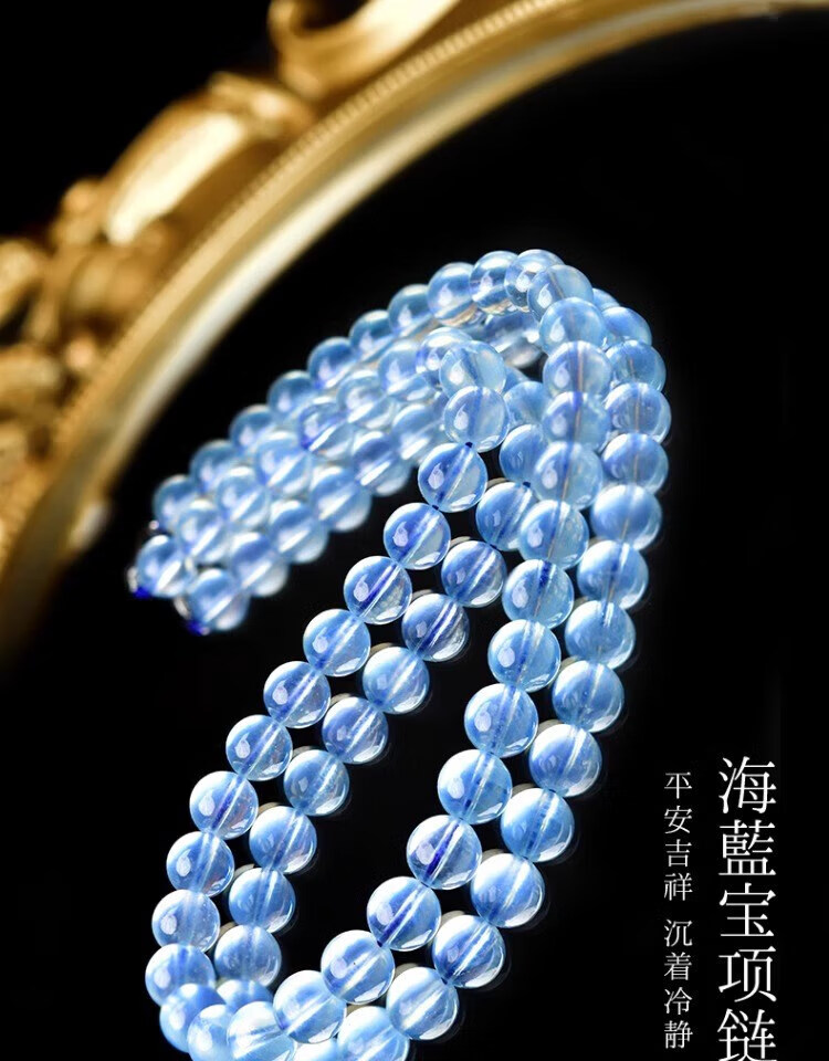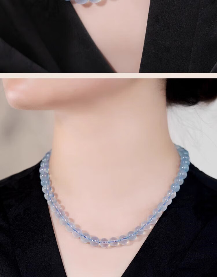 Quan Yin Light Luxury Brand Aquamarine Necklace Women's Crystal Clavicle Chain Ice Seed Blue Pendant Boy's Birthday Gift 1 Carat Beads Longest Approximately 8mm Length Approximately 40cm