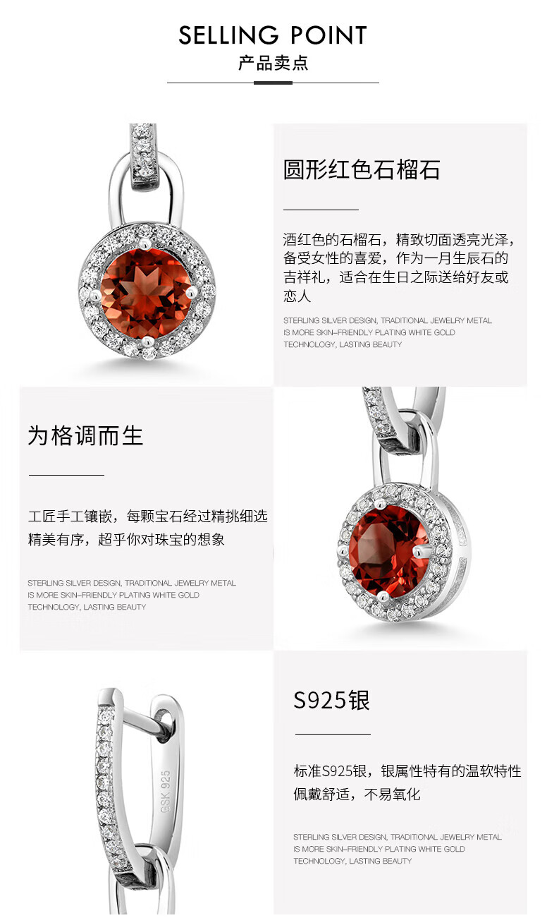 Quan Yin garnet earrings for women 925 silver set with 2.64 carats colored gemstone earrings for women classic simple earrings gift