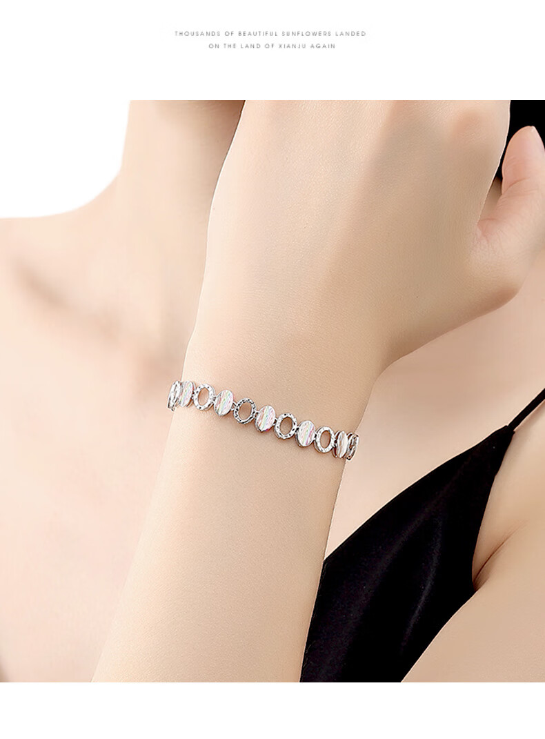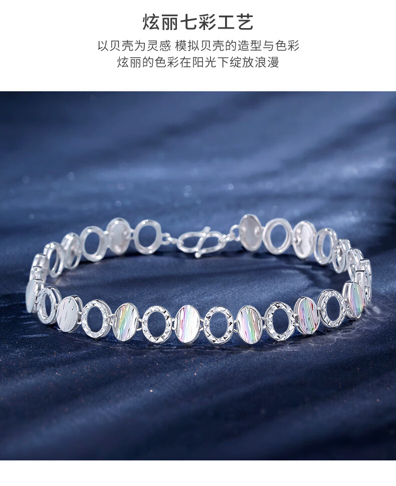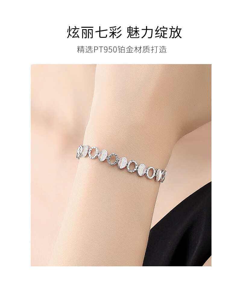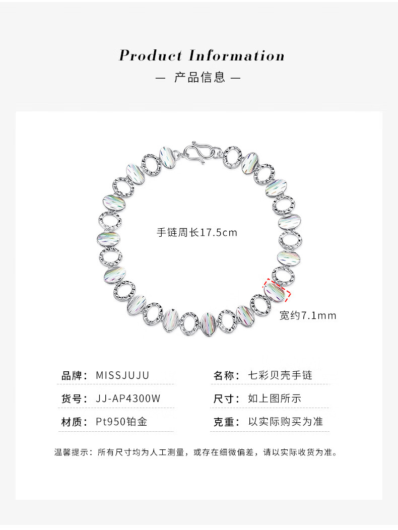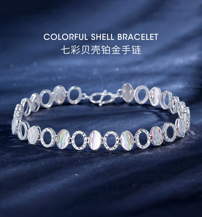 Miss JuJu pt950 platinum colorful shell bracelet for women, fashionable platinum colorful light luxury hand jewelry, weight 10.28 grams, length 16.5cm, width 7mm