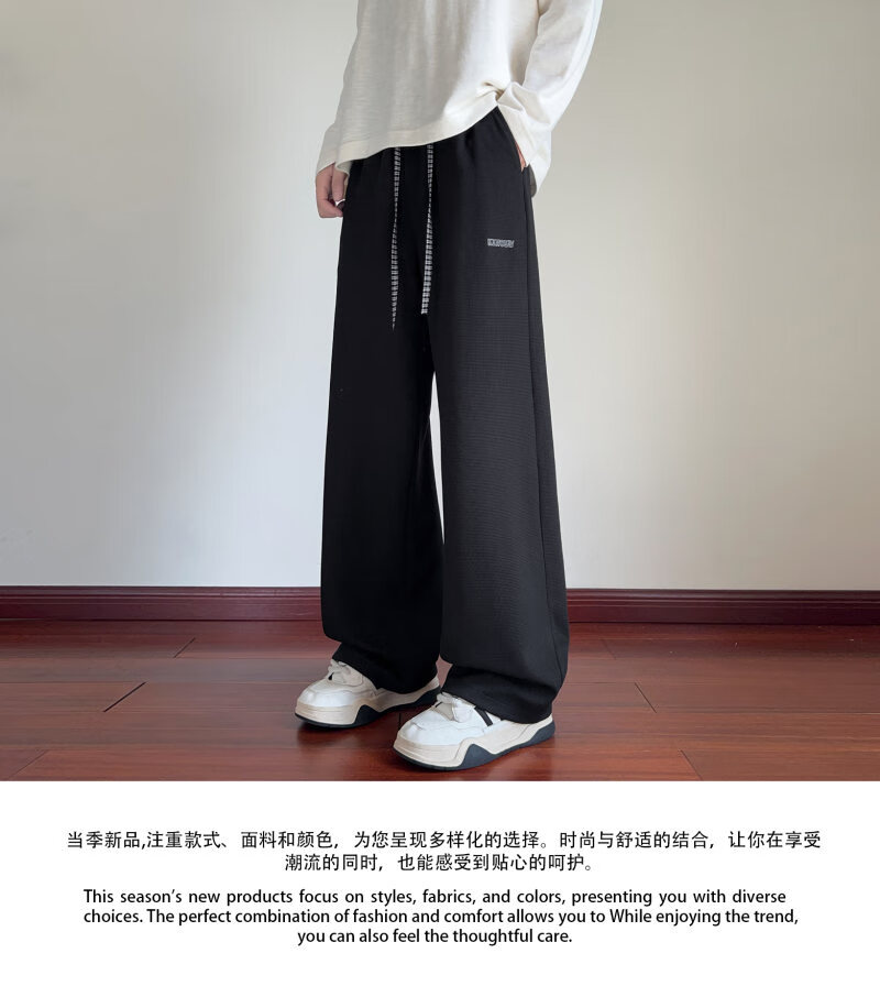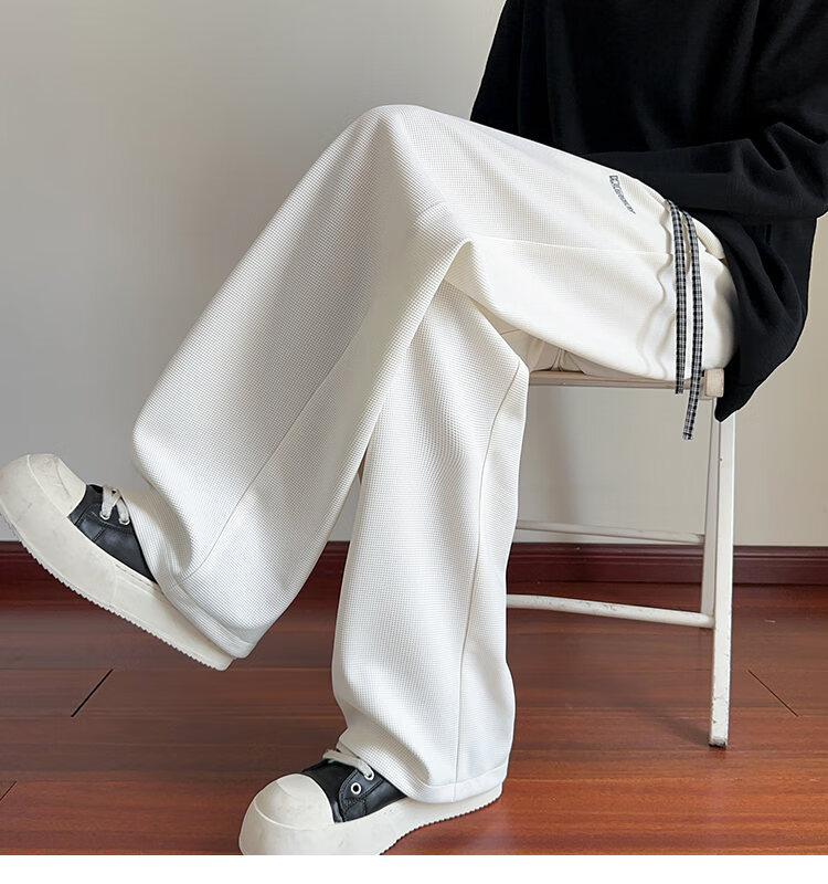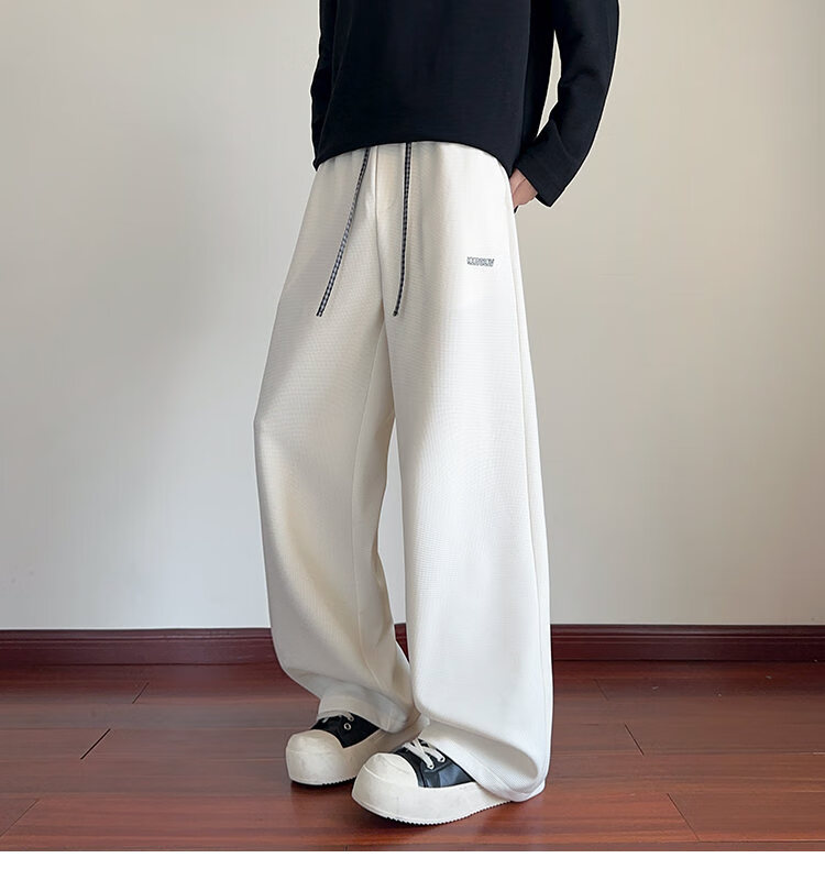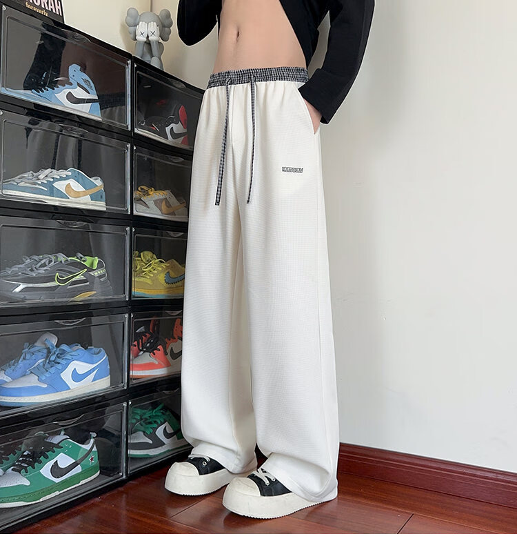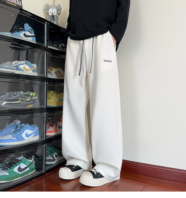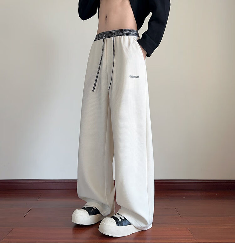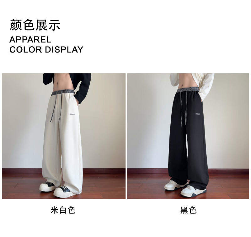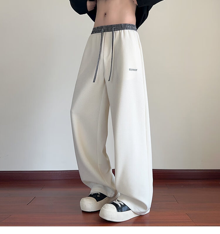 Poke American spliced casual pants for men in spring and autumn new high street straight trousers trendy brand handsome loose large size sports pants off-white XL recommended 130-150Jin Jin equals 0.5 kg