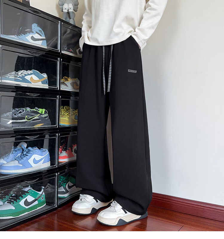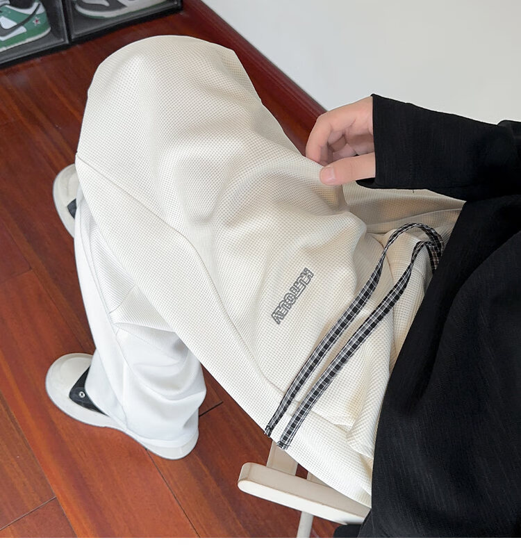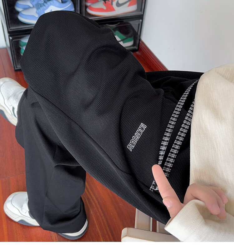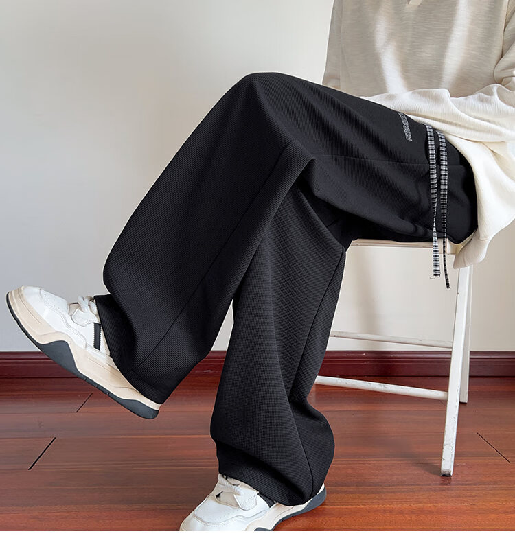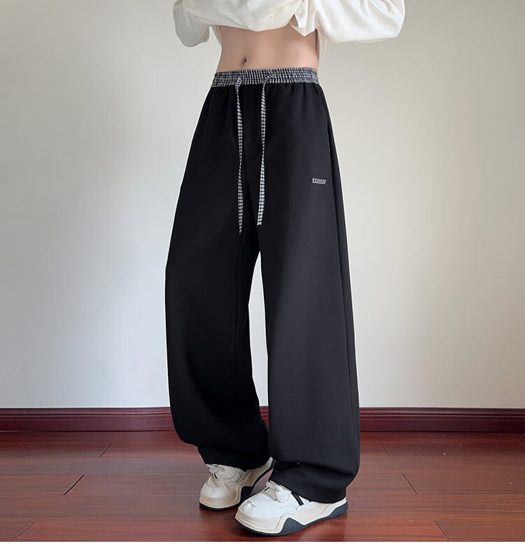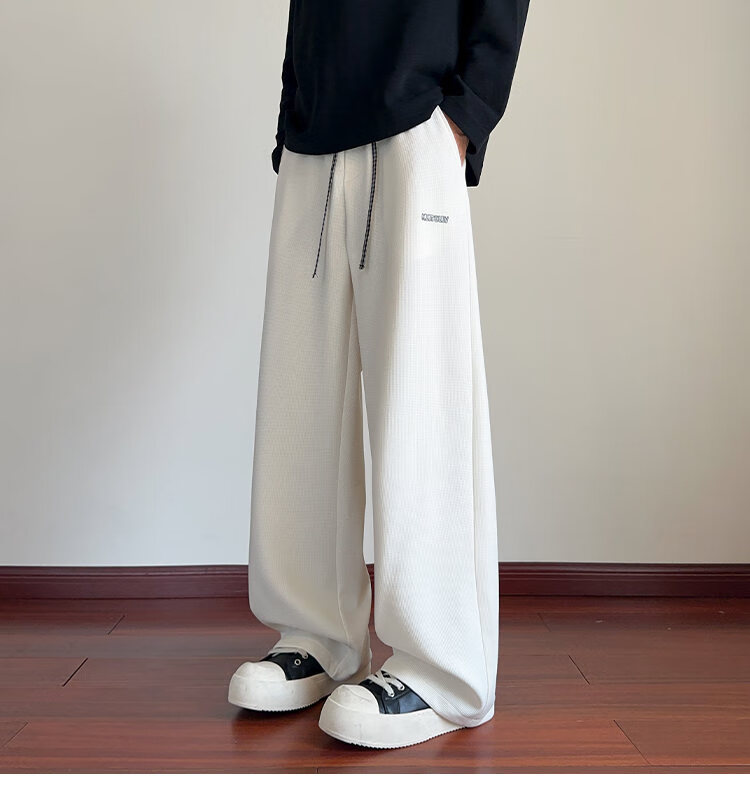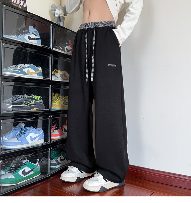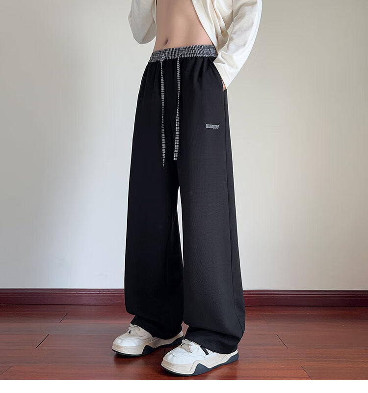 Poke American spliced casual pants for men in spring and autumn new high street straight trousers trendy brand handsome loose large size sports pants off-white XL recommended 130-150Jin Jin equals 0.5 kg