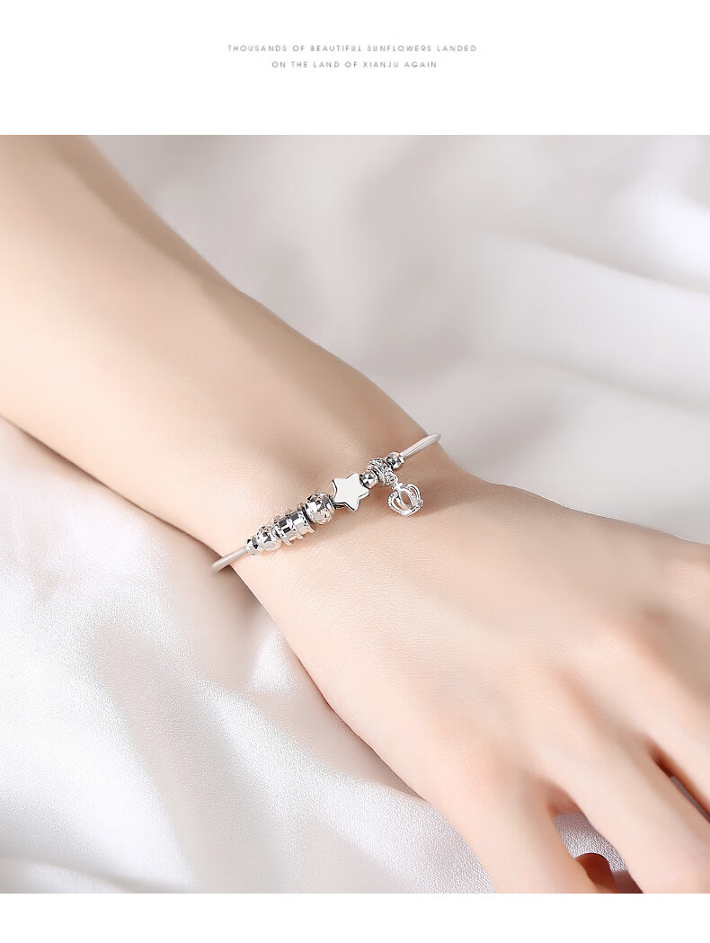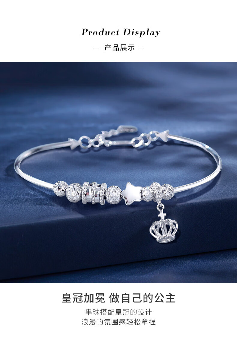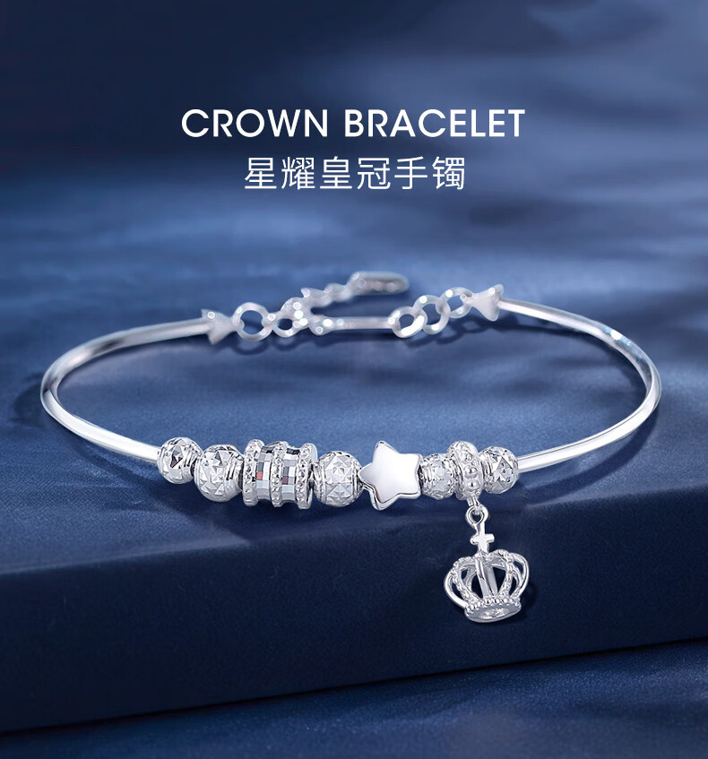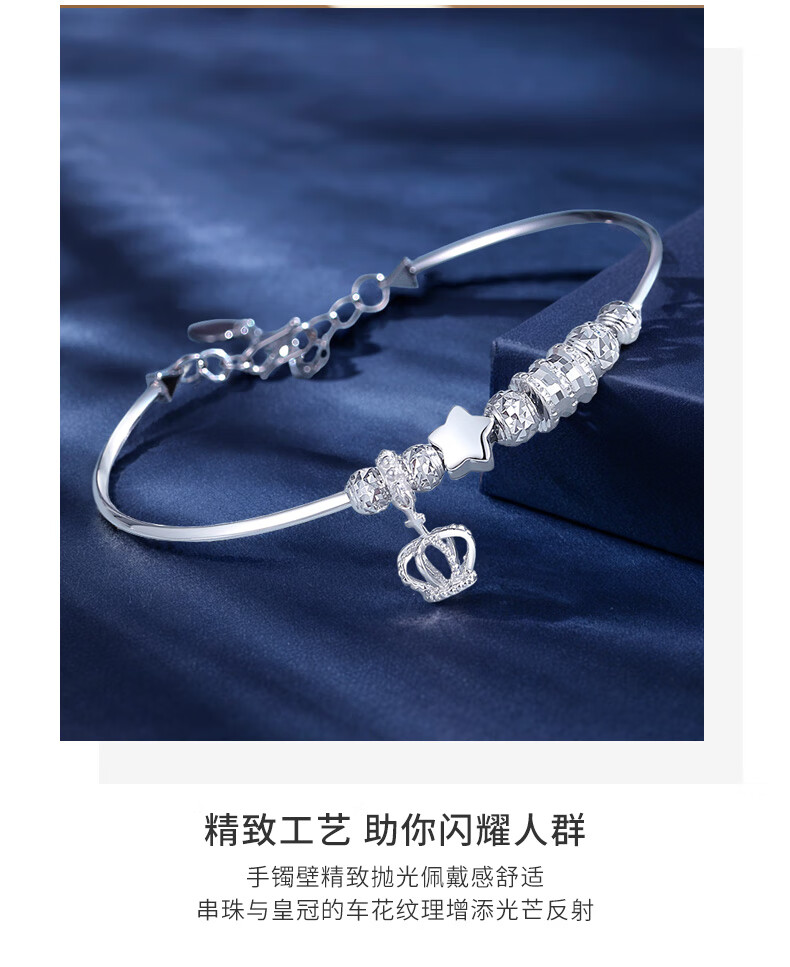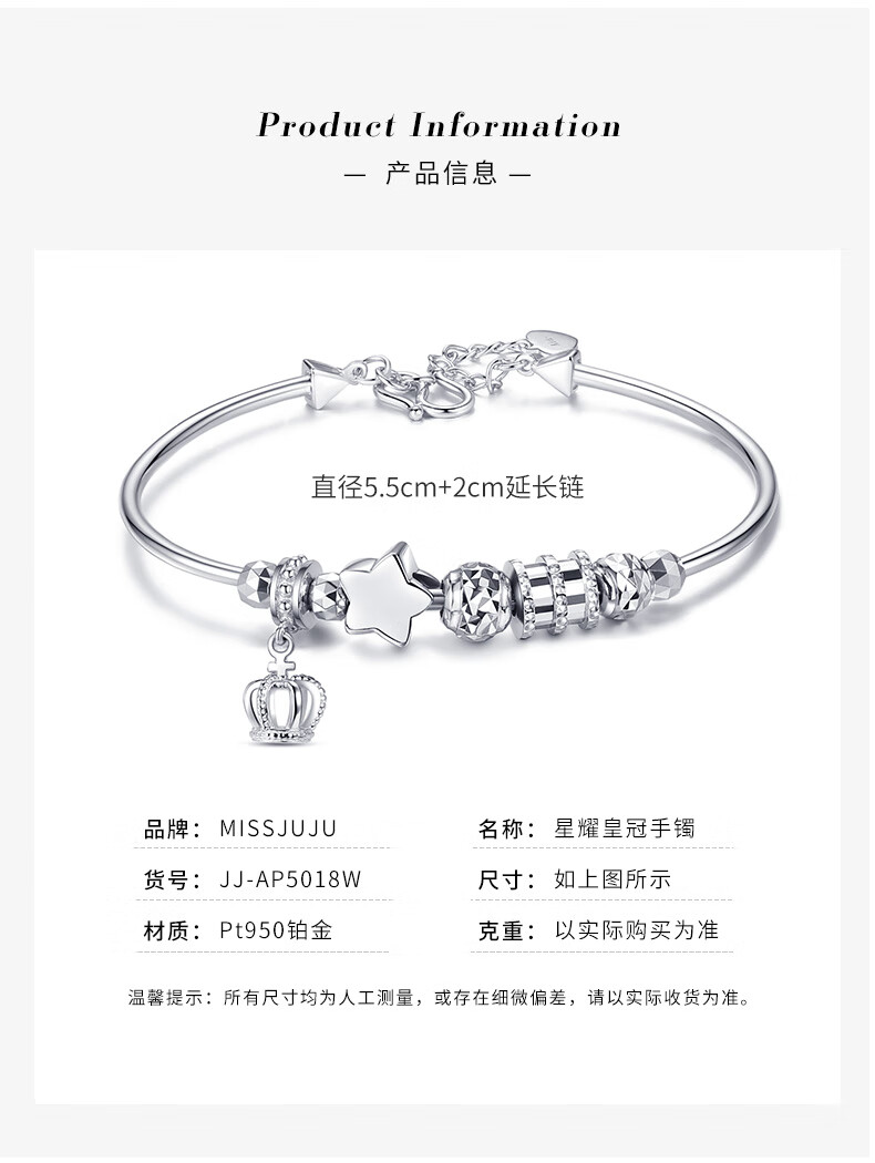 Miss JuJu pt950 platinum queen crown bracelet for women platinum fashion star small waist transfer bead bracelet weight 7.4-7.6g (53-57mm can be worn)