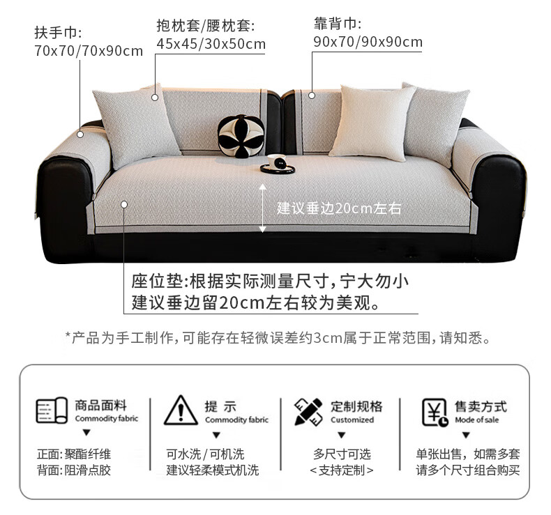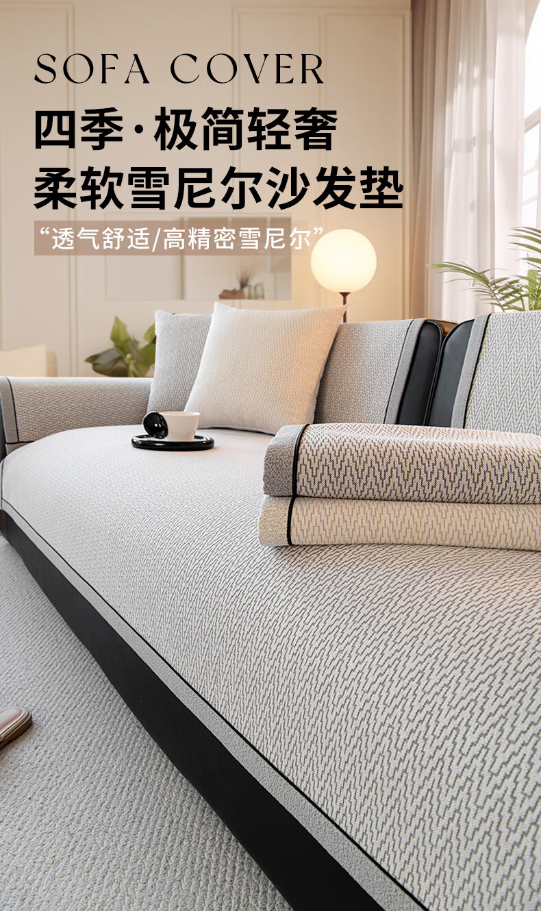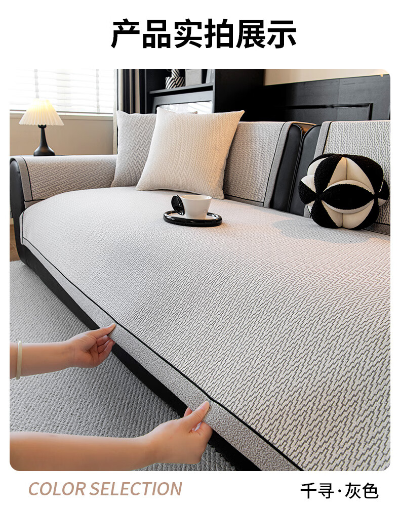 Love Lifetime Sofa Cushions for All Seasons 2026 New Sofa Seat Cushion Non-Slip Cover Cloth Cover High-end Popular Straight Seat Cushion Chenille Chihiro-Gray 90cm*70cm Extended Armrest Cover Backrest Cover