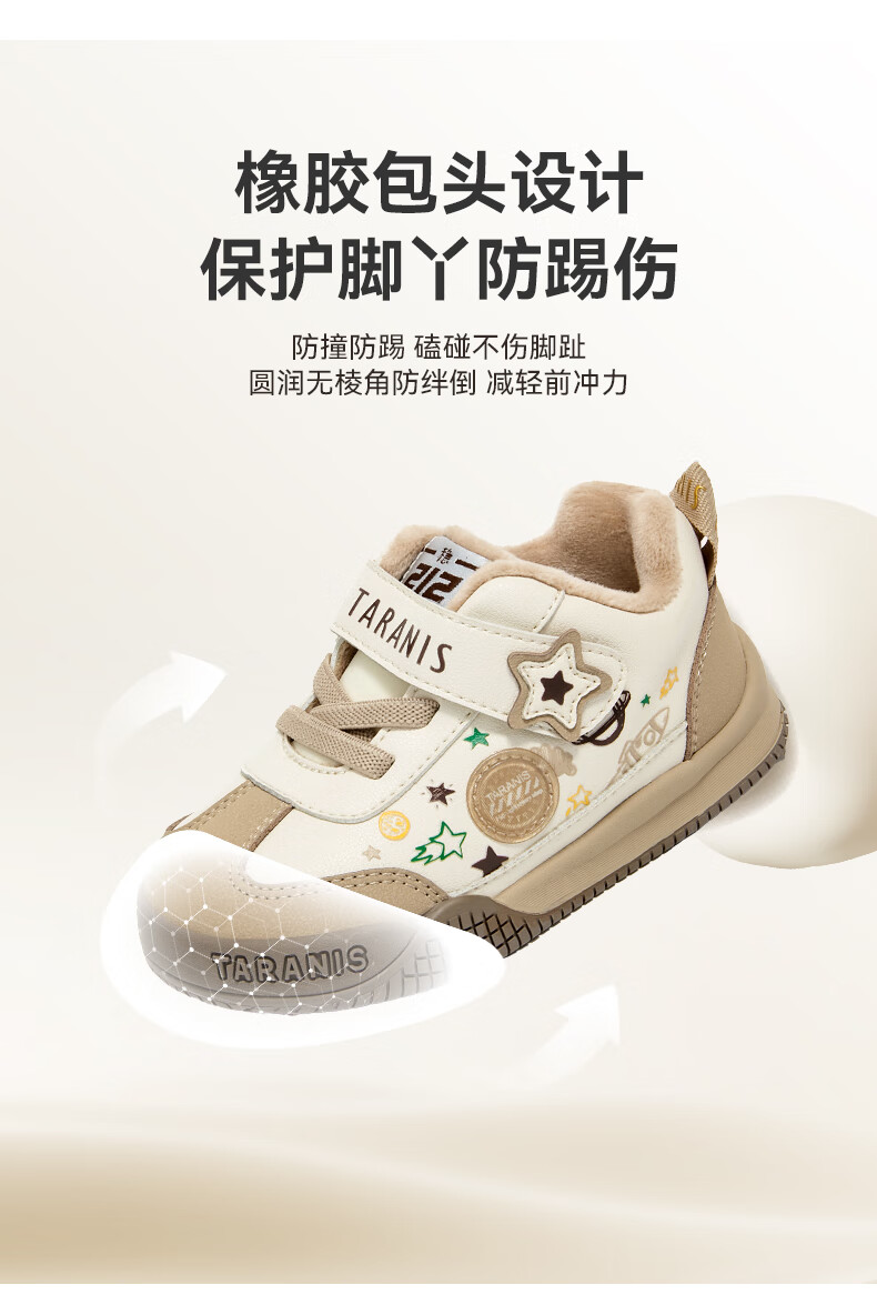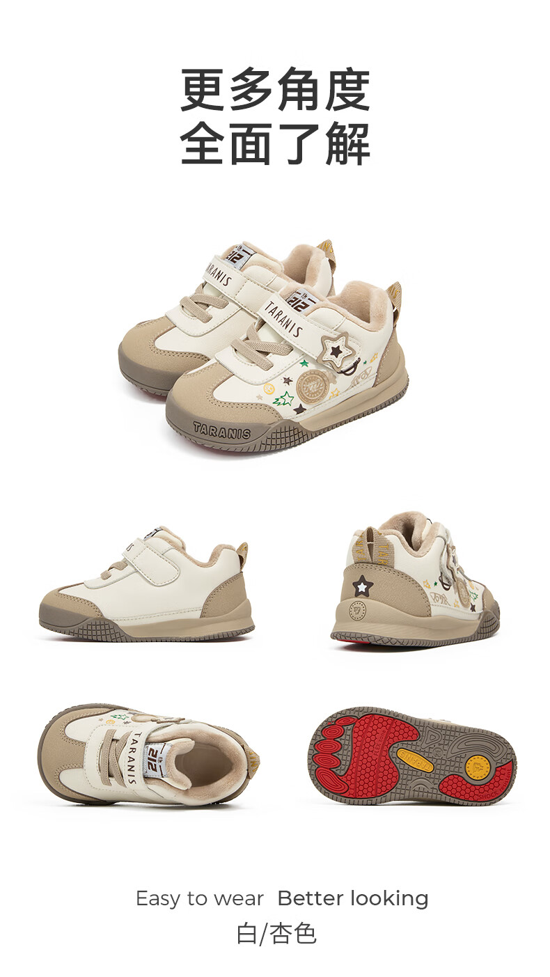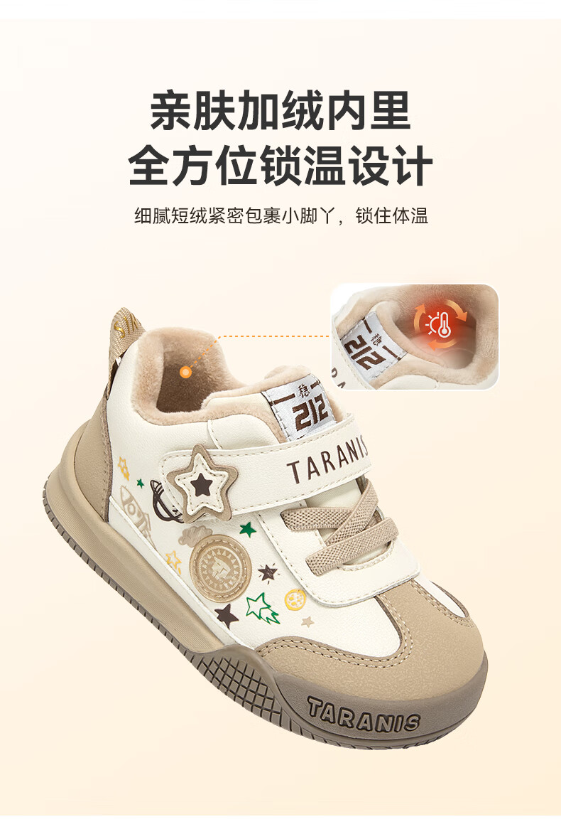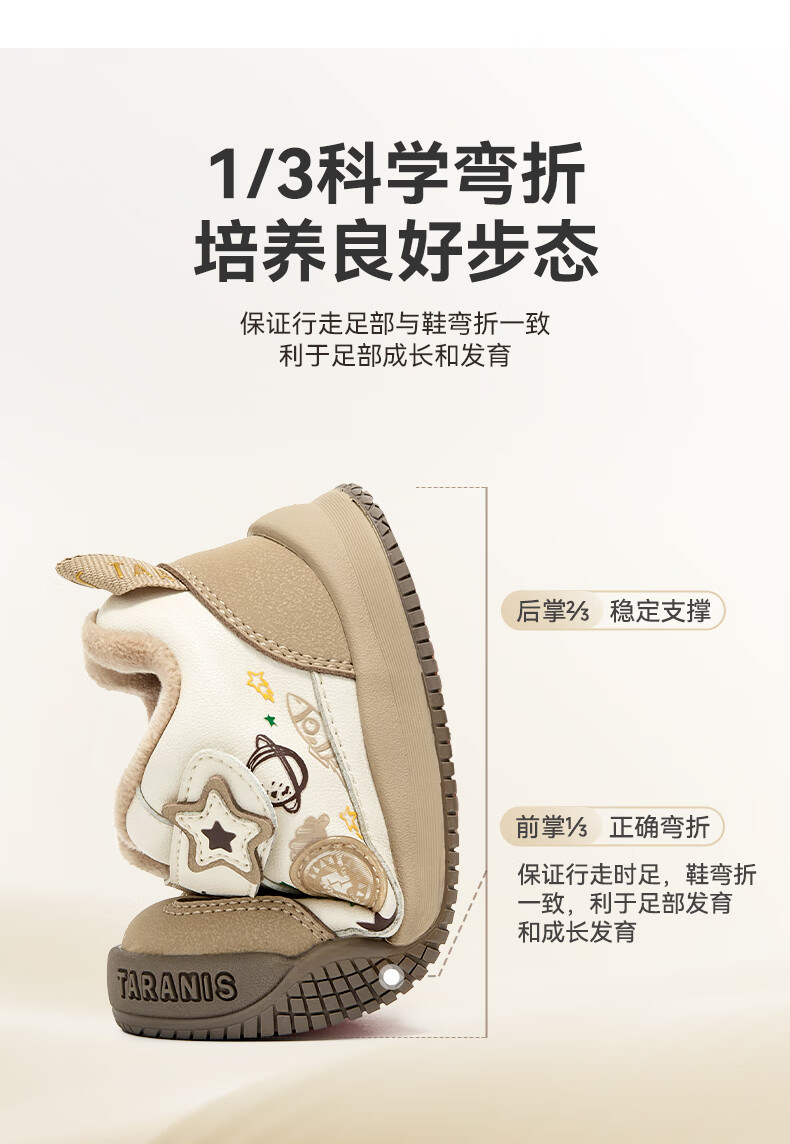 Tyrannis winter new children's shoes toddler shoes for boys plus velvet warm bread shoes non-slip soft bottom girls' shoes white/apricot 25 inner length 16.0 suitable for feet 14.3~14.7