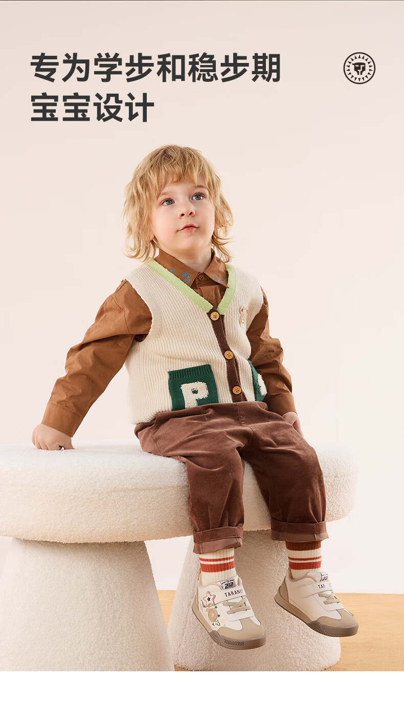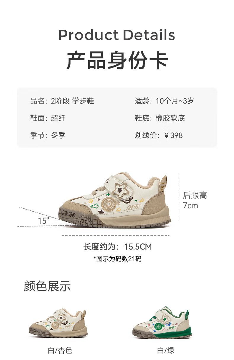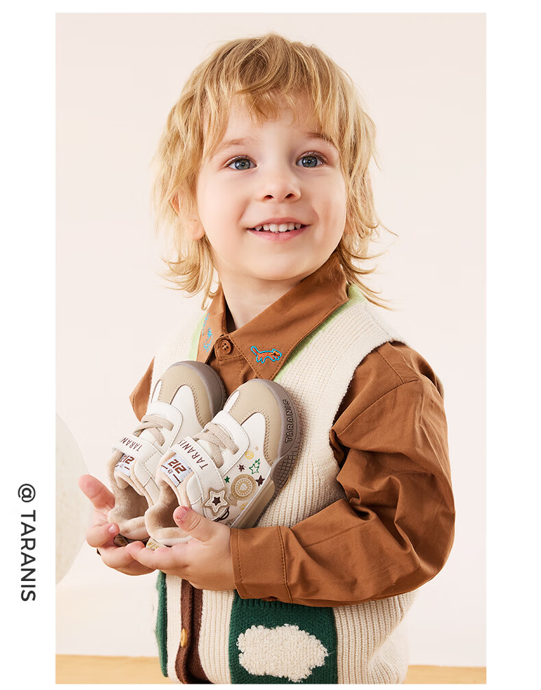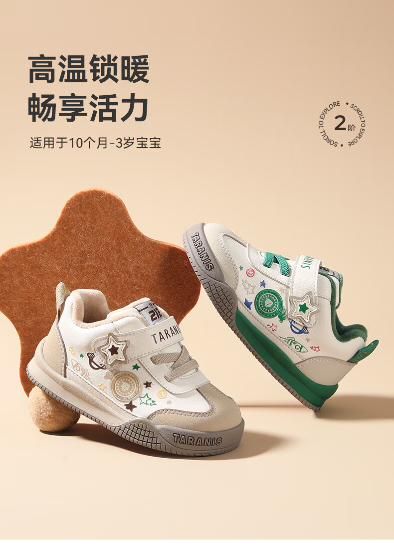 Tyrannis winter new children's shoes toddler shoes for boys plus velvet warm bread shoes non-slip soft bottom girls' shoes white/apricot 25 inner length 16.0 suitable for feet 14.3~14.7