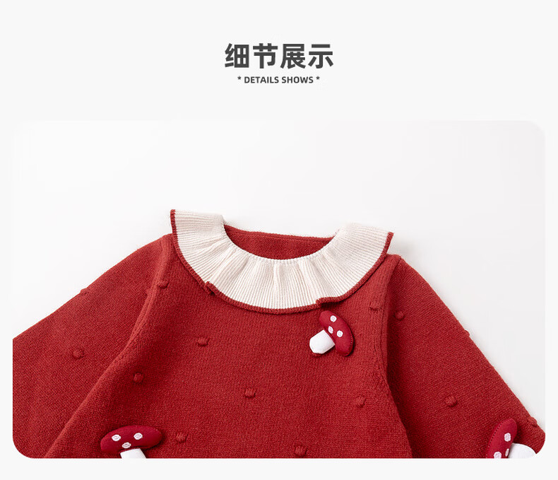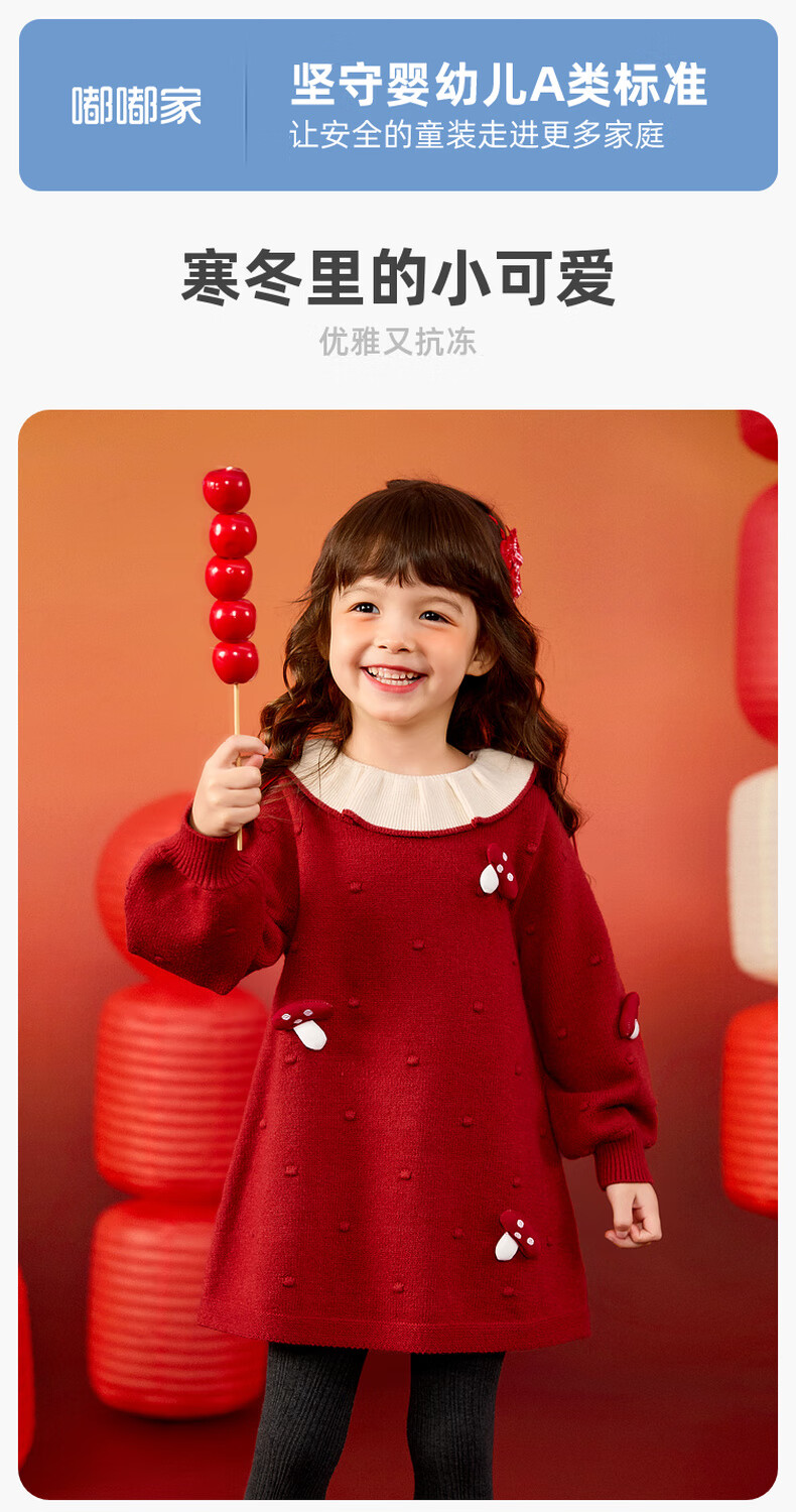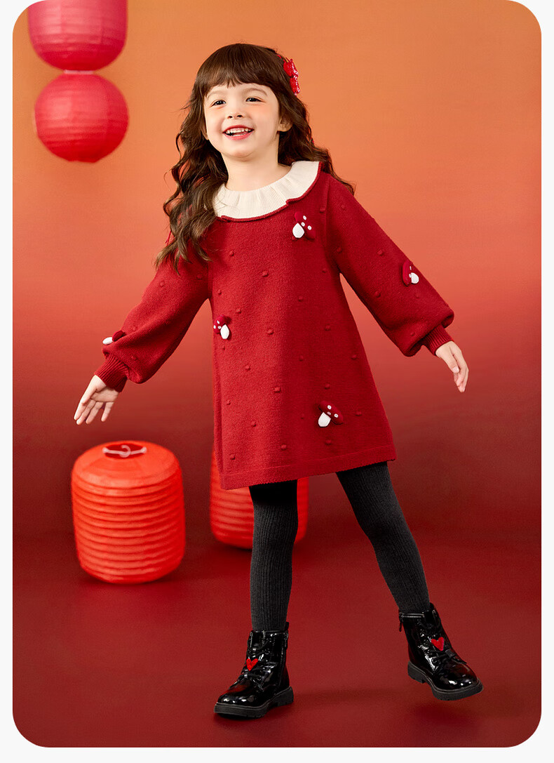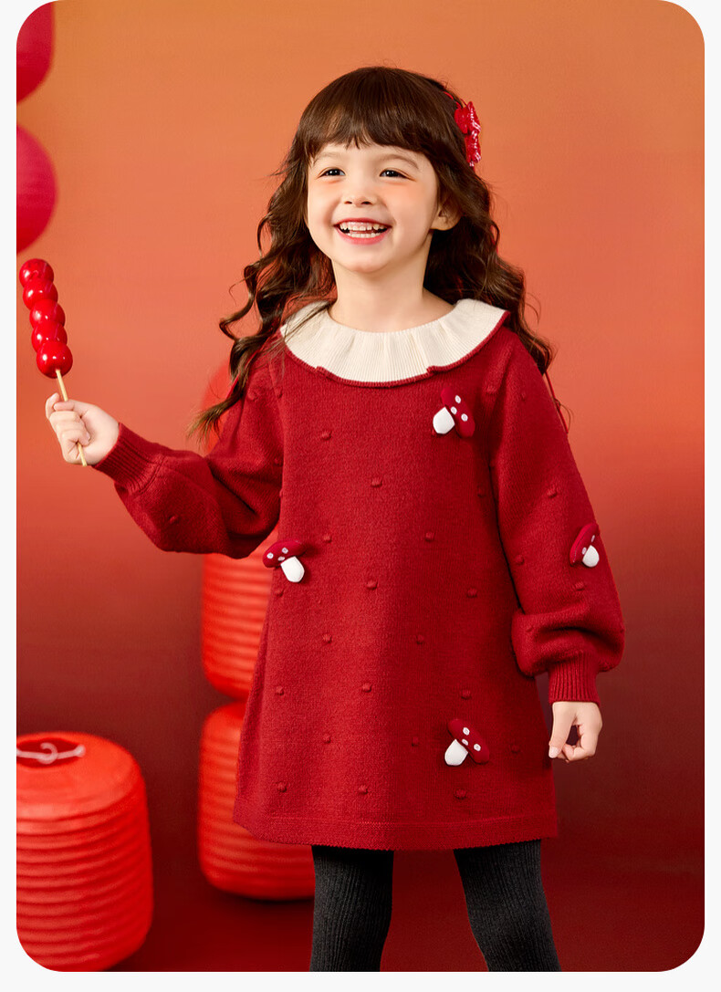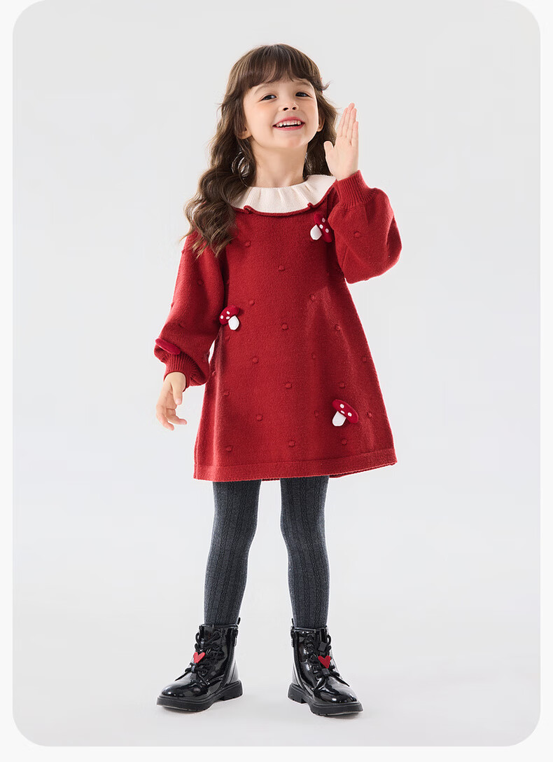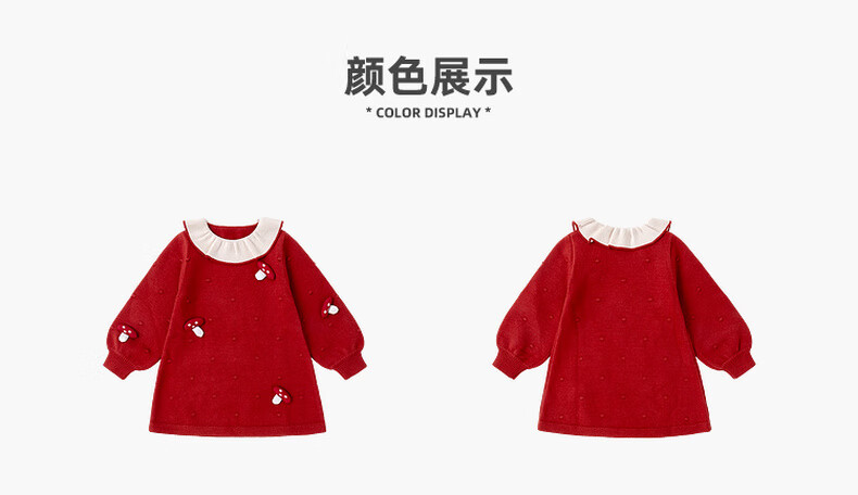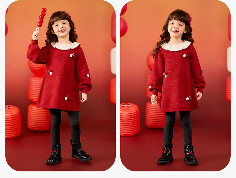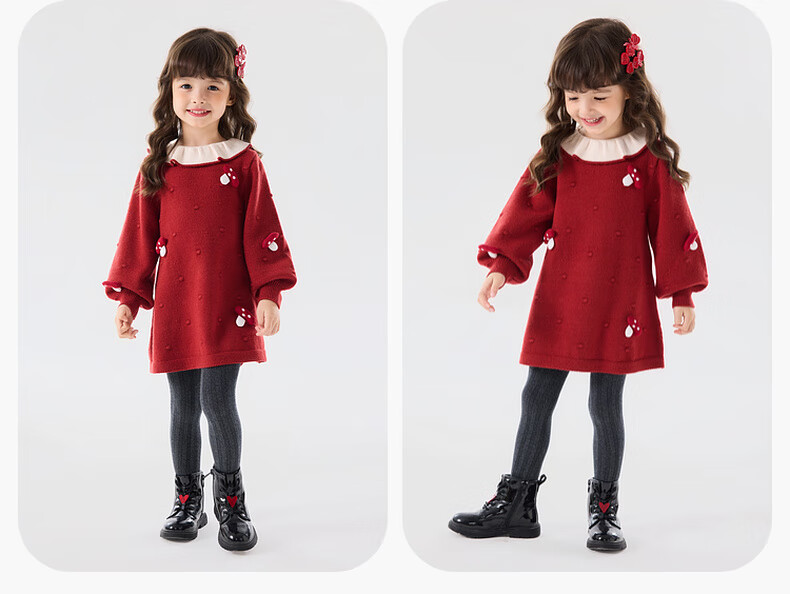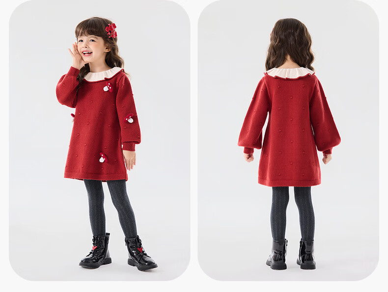Dudujia Doll Collar Children's Skirt Girls Princess Skirt Autumn and Winter 2025 New Sweet Baby Dress Fashion Red 100