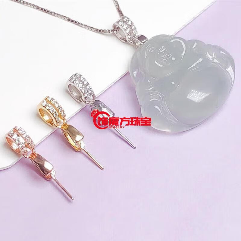 Keshan quality 18K gold pendant buckle jade pendant buckle diy jade crystal necklace buckle accessories fashion and simple style 1 white gold