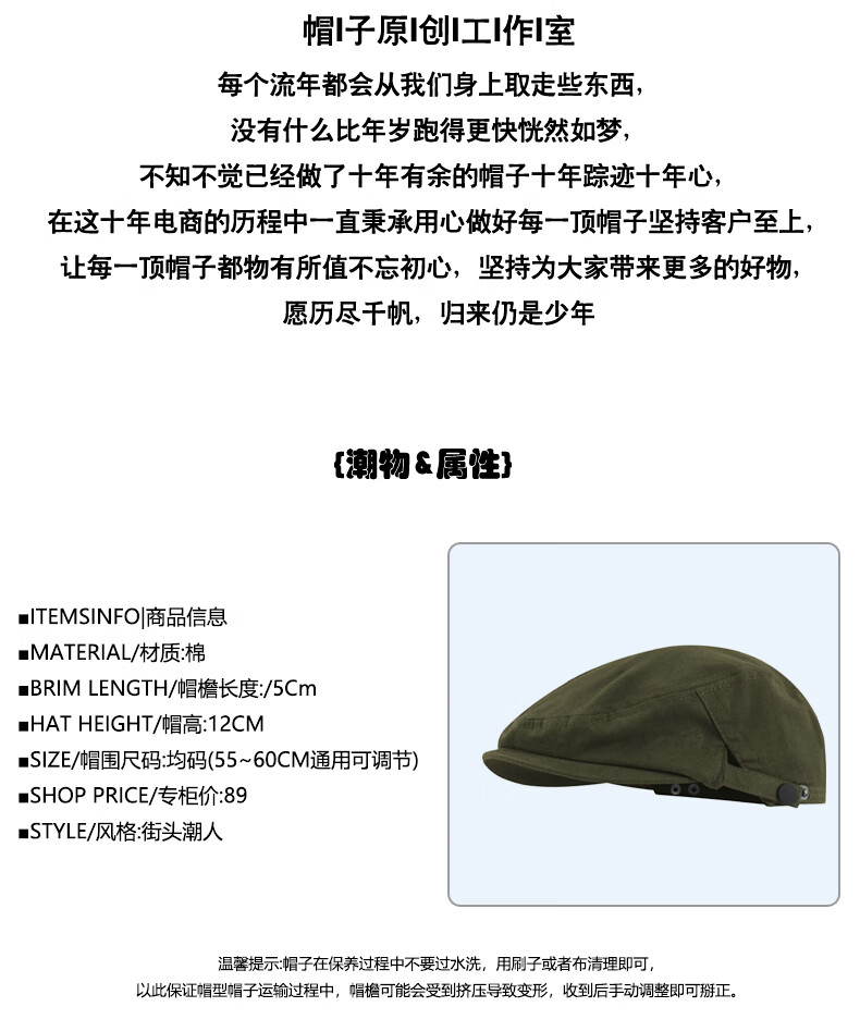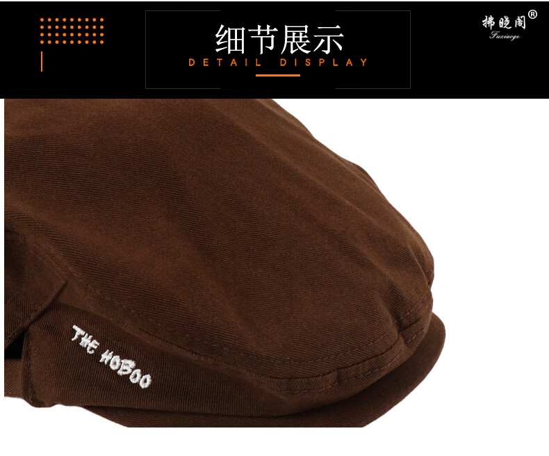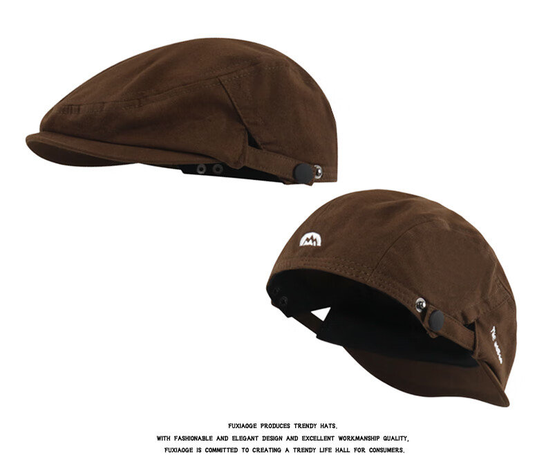 Fuxiaoge (fuxiaoge) niche mountain series backward-wearing forward hat, retro Hong Kong style newsboy hat, literary painter hat, small face, white beret, brown mountain series THE embroidered advance hat FXG-8029 L adjustable (55-60cm)