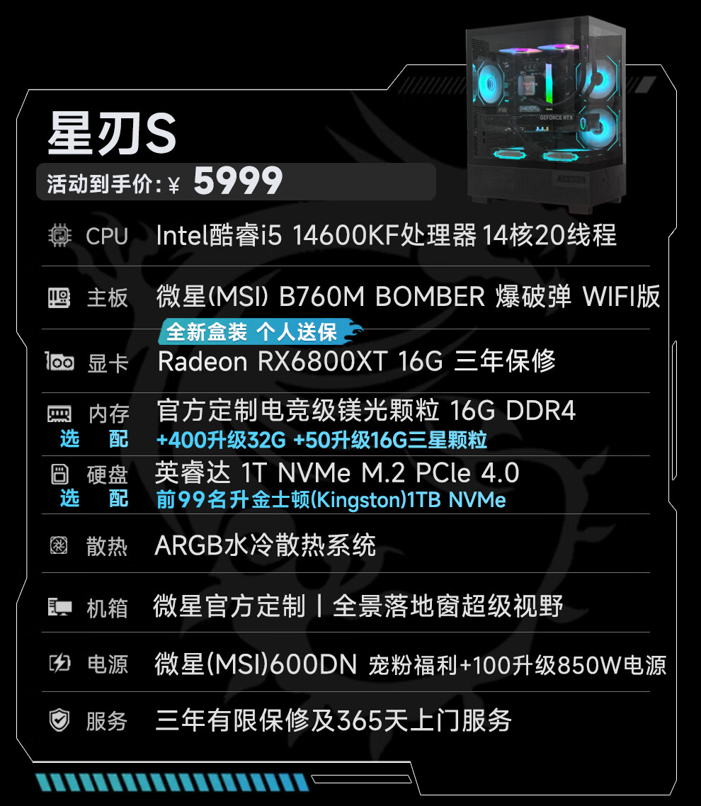 MSI 2025 new product Core i5 14400F/9060XT/6700XT 12G/6800XT 16G design desktop complete machine 3A game assembly Delta computer host I5 14400F+6800XT|MSI Star Blade E MSI E-sports