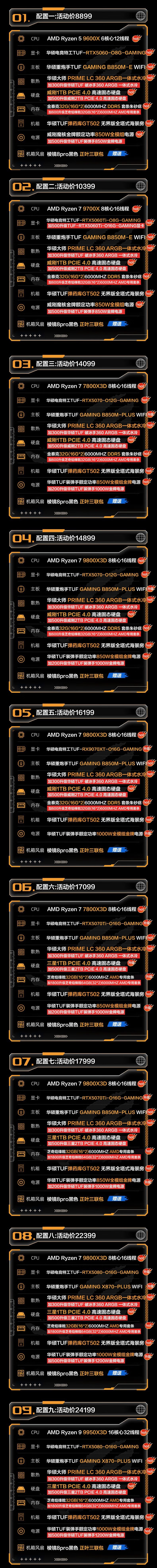 ASUS ROG family bucket Ryzen AMD 9800X3D host TUF5080/5070/5060 graphics card E-sports game assembly computer diy ammunition depot sea view room desktop special price 9800X3D/TUF5070Ti/32G host package