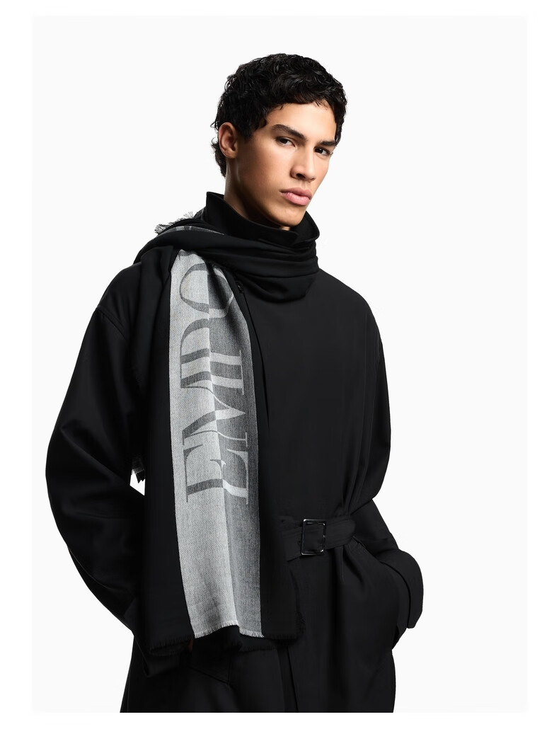 EMPORIO ARMANI/Armani official flagship New Year gift new men's contrast striped jacquard scarf winter M8241-dark gray/beige one size