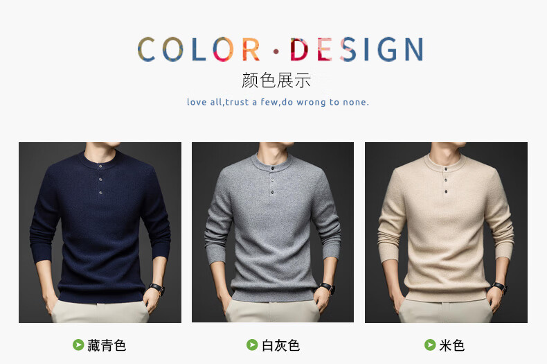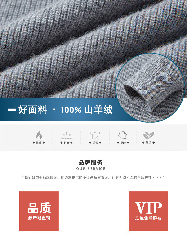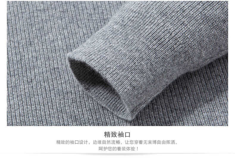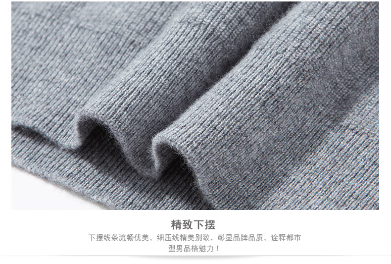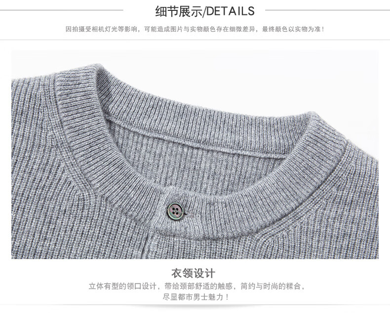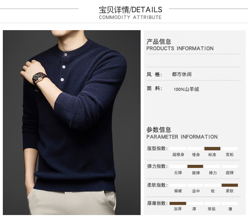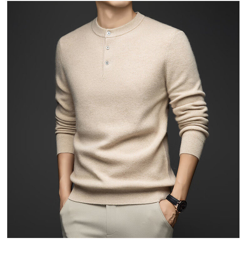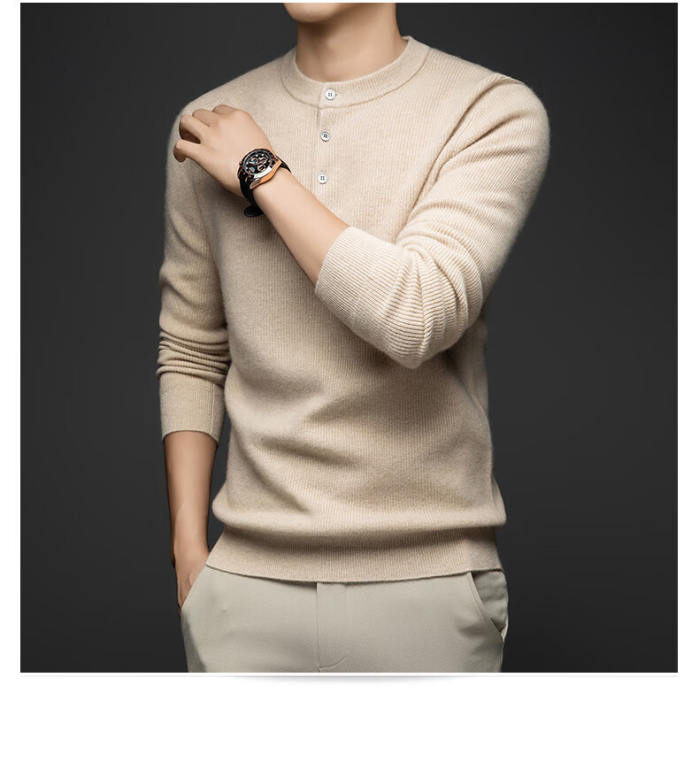 MELLEN 100% pure cashmere sweater Henry collar thickened sweater for men in winter round neck trendy casual warm knitted bottoming shirt navy blue S (165)