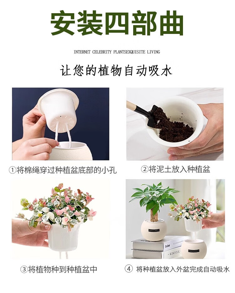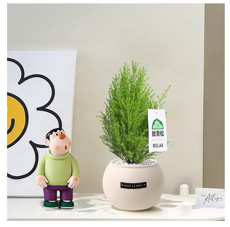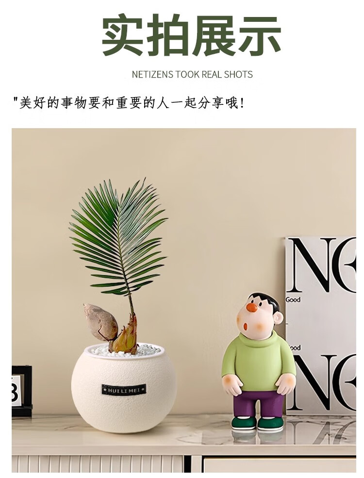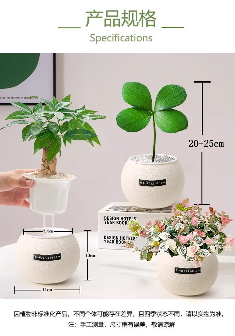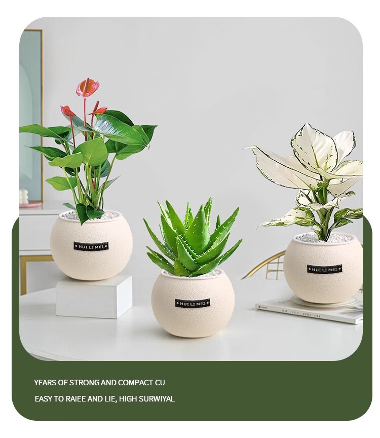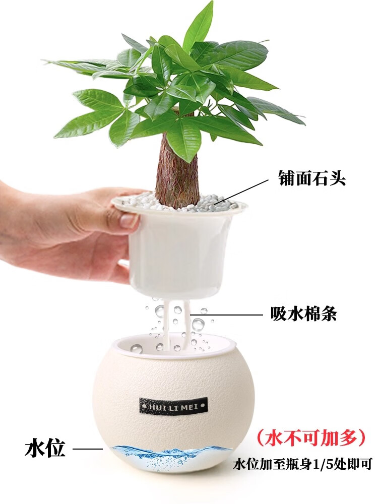 A complete list of green plants, indoor small potted plants, tabletop green radish, easy to live in all seasons, suitable for lazy people, money tree, office plant, three-pole money tree + frosted planet self-priming basin + paving stone + nutrient solution