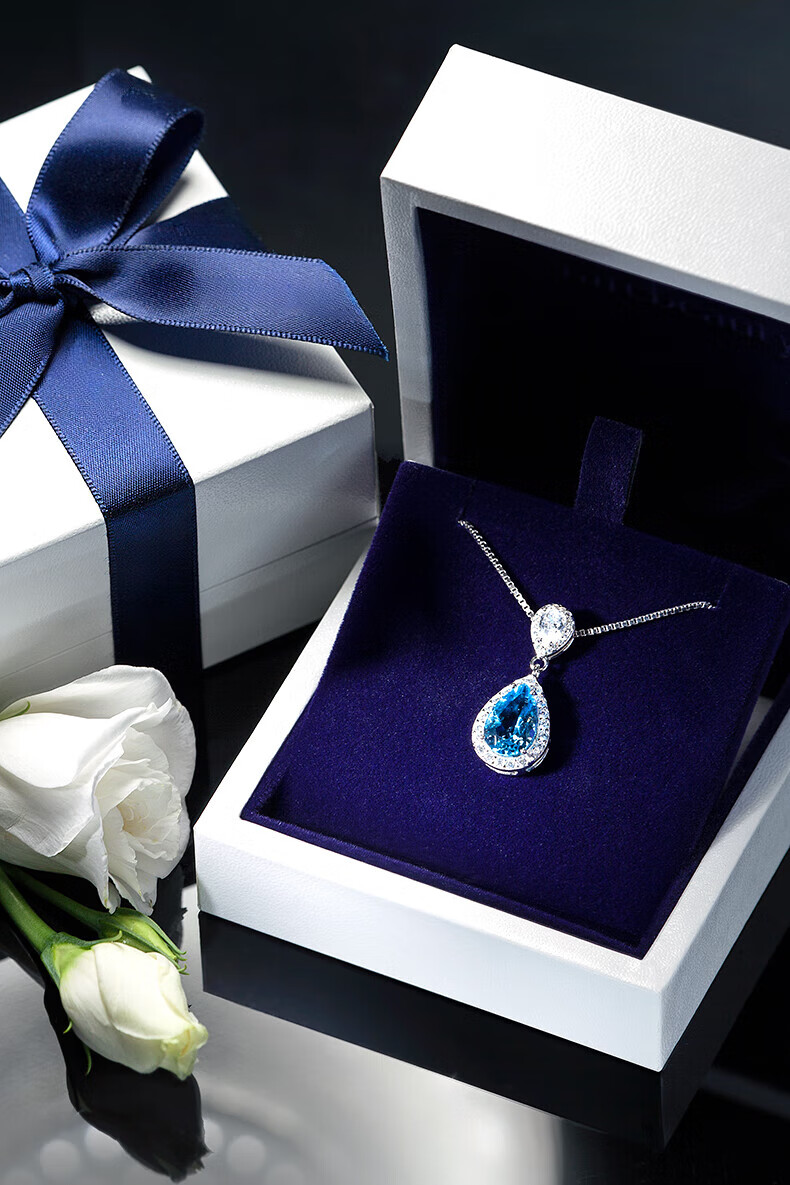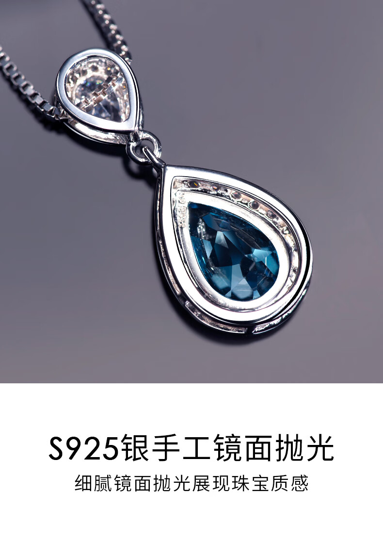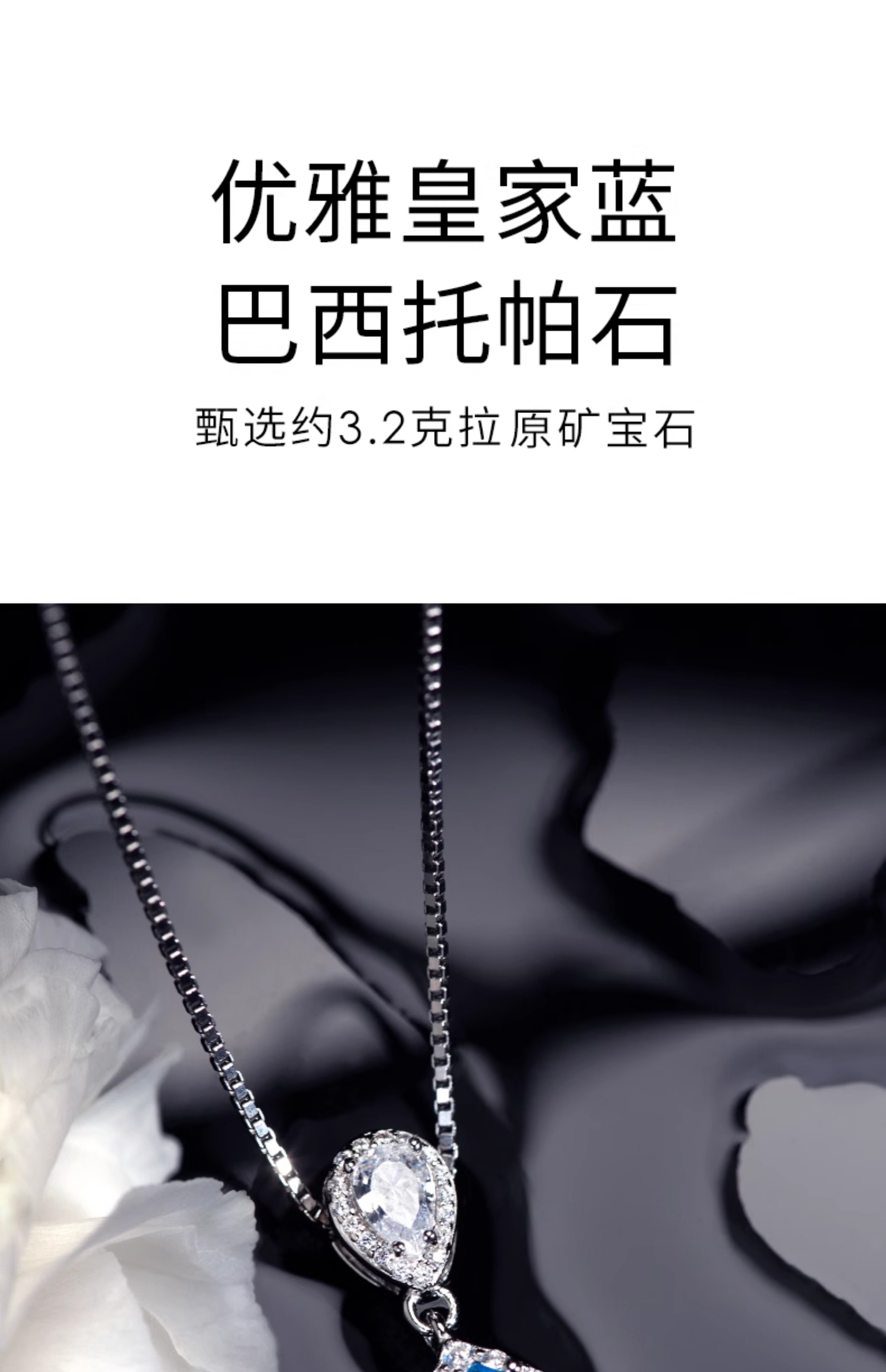 Felop Necklace Women's Topaz Silver Gemstone Pendant Brilliant Anniversary Birthday Birthday Valentine's Day Gift for Girlfriend and Wife 3 Carat Topaz Pendant