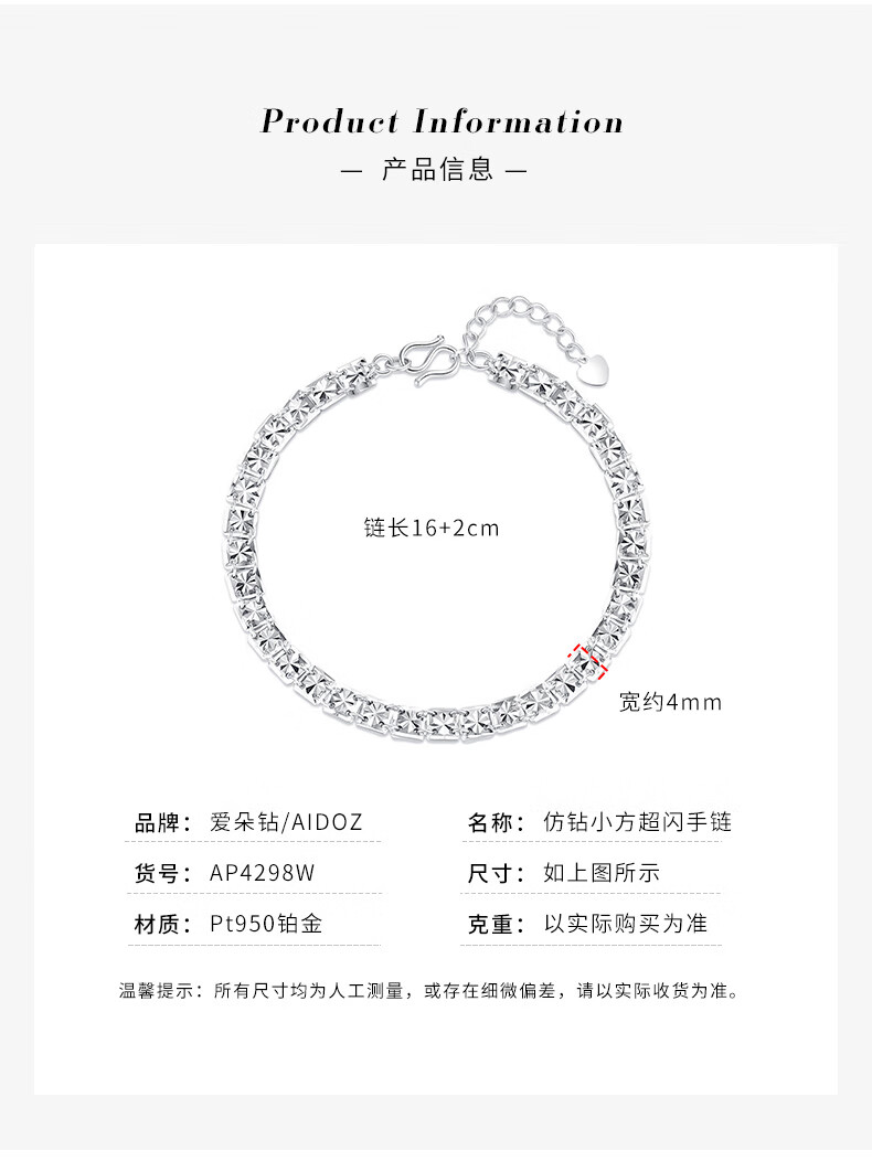 Aido Diamond pt950 platinum wide square square rice bracelet for women platinum imitation diamond cut super shiny weight 7.89 grams length 16+2cm width about 4mm