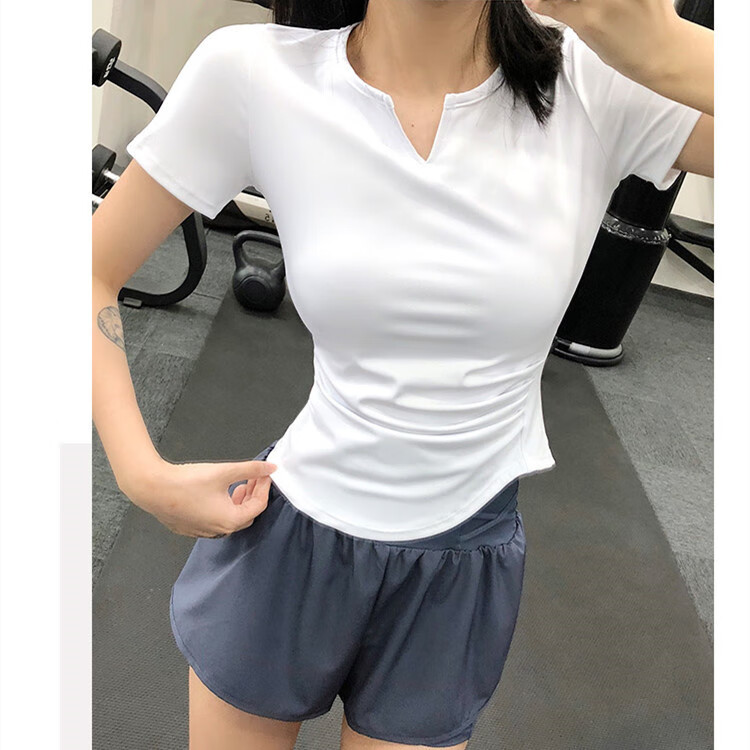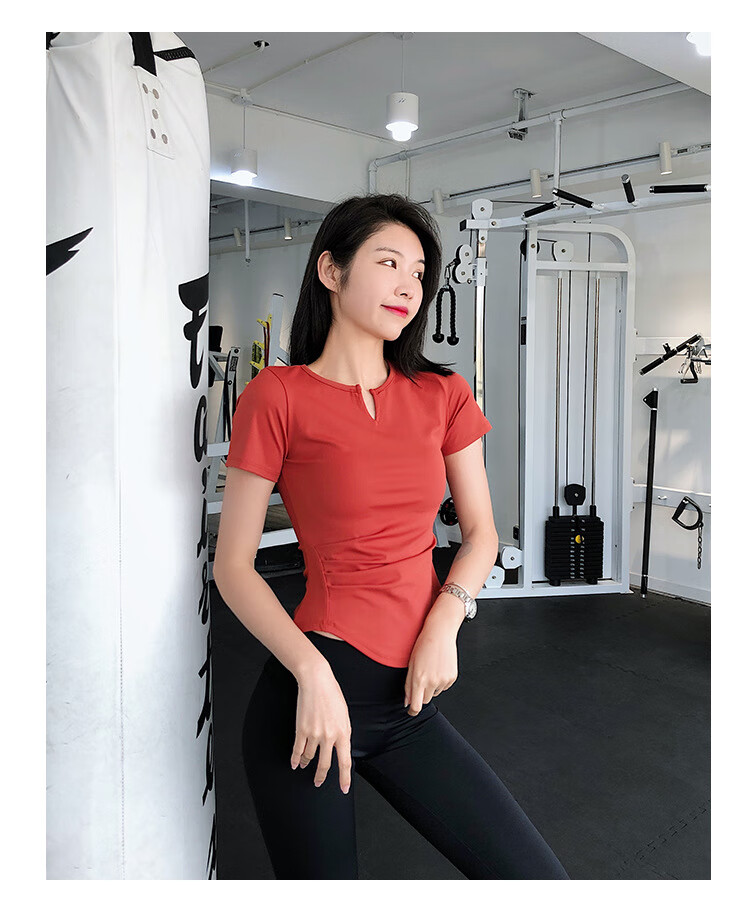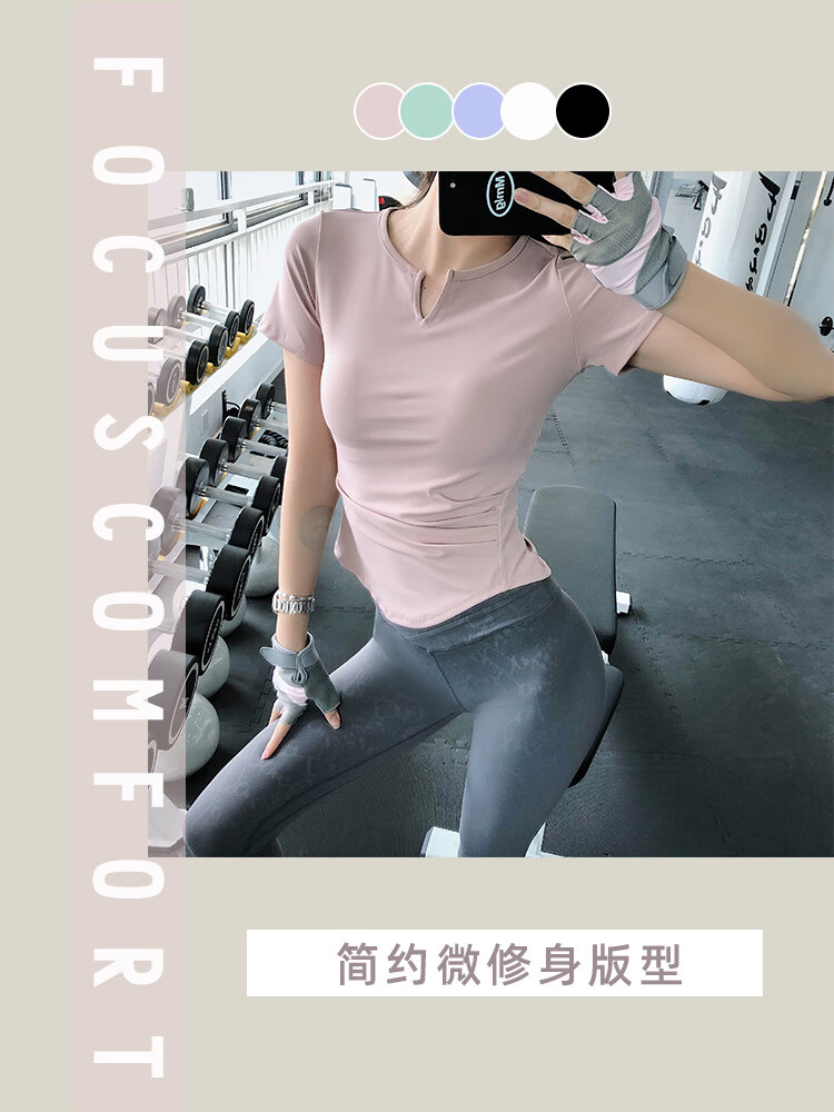 Yoga wear women's short-sleeved Pilates running fitness T-shirt sexy slim short style slimming quick-drying pink L recommended weight 100-110