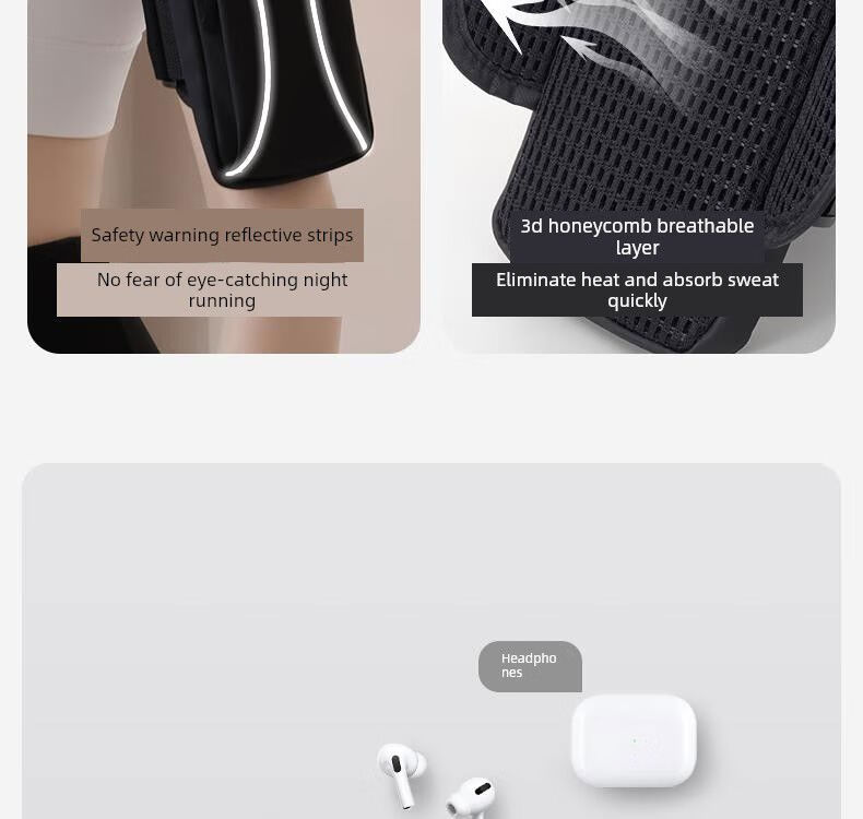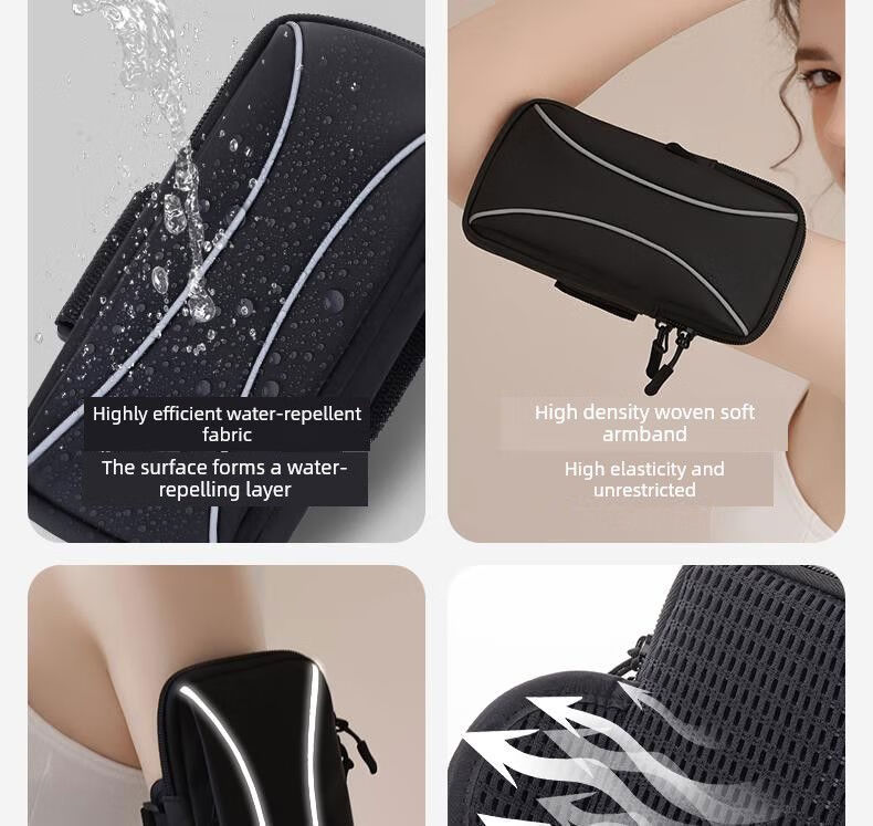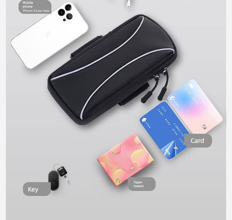 Zhizhou Japan imported running mobile phone bag arm bag men's and women's fitness equipment wristband waterproof storage Huawei Apple classic black upgraded model 6 points 8 inches light and breathable