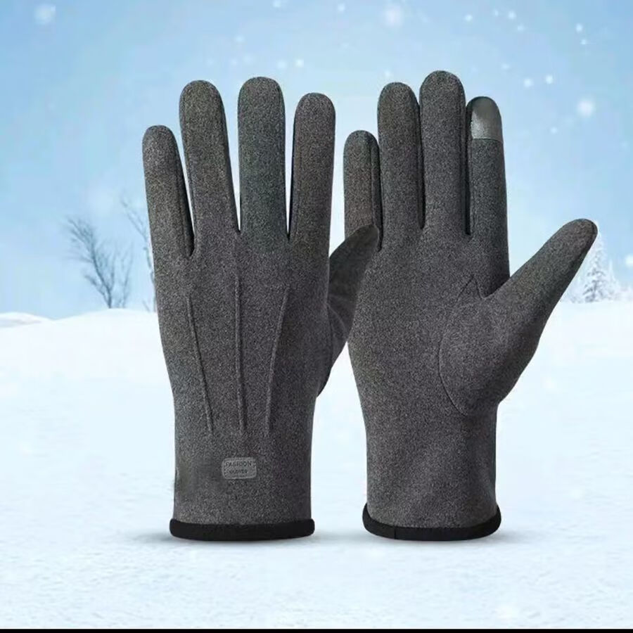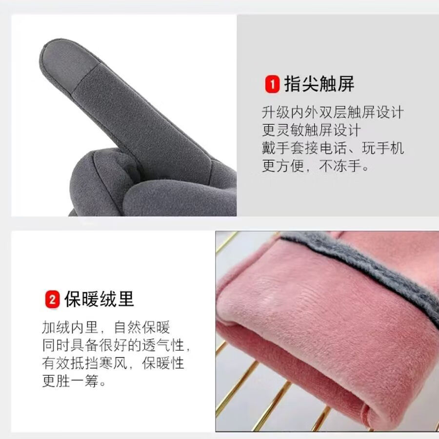 Warm gloves for women in autumn and winter, touch screen for outdoor riding, velvet, windproof, men's, anti-freeze sports, thickened cotton plush, women's velvet - gray