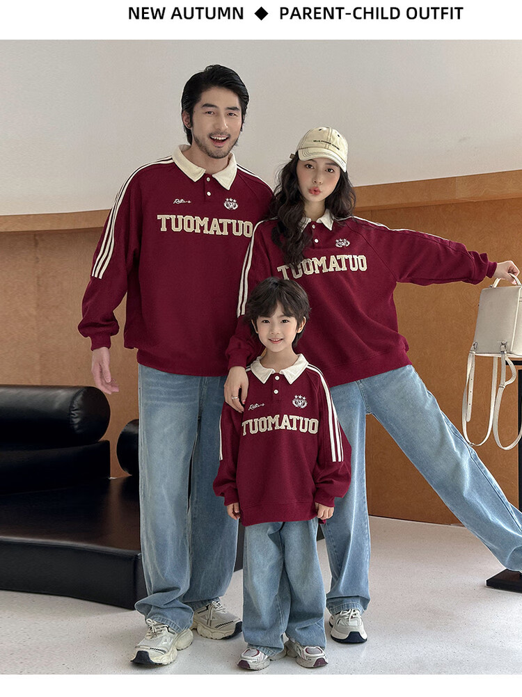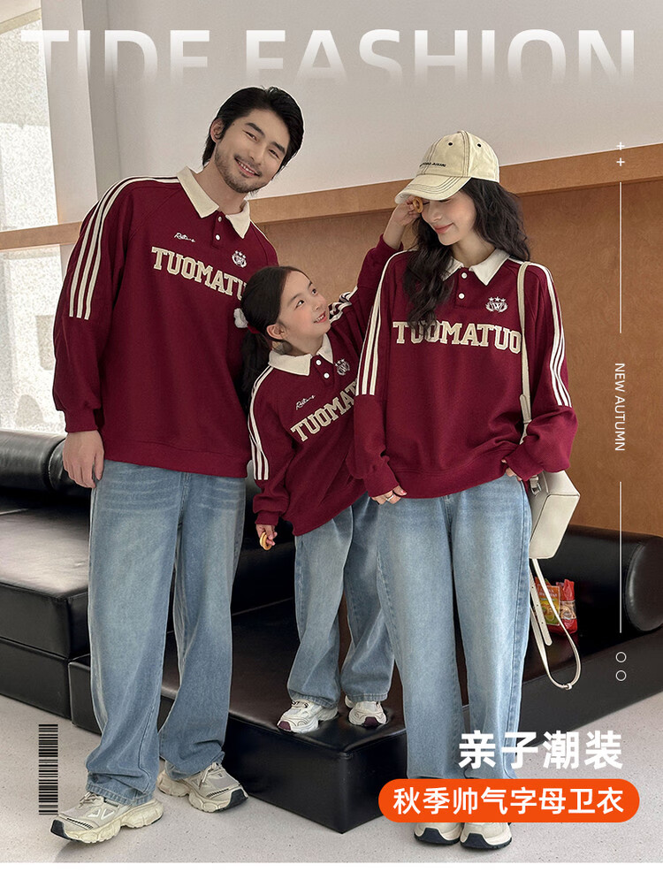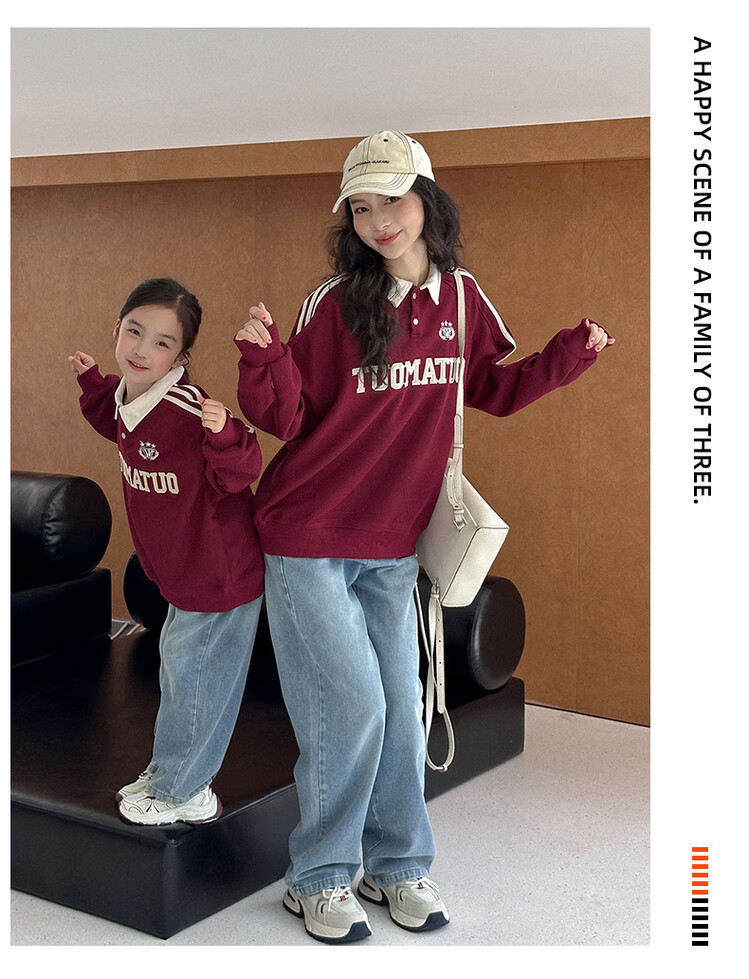 G.duck little yellow duck children's clothing parent-child clothing sweatshirt spring and autumn suit for a family of three or four, mother and daughter clothing for taking family photos Embroidery Academy polo 165 S
