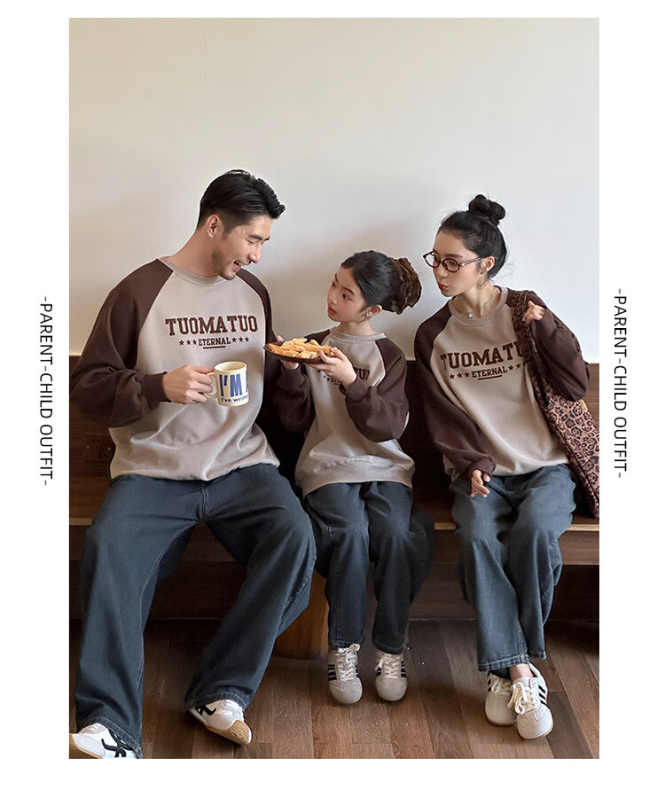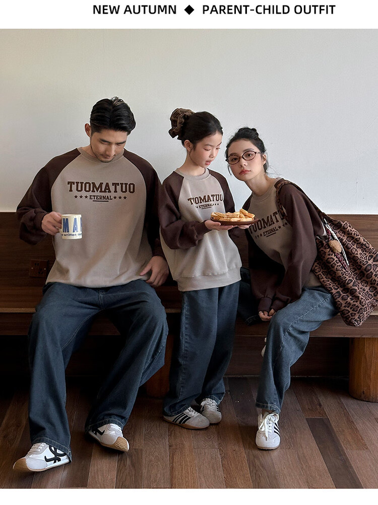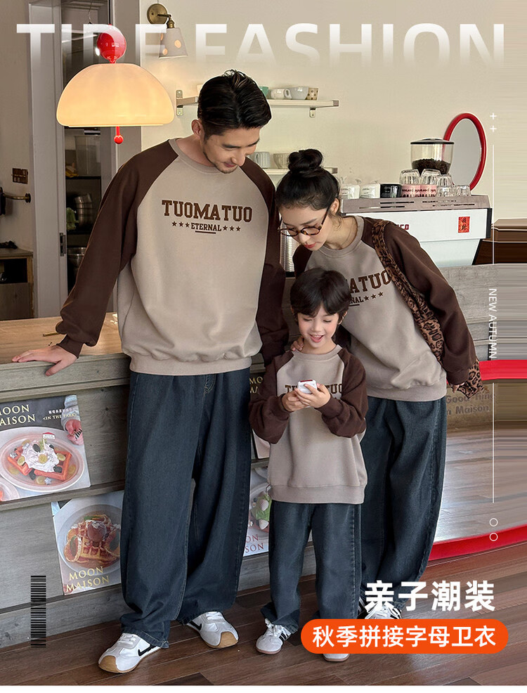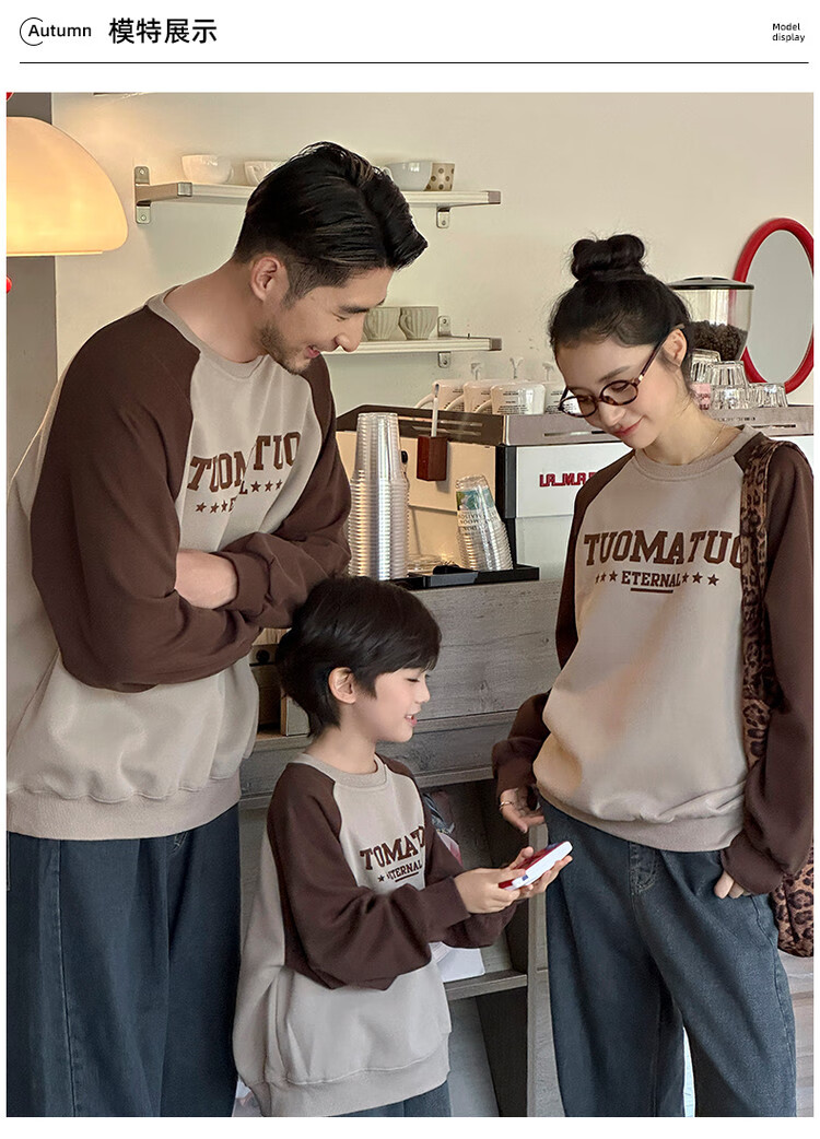 G.duck little yellow duck parent-child autumn clothing set, family wear long-sleeved sweatshirt, family of three, four, mother and daughter, mother and child family wear TUO coffee sleeve sweatshirt 80 sizes 6-12 months 75-85cm
