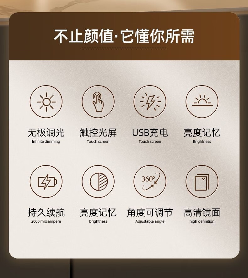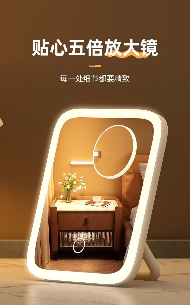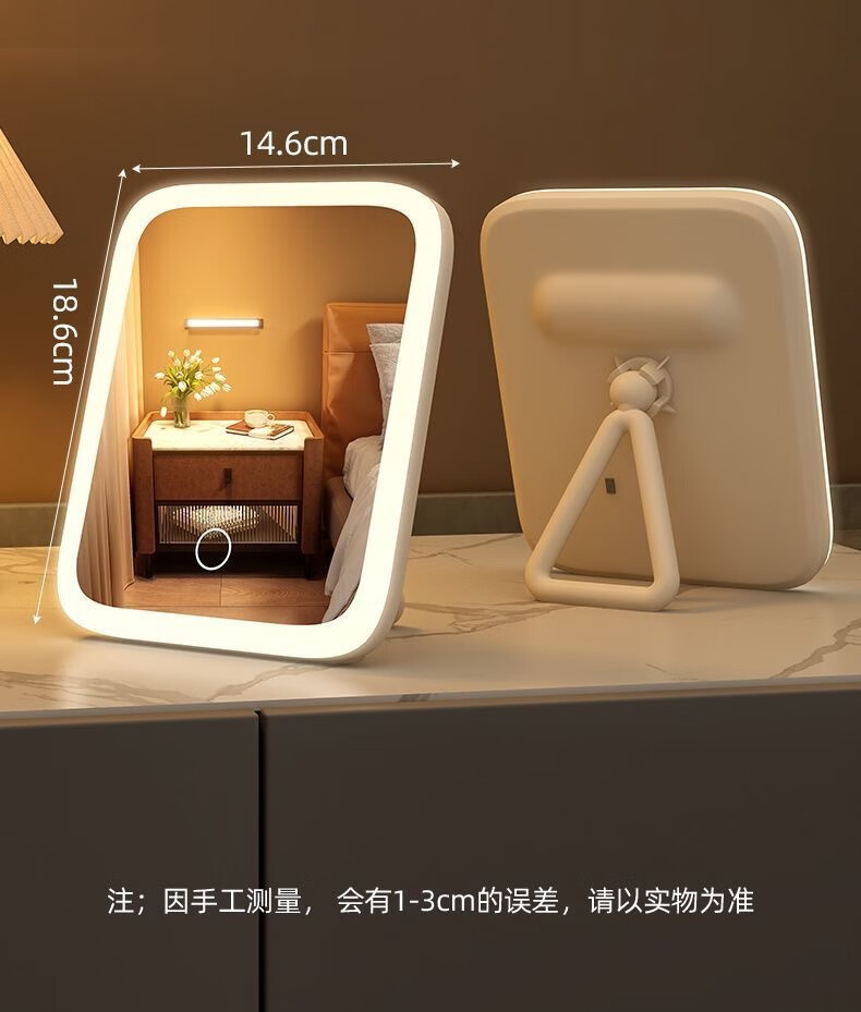 Smart portable flat vanity mirror desktop 360-degree supplementary light flat mirror desktop led vanity mirror with light mirror white three-level color change + long press to adjust brightness
