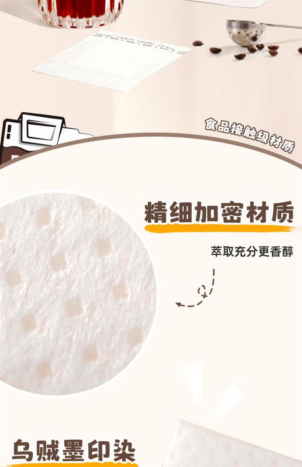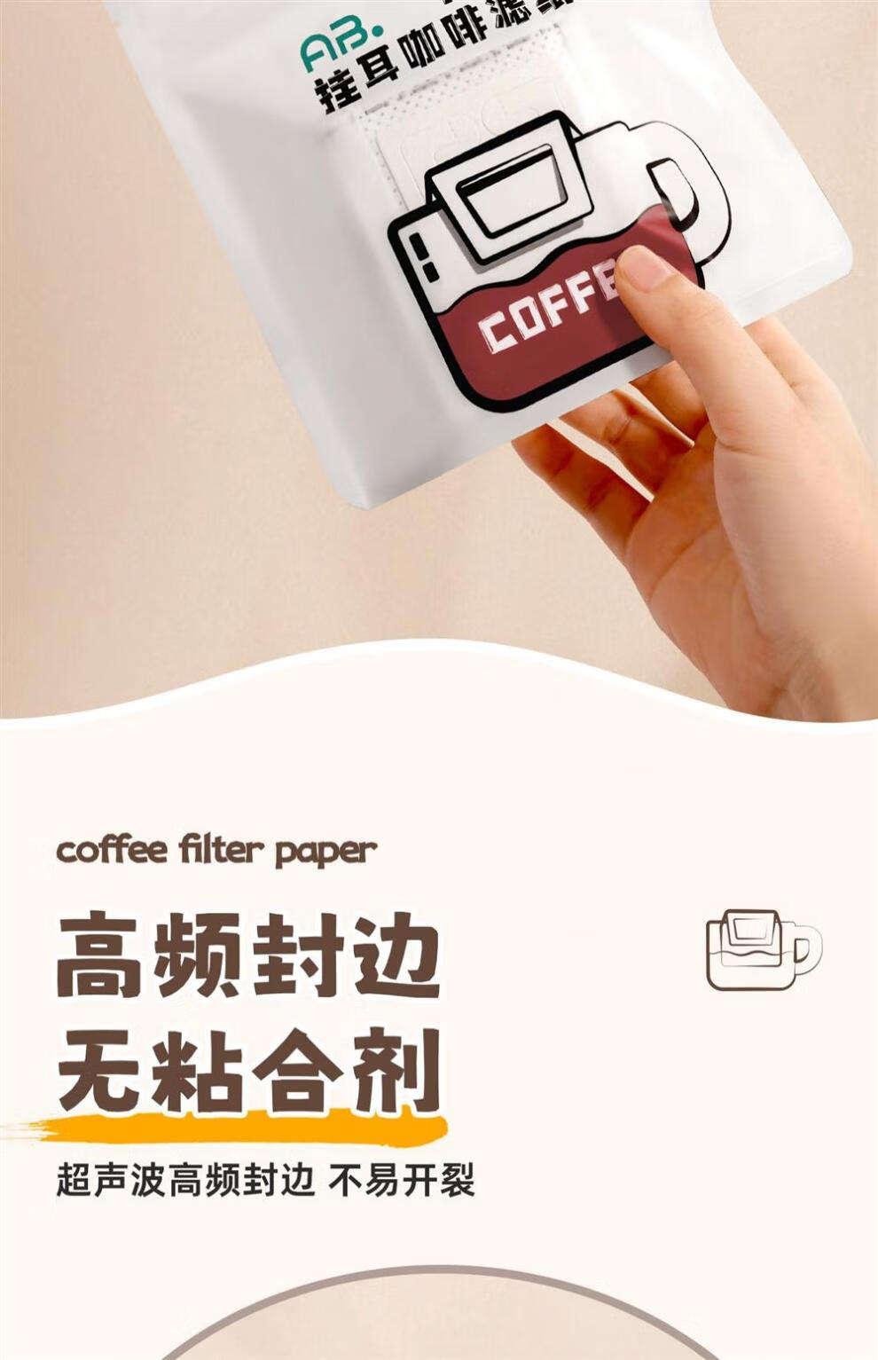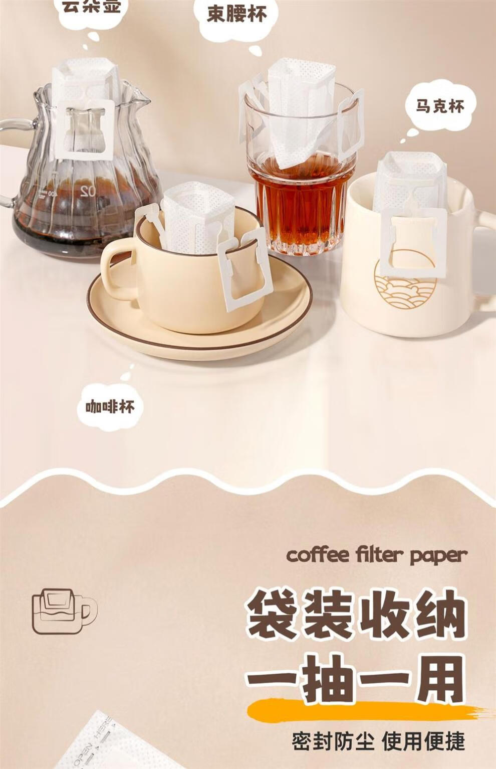 JCZS ear-hanging coffee filter paper hand-brewed coffee powder filter paper coffee filter filter funnel disposable ear-hanging filter bag 1 bag with 52 pieces in total, sealable bag