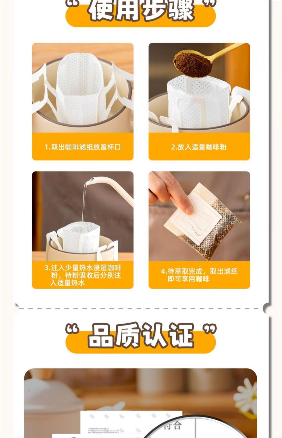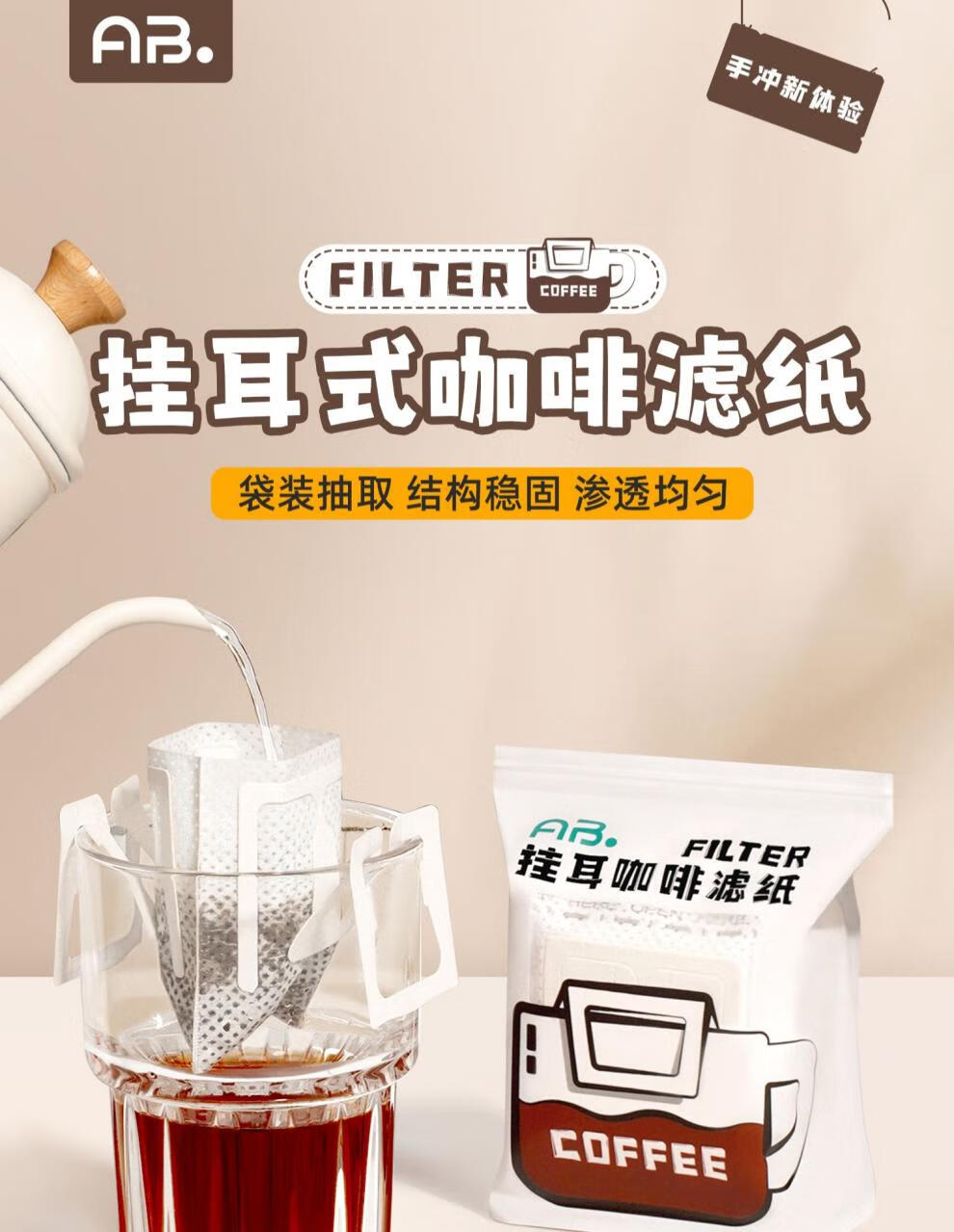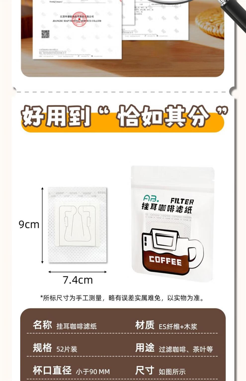 JCZS ear-hanging coffee filter paper hand-brewed coffee powder filter paper coffee filter filter funnel disposable ear-hanging filter bag 1 bag with 52 pieces in total, sealable bag