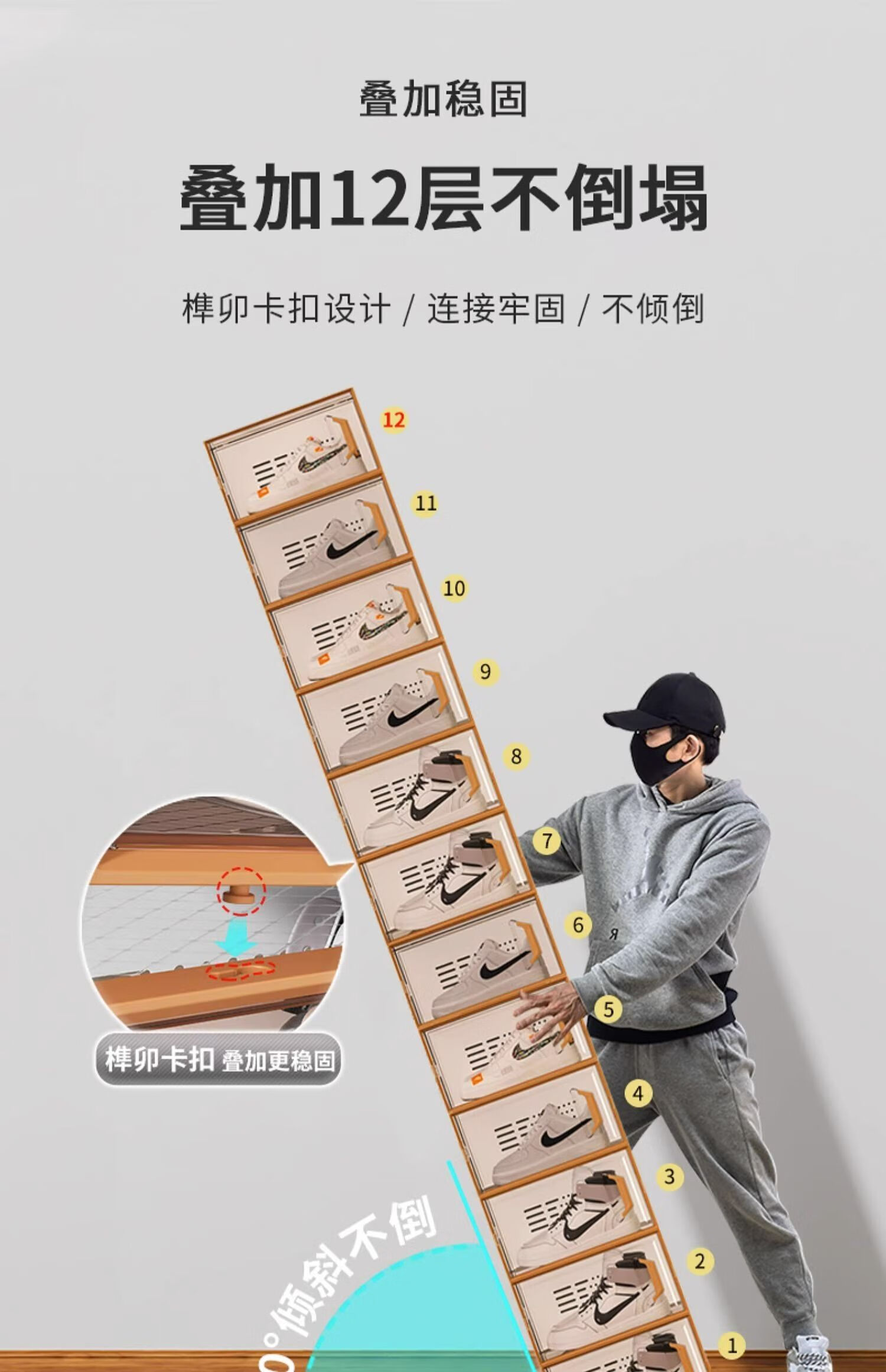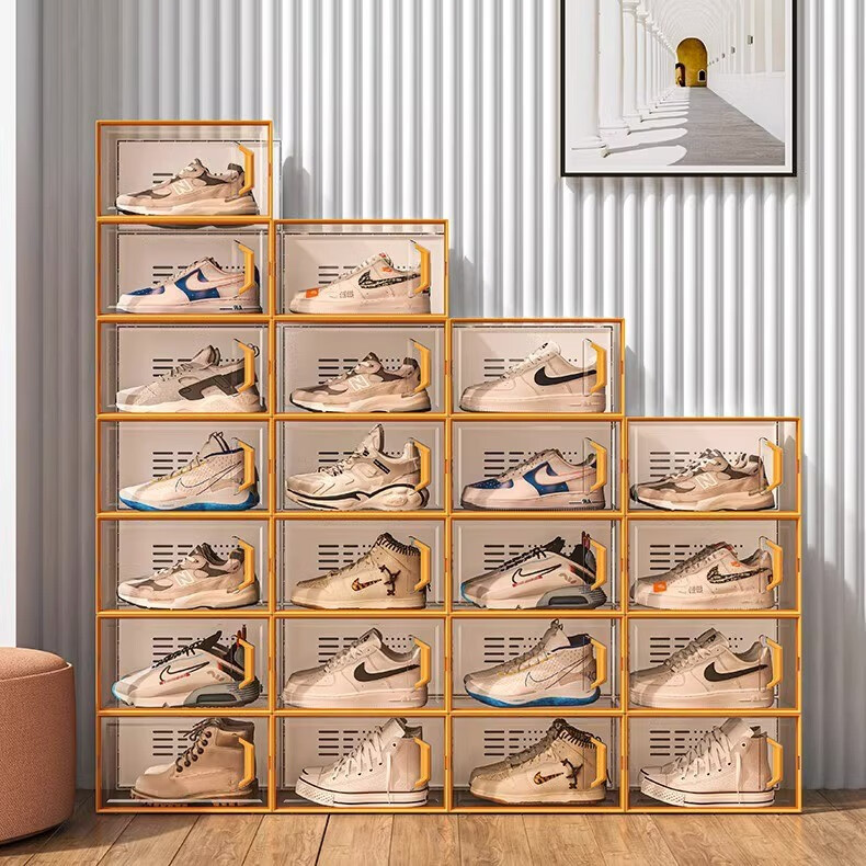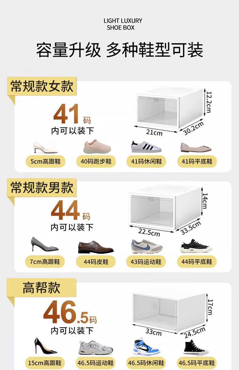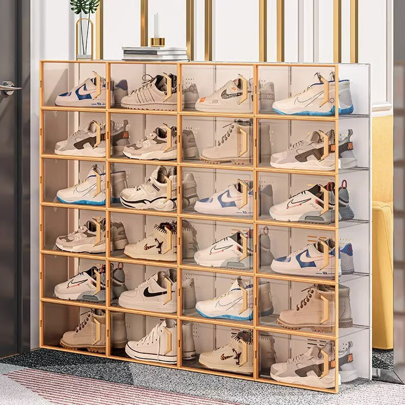 Ling Yuxun shoe box storage box transparent shoe cabinet shoe rack folding shoe storage artifact drawer type space-saving storage box home upgrade high-quality plastic hard back cover stronger load-bearing regular men's style 46.5 0x0x0cm