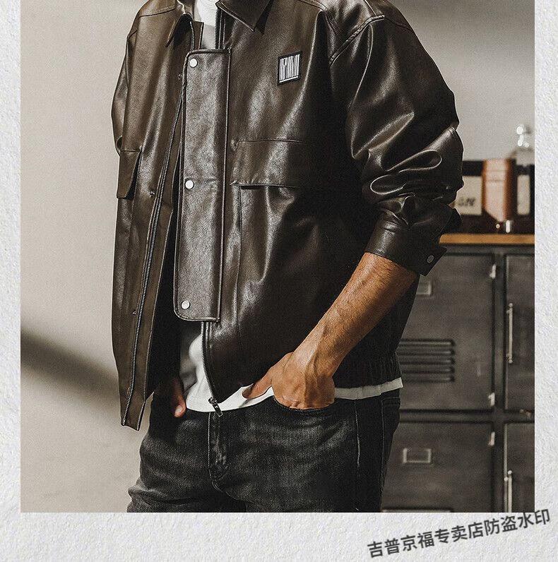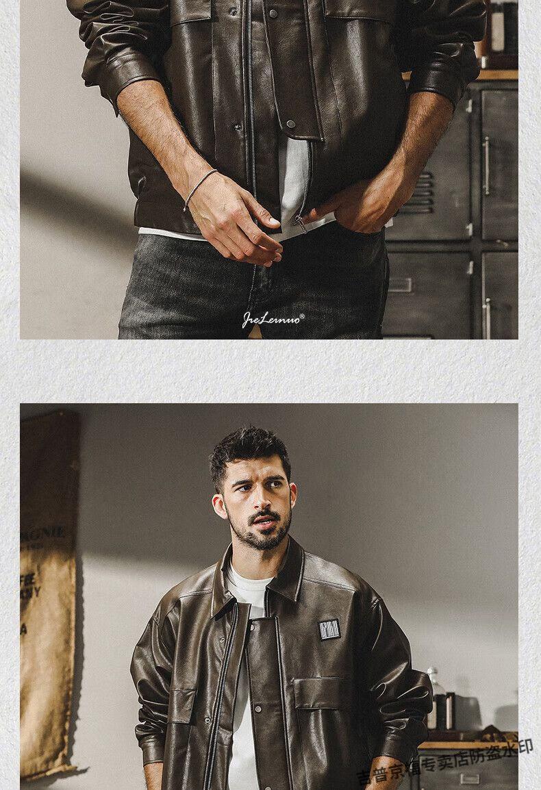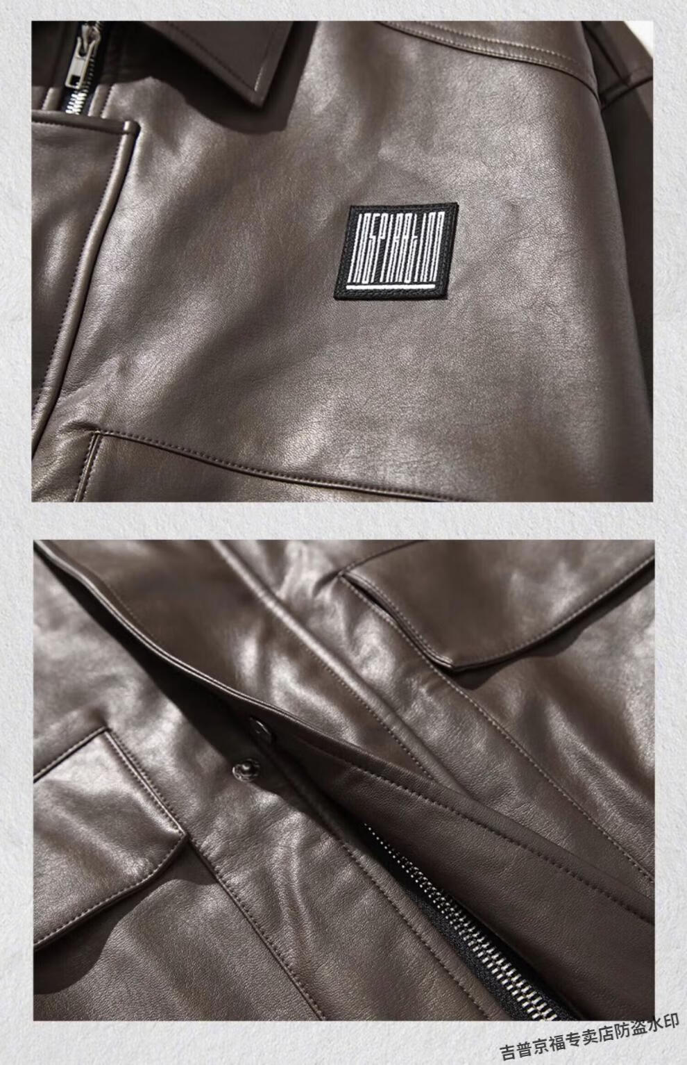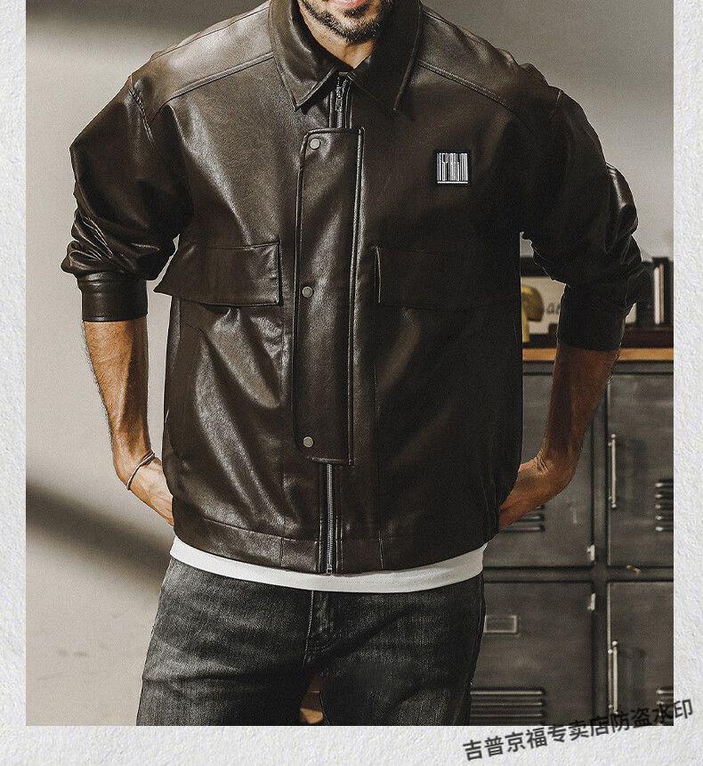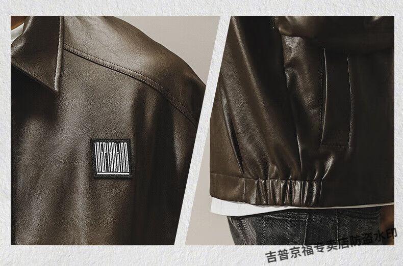 JEEP SPIRIT Jeep high-end jacket men's PU leather jacket men's spring American heavy loose retro casual leather jacket men's P04 brown jacket XL size suitable for 140-160Jin Jin equals 0.5 kg