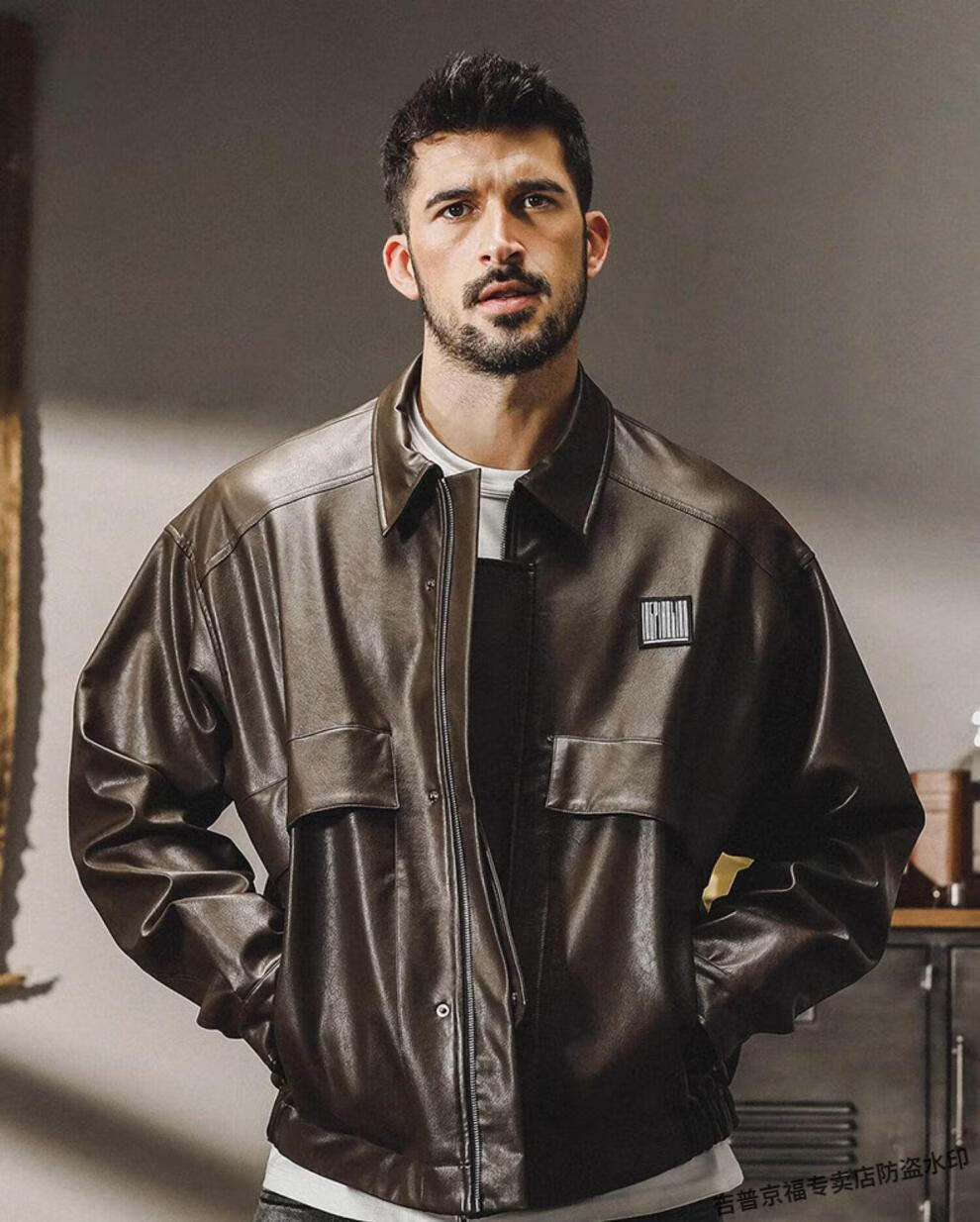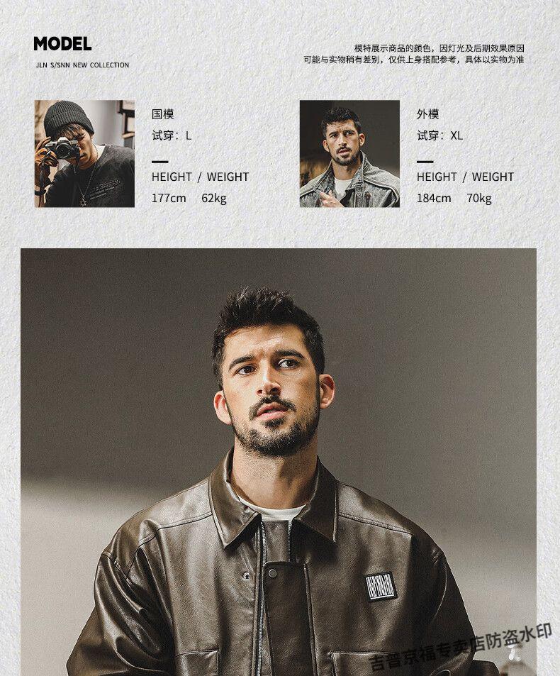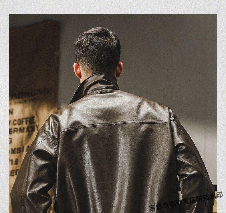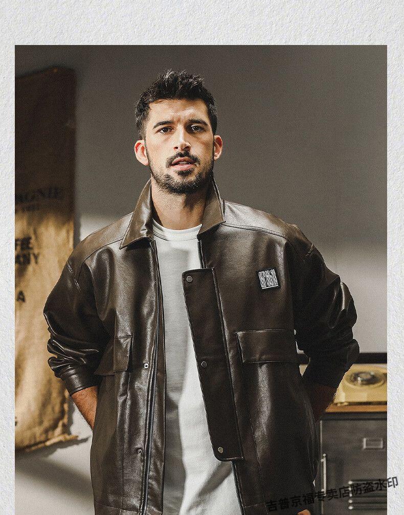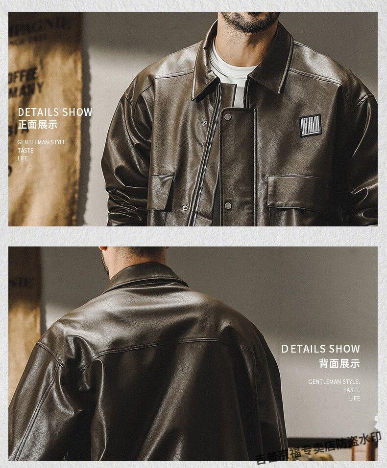 JEEP SPIRIT Jeep high-end jacket men's PU leather jacket men's spring American heavy loose retro casual leather jacket men's P04 brown jacket XL size suitable for 140-160Jin Jin equals 0.5 kg