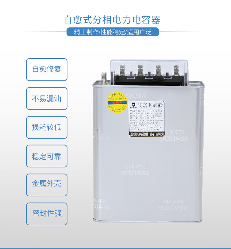 Shanghai Viscon split-phase power capacitor BSMJ0.25-15-3YN30 20-1 self-healing single-phase split compensation BSMJ0.25-40-3YN