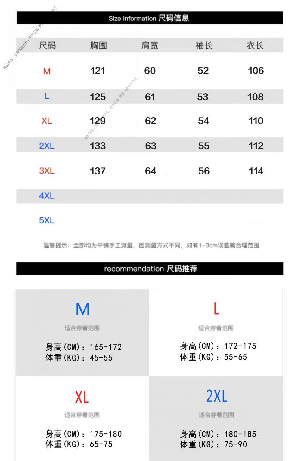 China (cm) 165 / 88-90 170 / 96-98 175 / 108-110 180 / 118-122 185 / 126-130