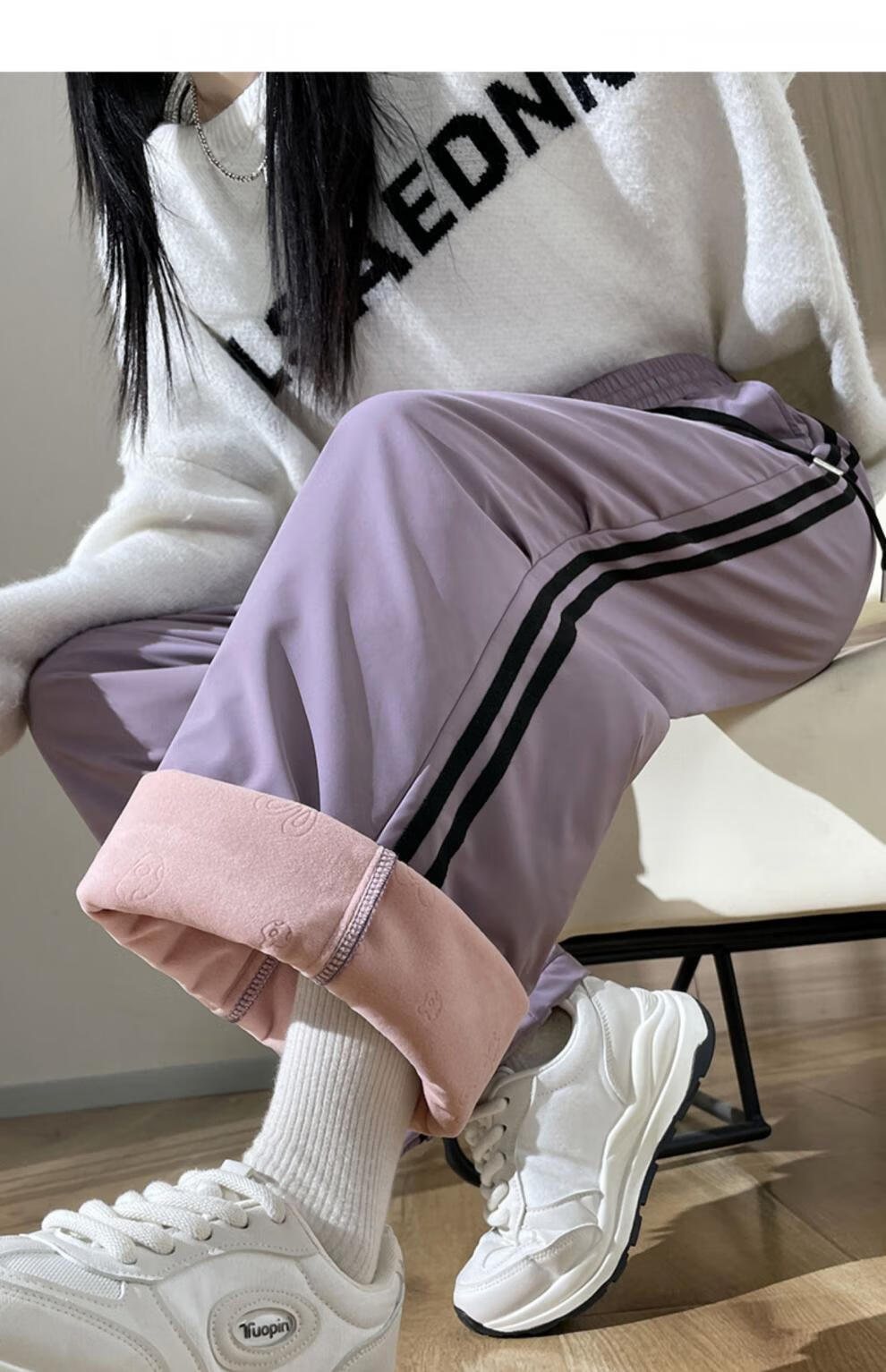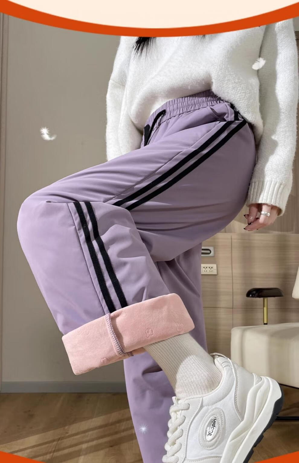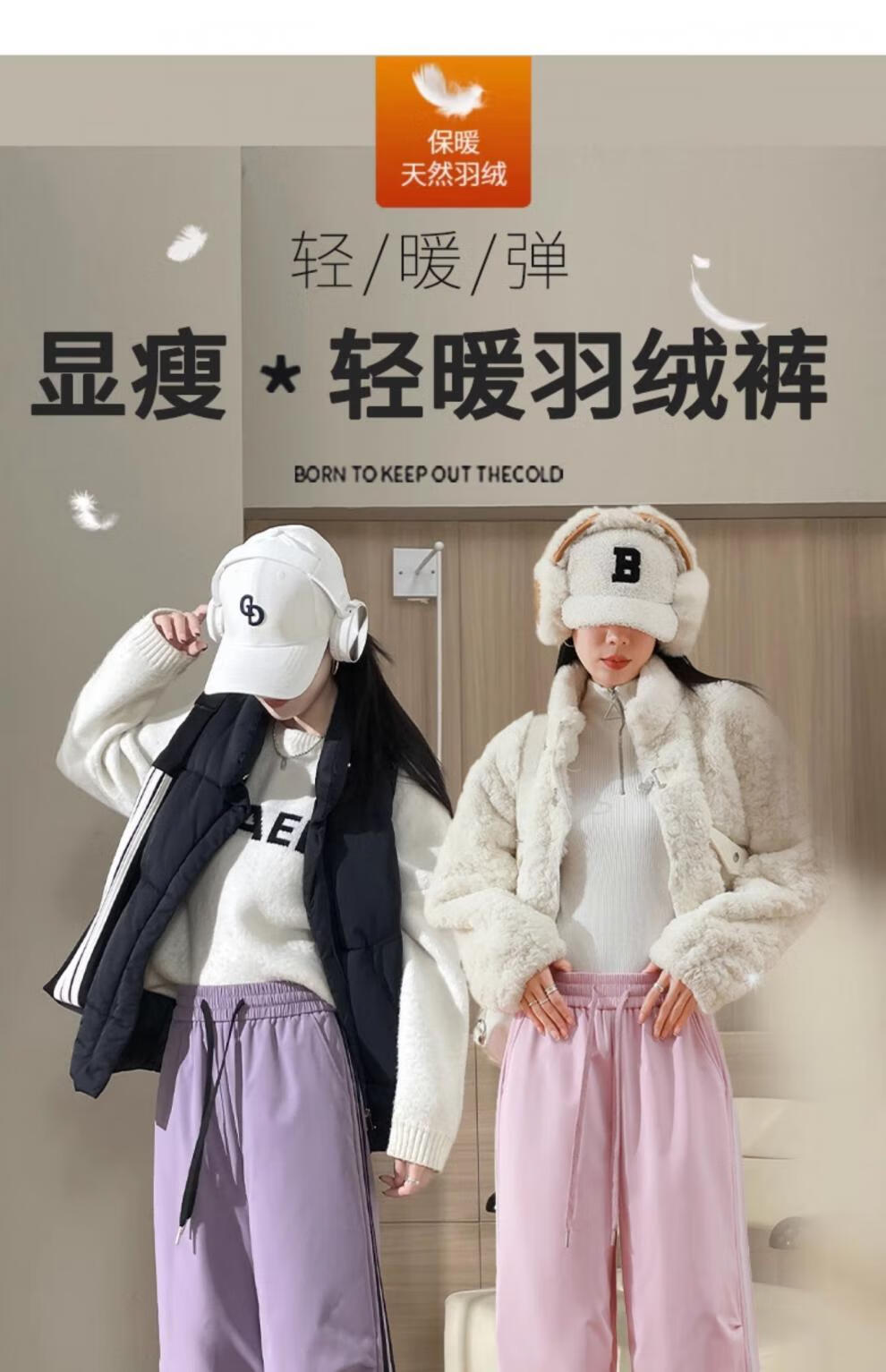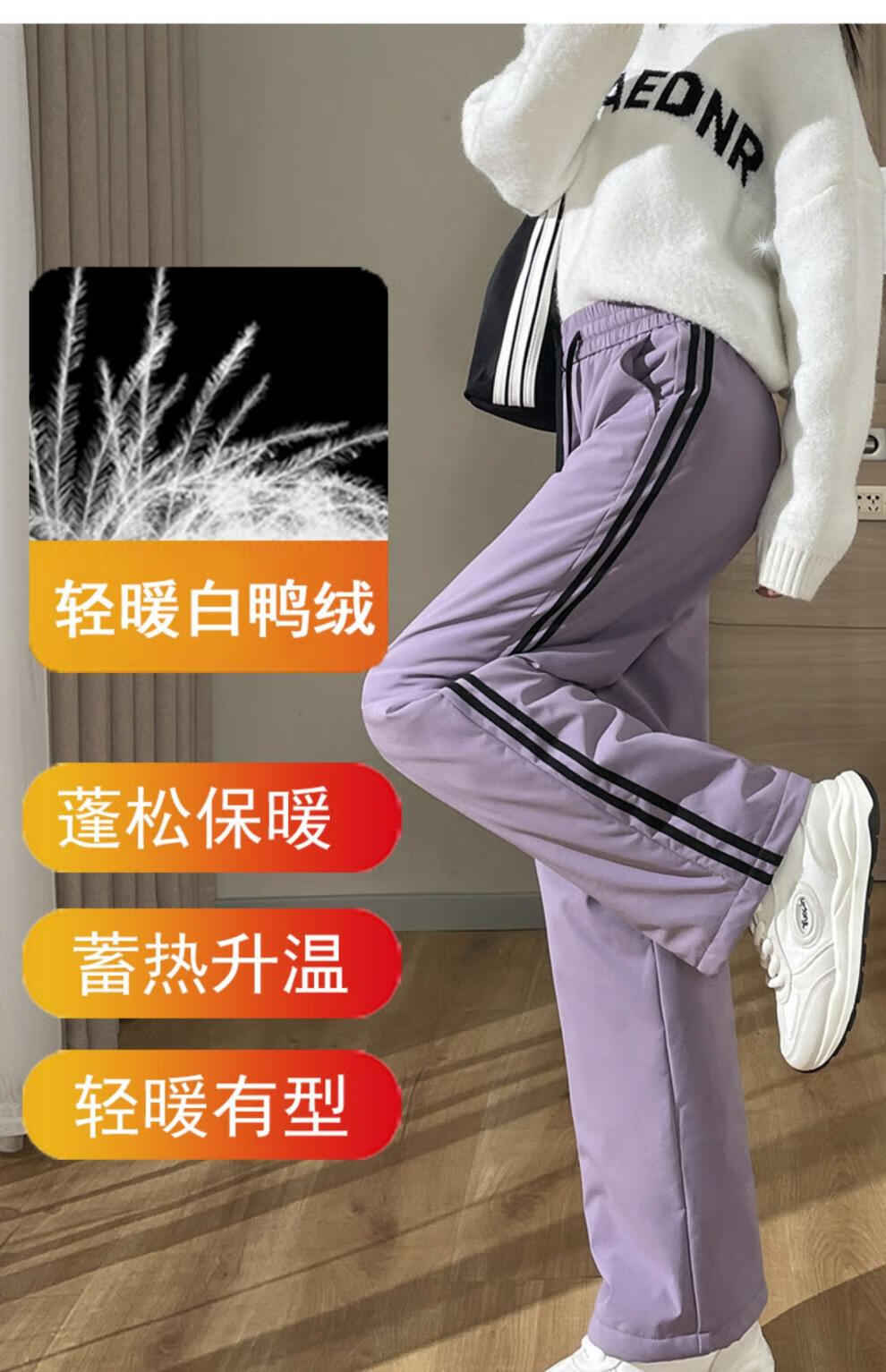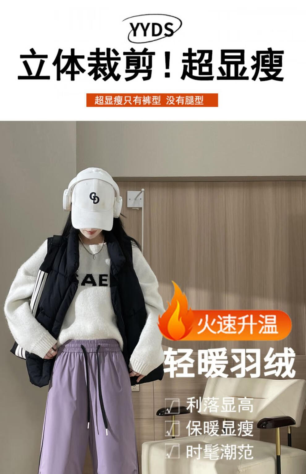 RLAS down pants for women's outer wear in winter 2025 new Northeast minus 40 degrees loose light and thin plus velvet thickened duck down cotton pants purple XL recommended 121-130 Jin Jin equals 0.5 kg