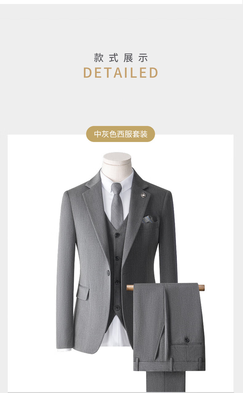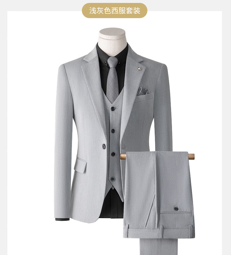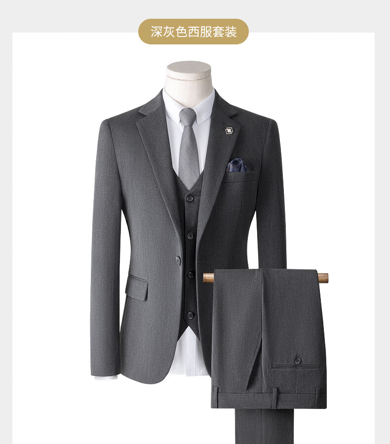 Luo Meng high-end suit men's three-piece Korean style slim business casual suit groom's wedding dress black top + pants + vest free shirt 2XL