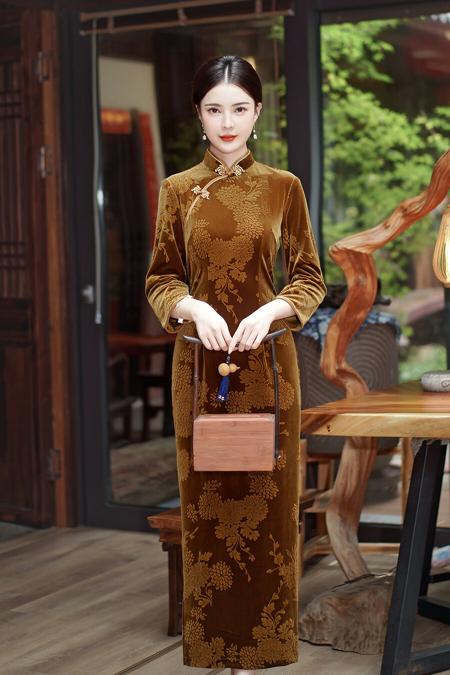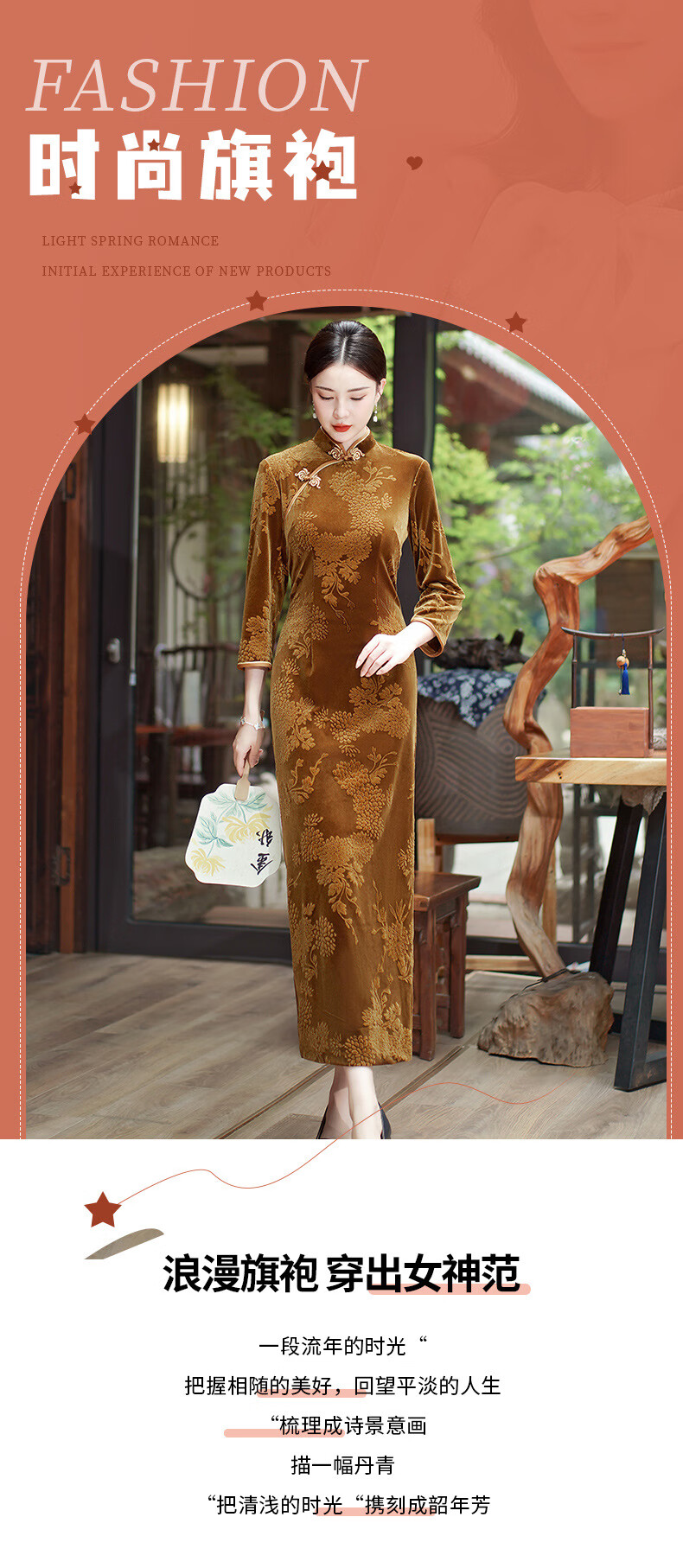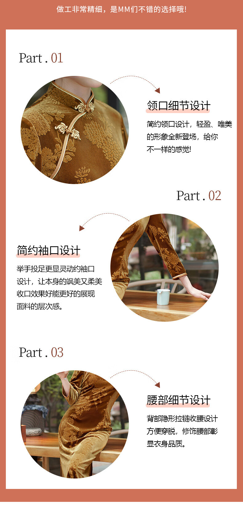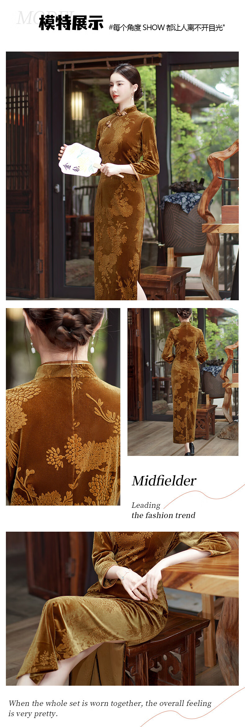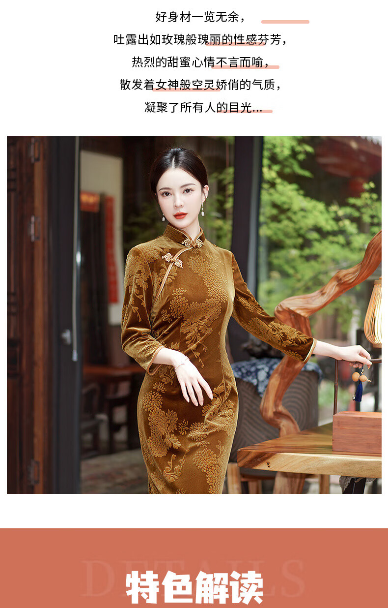 Retro 2025 Autumn and Winter New Velvet Jacquard Cheongsam National Style Slim Slim Long Nine-quarter Sleeve Wedding Banquet Mother T0080-1 Pomegranate Red 2XL Recommended 120-130Jin Jin is equal to 0.5 kg