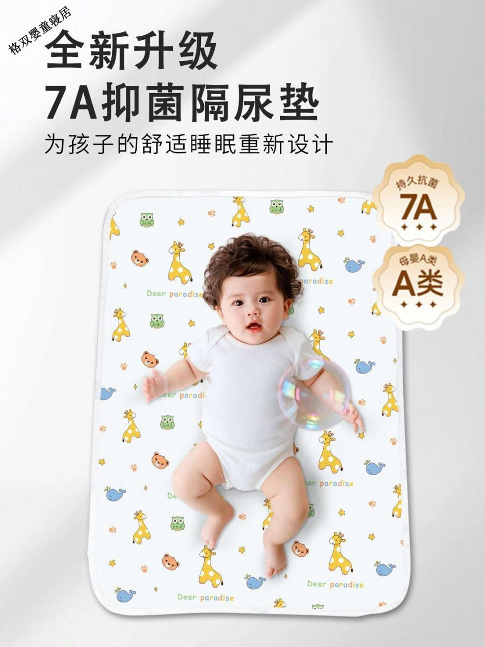 Disney (Disney) Class A pure cotton baby diaper pad waterproof and washable leak-proof diaper pad breathable newborn baby diaper pad 7A antibacterial and anti-mite-pure cotton double layer urine barrier Proboscis Elephant Pro Newly upgraded pro 70*100CM One pad with multiple uses